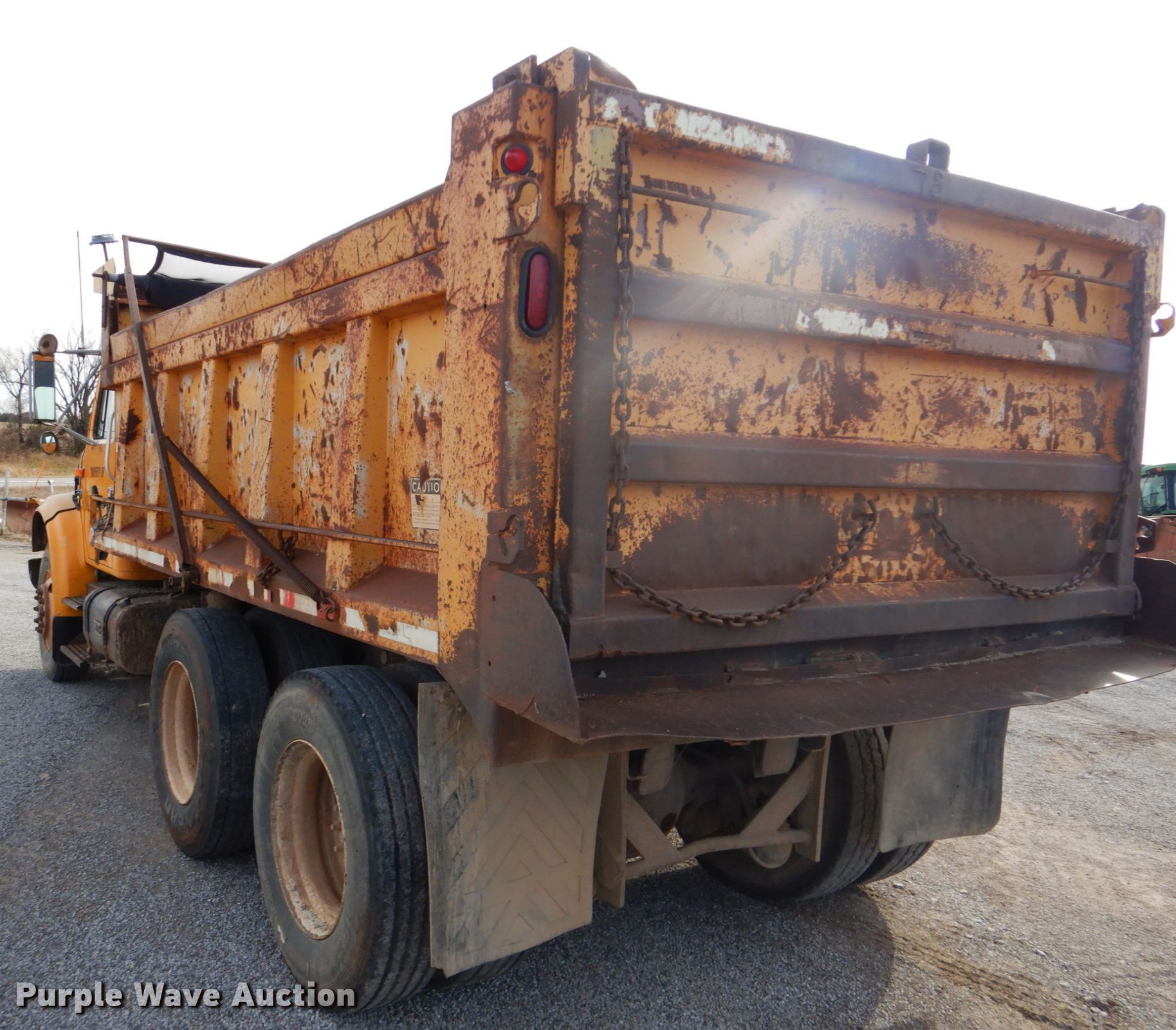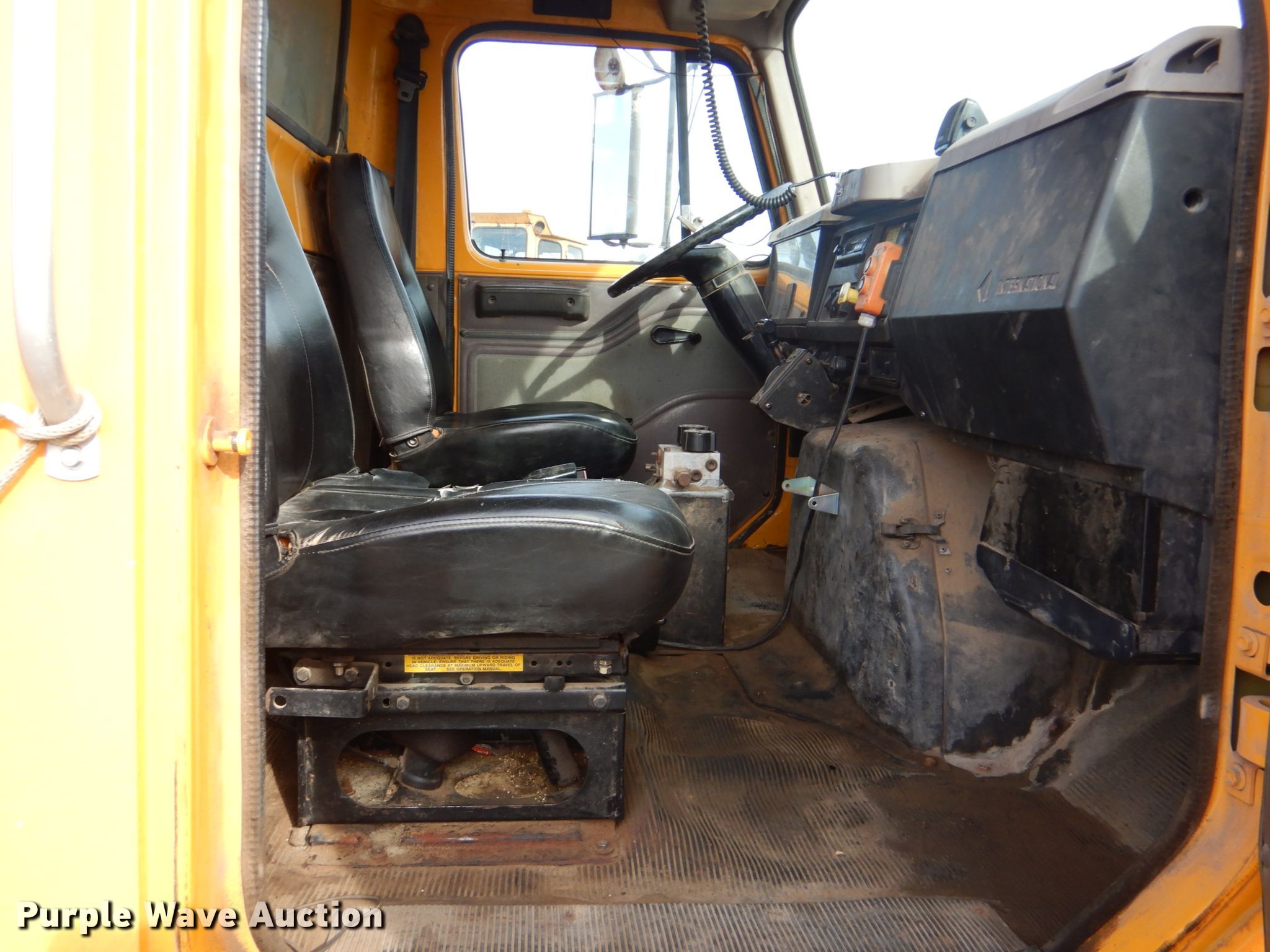 Purple Wave is selling a used Construction Dump Truck in Oklahoma. This item is a 1997 International 4900 dump truck with the following: 265,085 miles on odometer, International DT466 7.6L L6 diesel engine, Automatic transmission, Tandem axle, AC and heat, PTO, 14'L x 84"W steel dump bed, 44" side height, 15 cu. yd. capacity, Roll tarp, Single ram hoist, Manual end gate, Spring suspension, Air brakes, 170" wheelbase, Hercules 11R22.5 tires, GVWR 52,000 lbs, FAWR 12,000 lbs, RAWR 20,000 lbs, CB not included