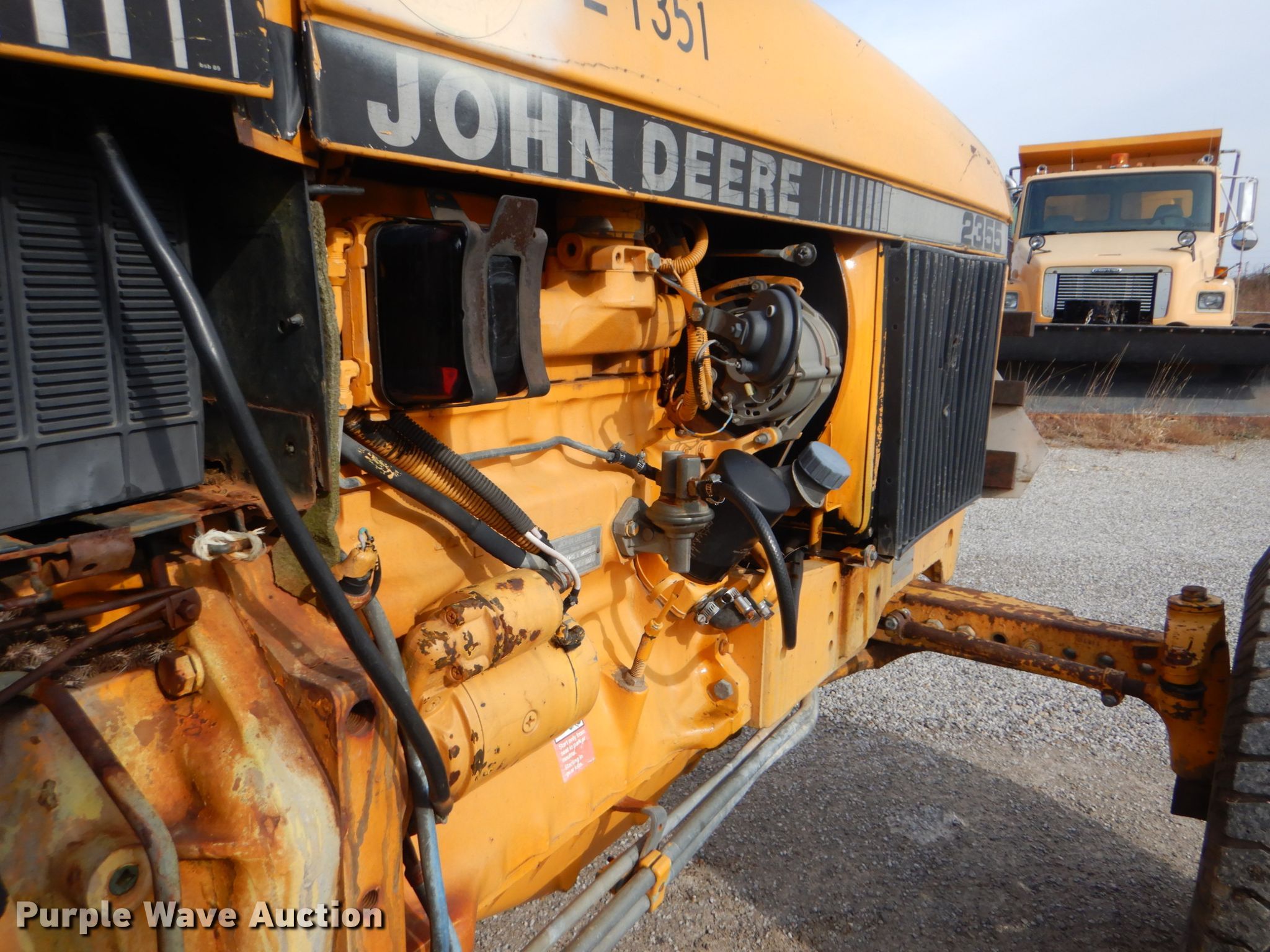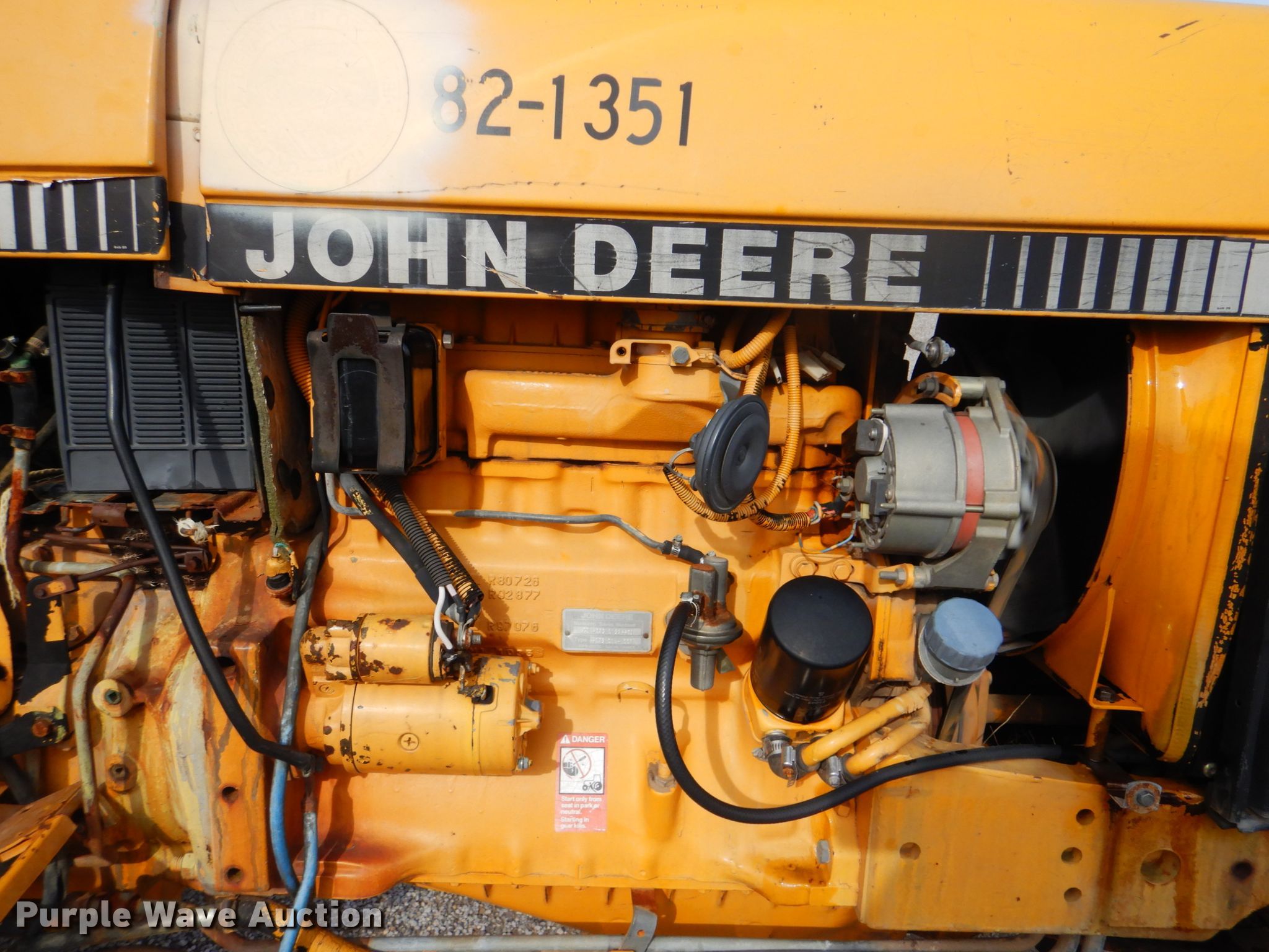 Purple Wave is selling a used Tractor in Oklahoma. This item is a John Deere 2355 tractor with the following: 3,757 hours on meter, John Deere four cylinder diesel engine, Manual transmission, 8F-4R gears, 540 PTO, (3) rear hydraulic remote sets, 89" wheelbase, 7.50-16 front tires, 16.9-24 rear tires, Serial CD4239D924461