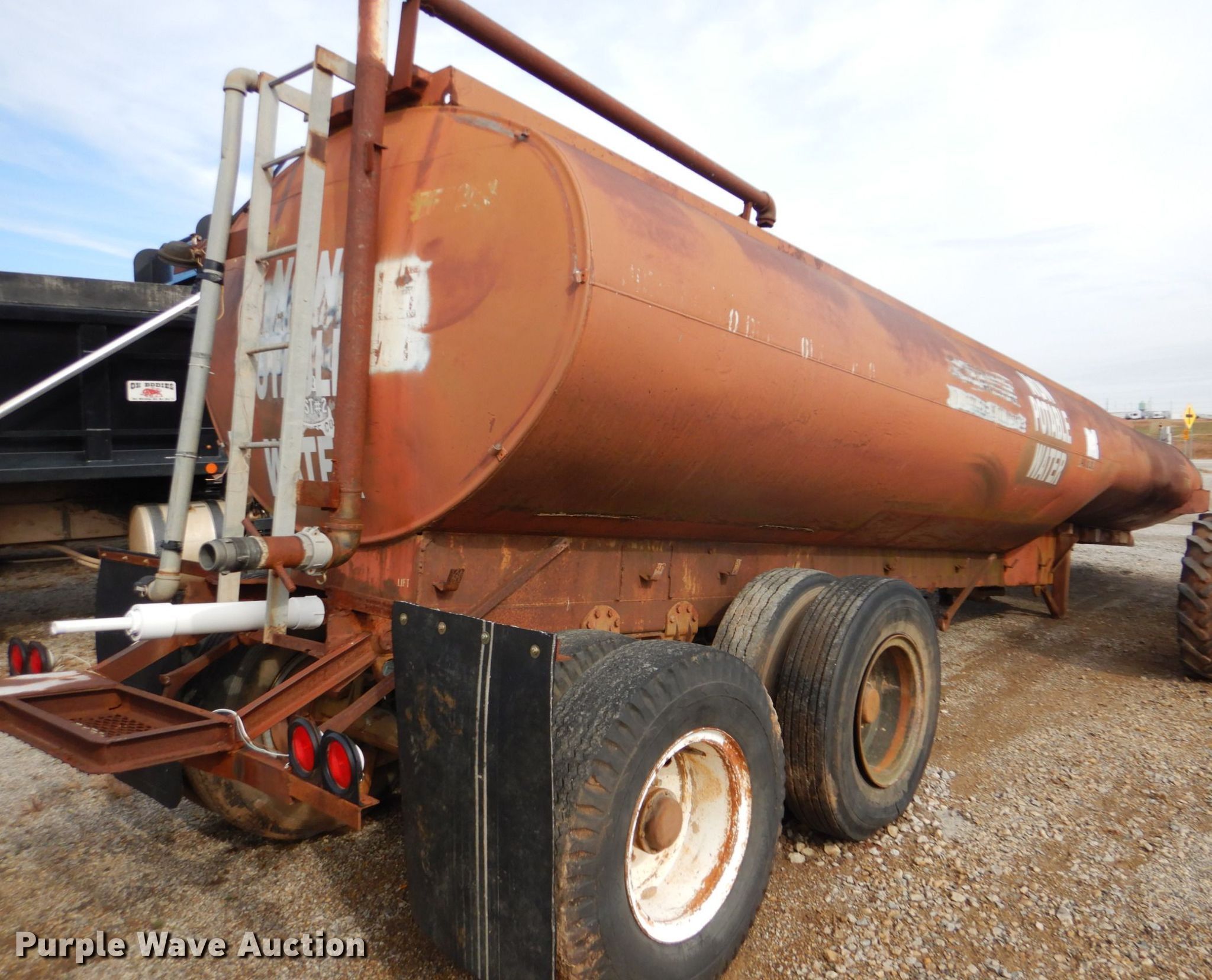 Purple Wave is selling a used Tank Trailer in Oklahoma. This item is a Tank trailer with the following: 32'L overall, 30'L x 8'W tank, 3,600 gallon steel tank, 3" outlet valves, Dual leg landing gear, Spring suspension, Electric brakes, Tandem axle, 10.00R20 tires, Landing gear issues, Unknown operating condition
