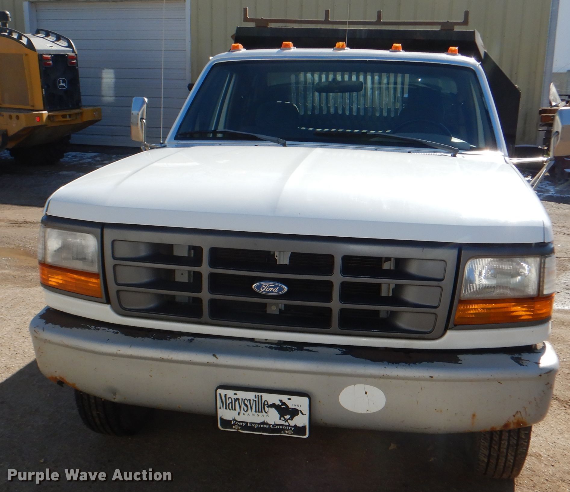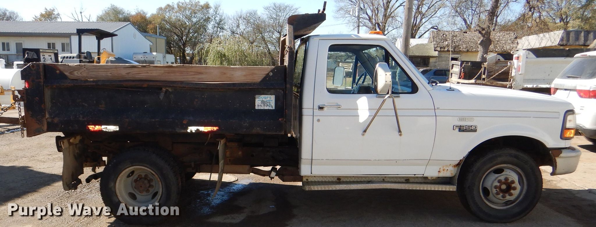 Purple Wave is selling a used 3/4 or 1 Ton Pickup or Van in Kansas. This item is a 1997 Ford F350 XL dump bed pickup truck with the following: 71,236 miles on odometer, 5.8L V8 OHV 16V gas engine, Five speed manual transmission, AC and heat, 8'L x 88"W dump bed, 14" side height, 6" side board height, Manual end gate, 215/85R16 tires