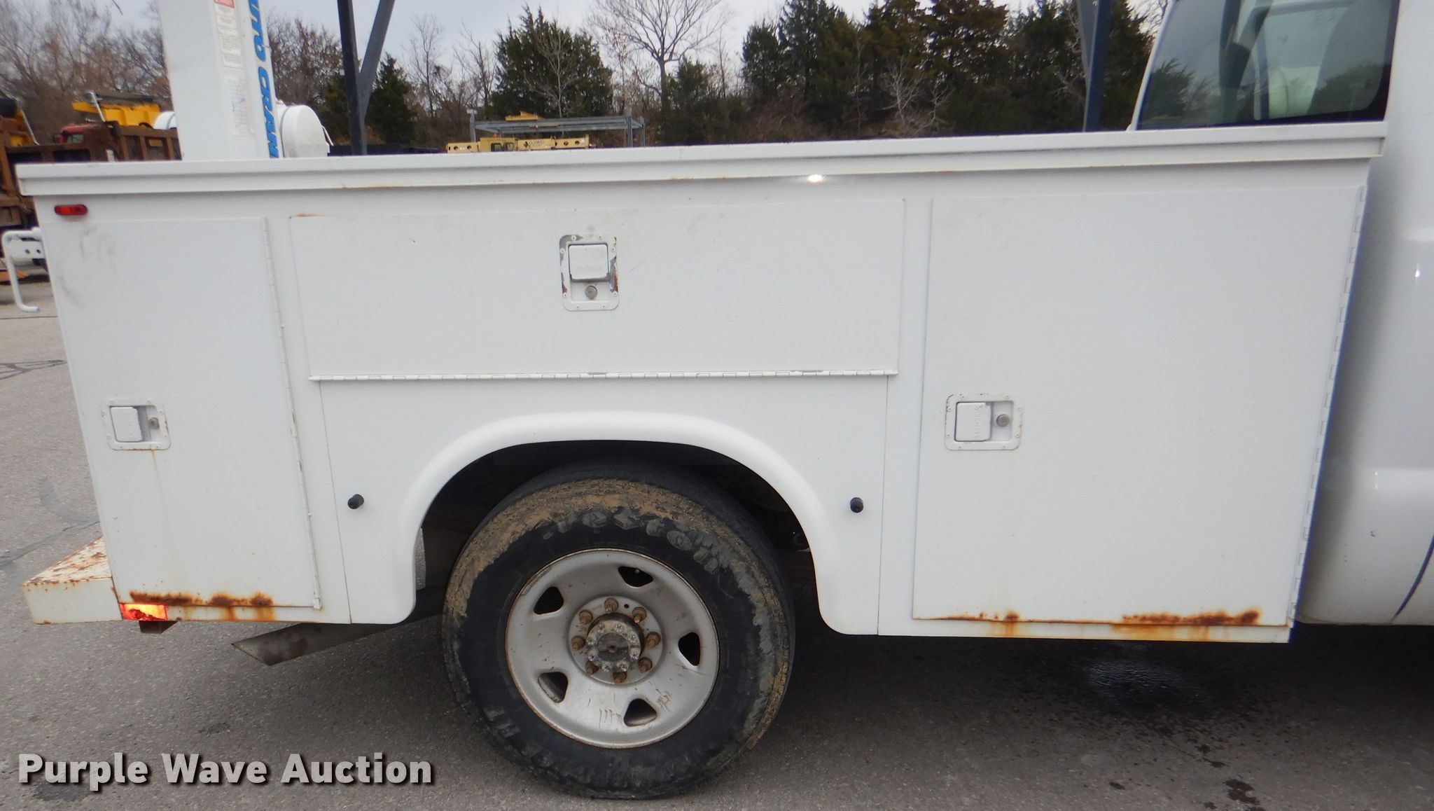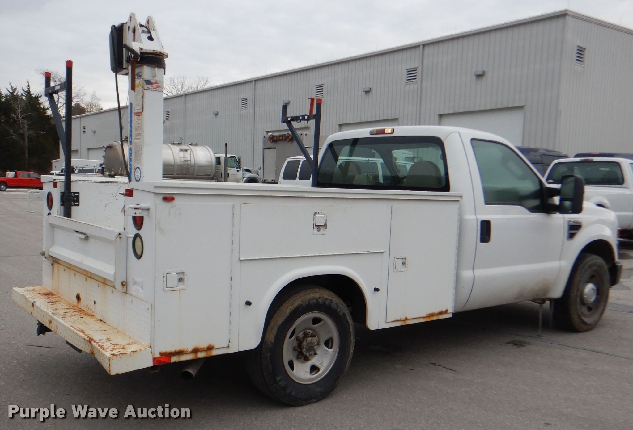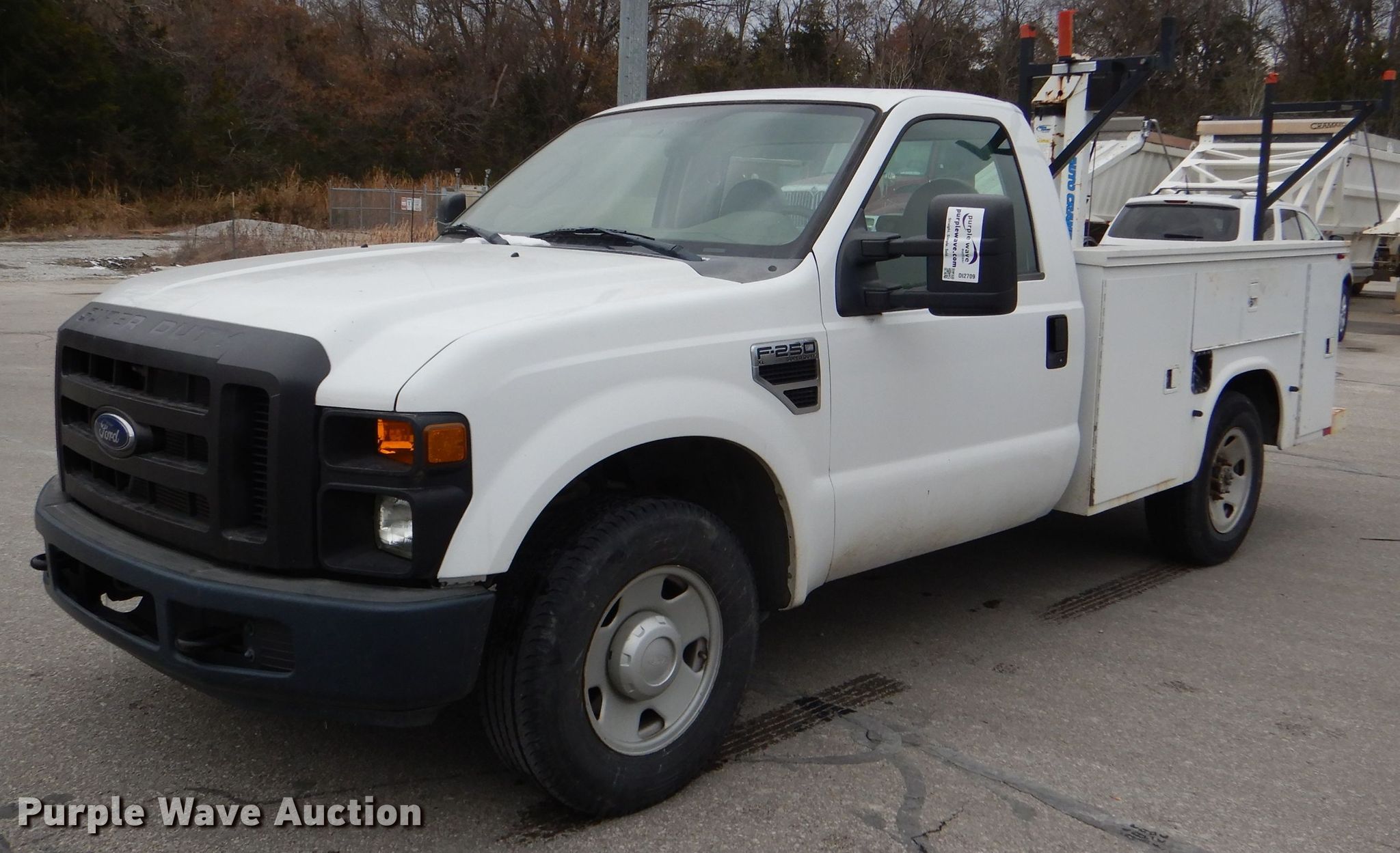 Purple Wave is selling a used 3/4 or 1 Ton Pickup or Van in Kansas. This item is a 2008 Ford F250 Super Duty XL utility bed pickup truck with the following: 26,371 miles on odometer, 5.4L V8 SOHC 16V gas engine, Automatic transmission, AC and heat, Knapheide 696FJC utility bed, 98"L x 80"W, Auto Crane crane, 7' horizontal reach, 10' vertical reach, 1,410 lbs capacity, 245/75R17 tires, Unit# JCW2040
