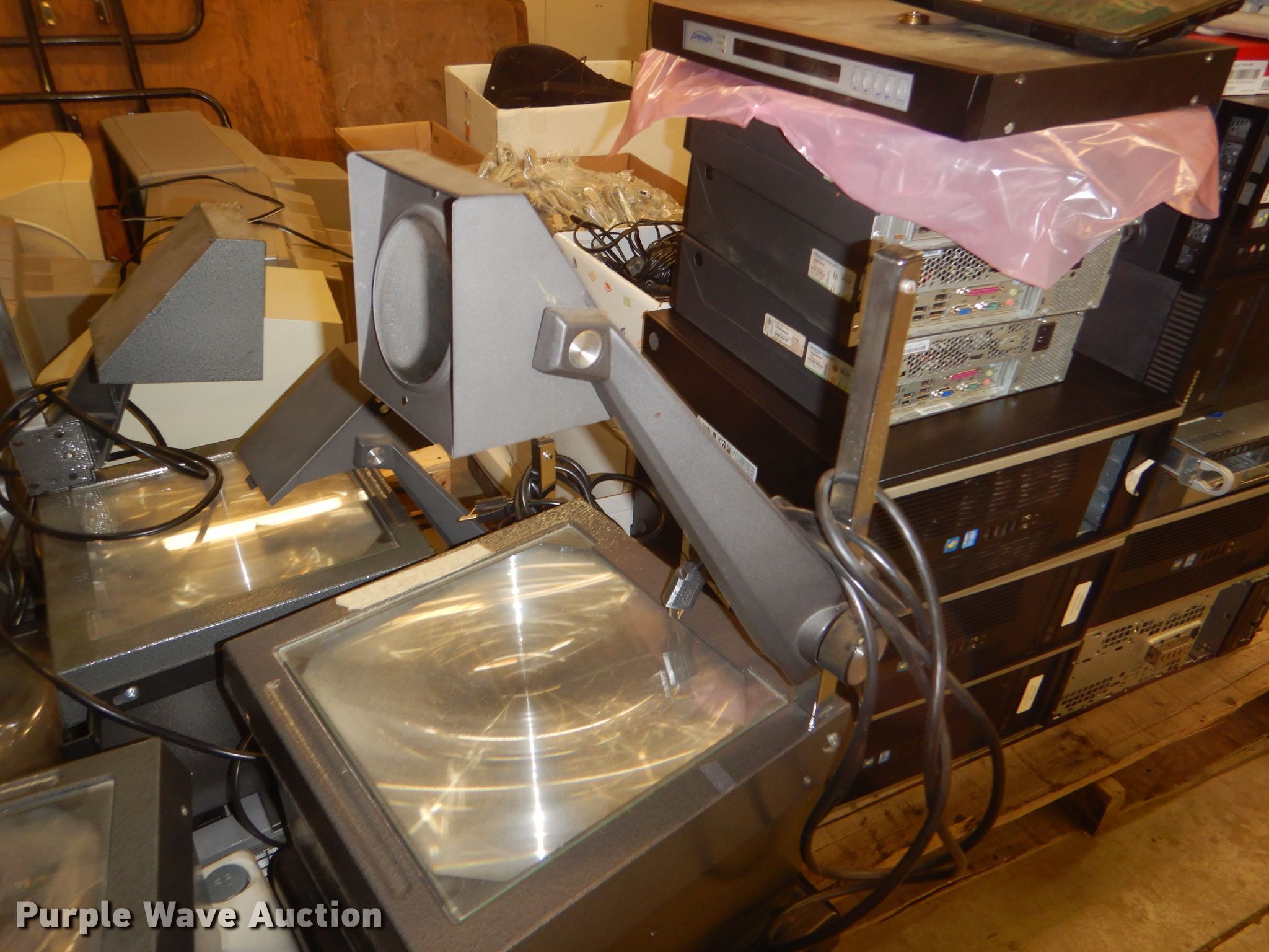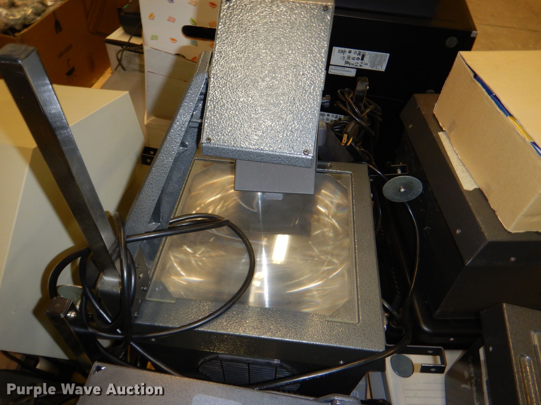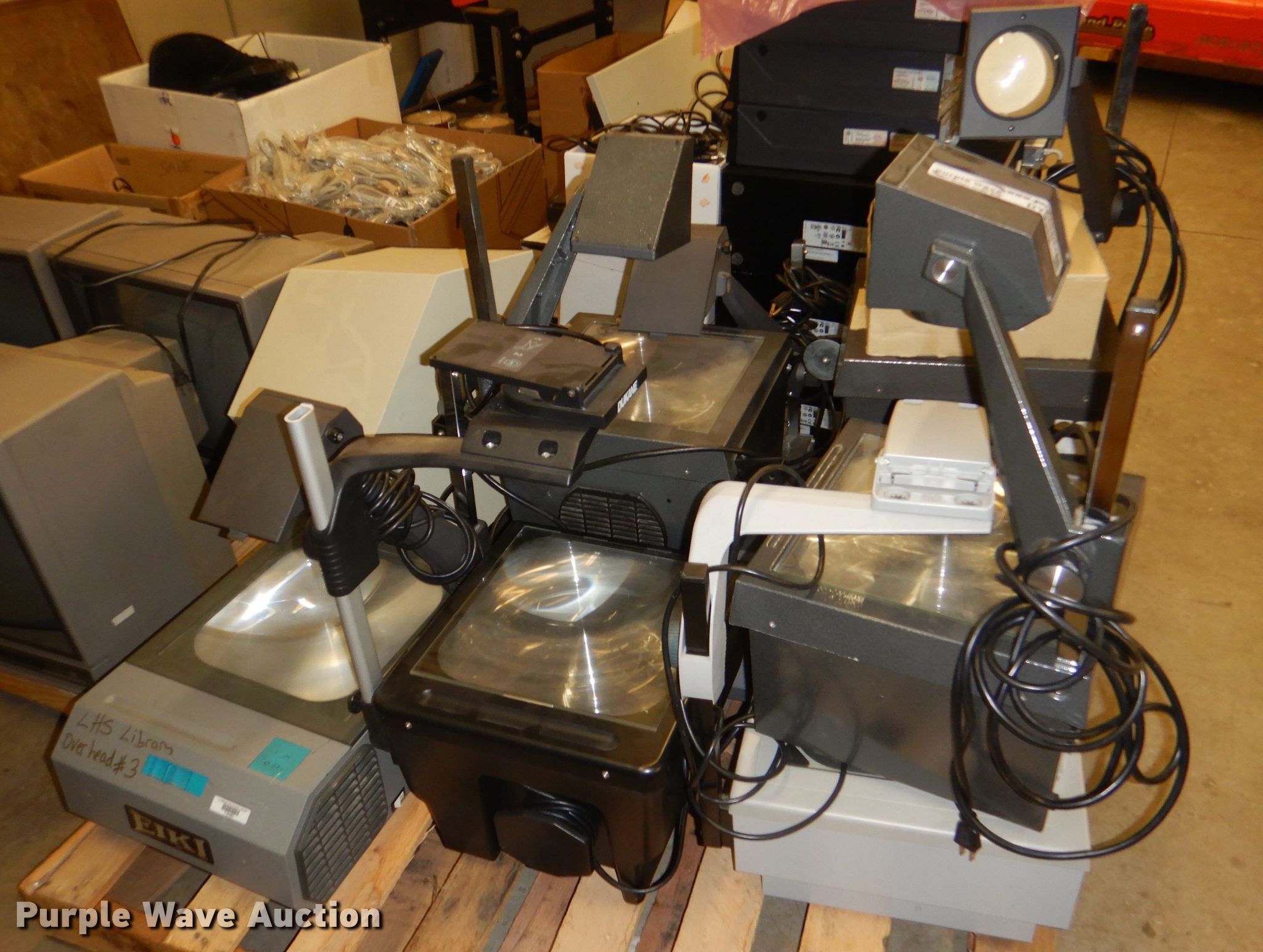 Purple Wave is selling a used Electronics in Kansas. This item is a Electronics with the following: Microphise reader, (8) overhead projectors, (24) bulbs