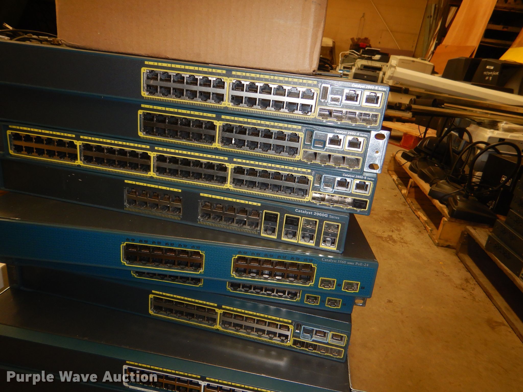 Purple Wave is selling a used Electronics in Kansas. This item is a (10) Cisco switches with the following: 24-port, 48-port, (7) router hubs