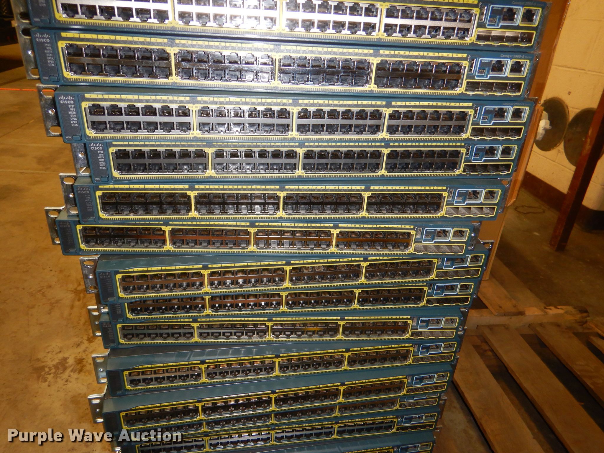 Purple Wave is selling a used Electronics in Kansas. This item is a (19) Cisco WSC-2960S-48TS 48-port switches with the following: Stack modules, Cables