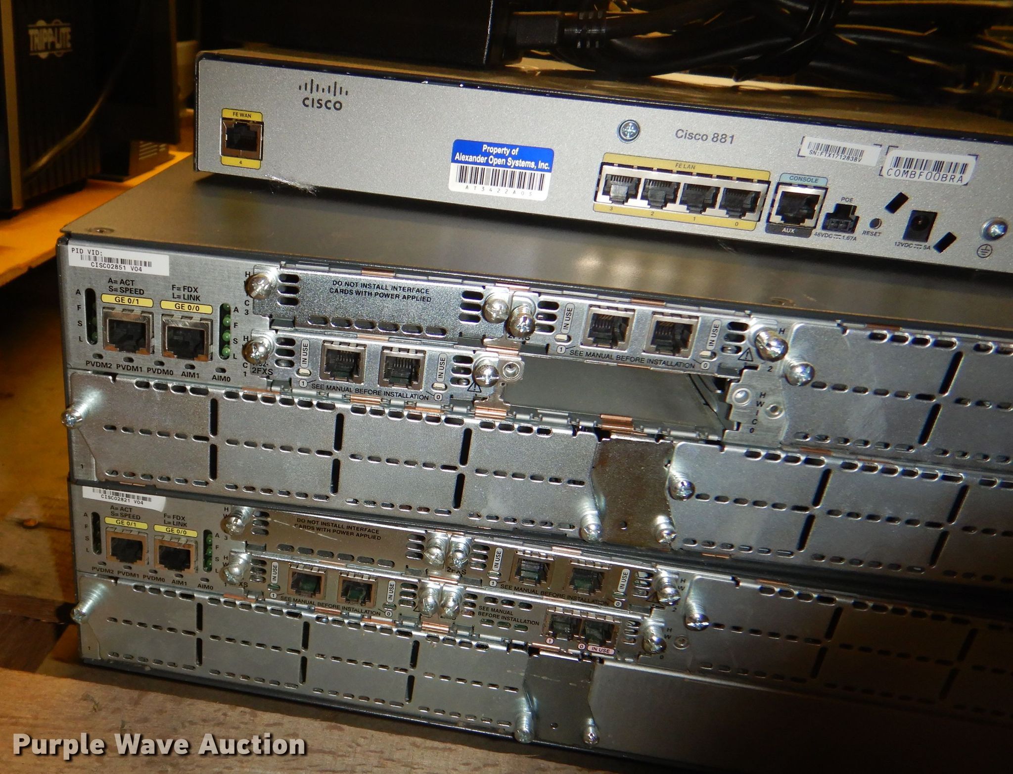 Purple Wave is selling a used Electronics in Kansas. This item is a (3) Cisco routers with the following: (3) Cisco routers. Louisburg, KS 66053