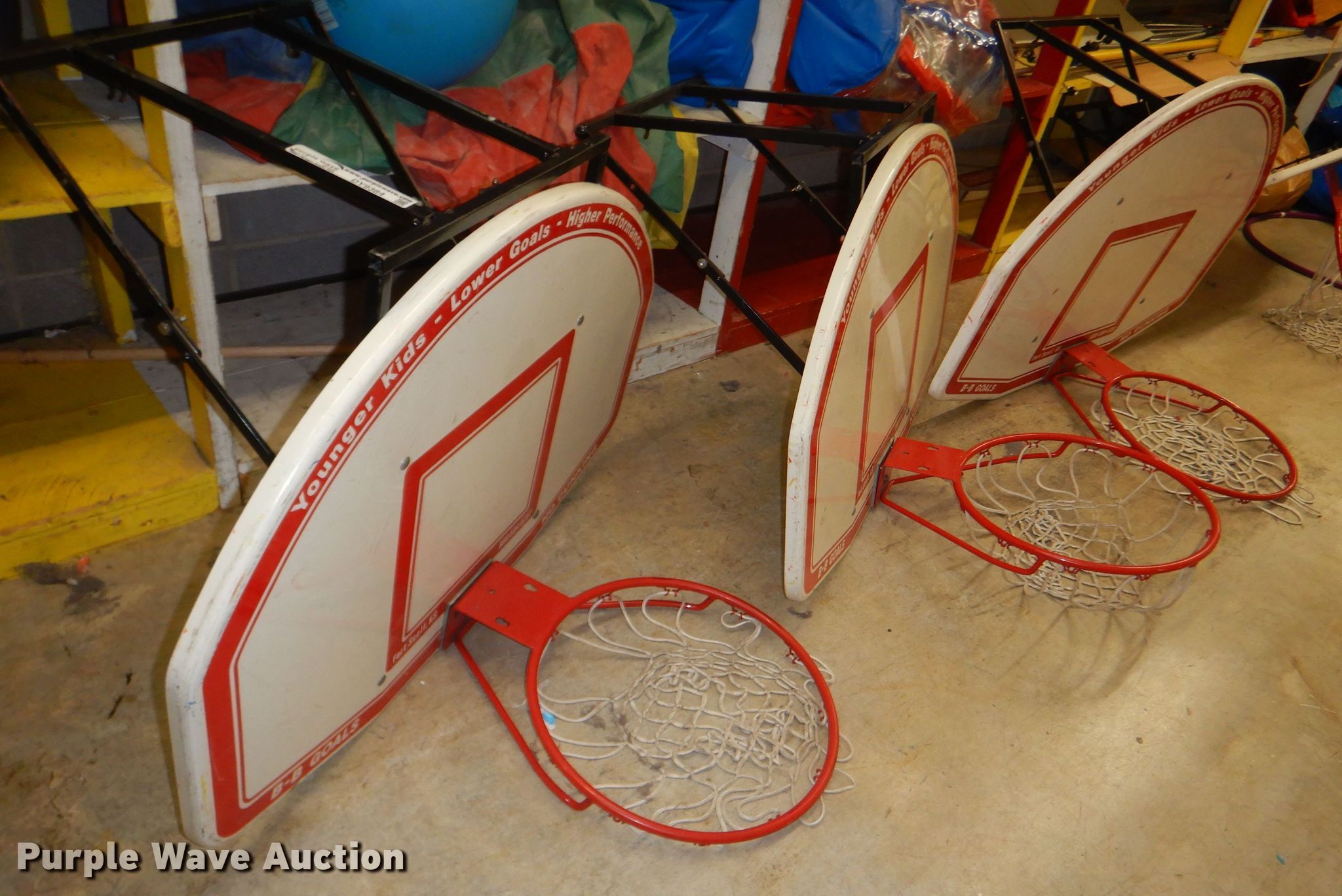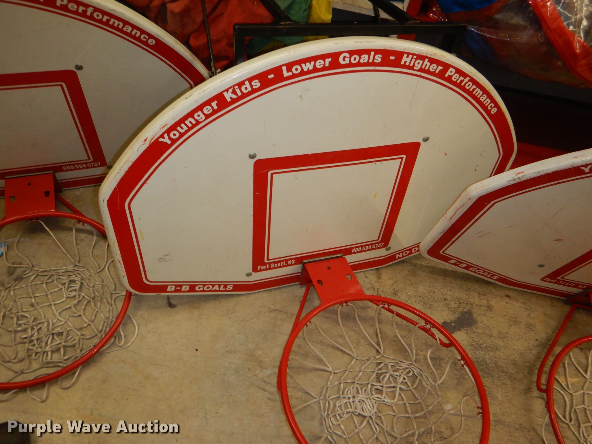 Purple Wave is selling a used Sporting Goods in Kansas. This item is a (4) B-B Goal basketball backboards with the following: 44"W, 19" rim, Stationary mounts