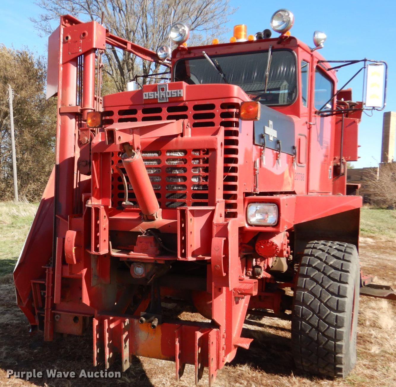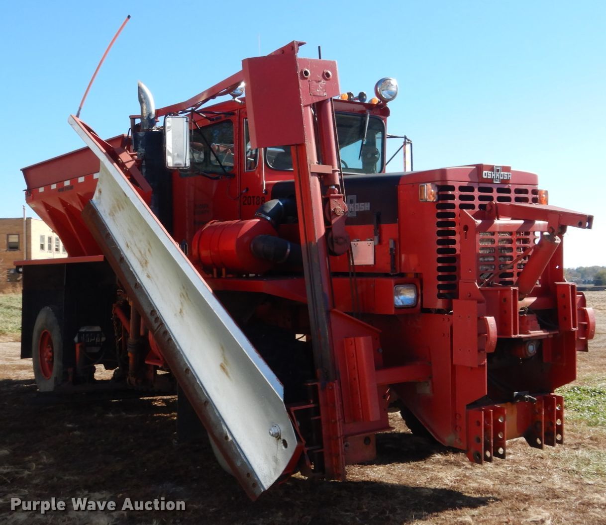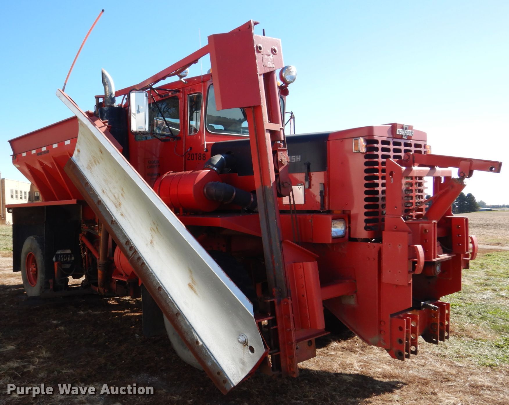 Purple Wave is selling a used Truck Chassis in Iowa. This item is a 1988 Oshkosh P-256-SP spreader truck with the following: 51,627 miles on odometer, 9,049 hours on meter, Cummins 14.0L L6 diesel engine, Nine speed manual transmission, Four wheel drive, Tandem axle, Heat, Front mounted PTO, Monroe steel spreader bed, 10'L, 18.5"W belt, 10'W snow wing, 12'W mid-mount blade, Air brakes, Spring suspension, 445/65R22.5 tires, Unit# 20T88