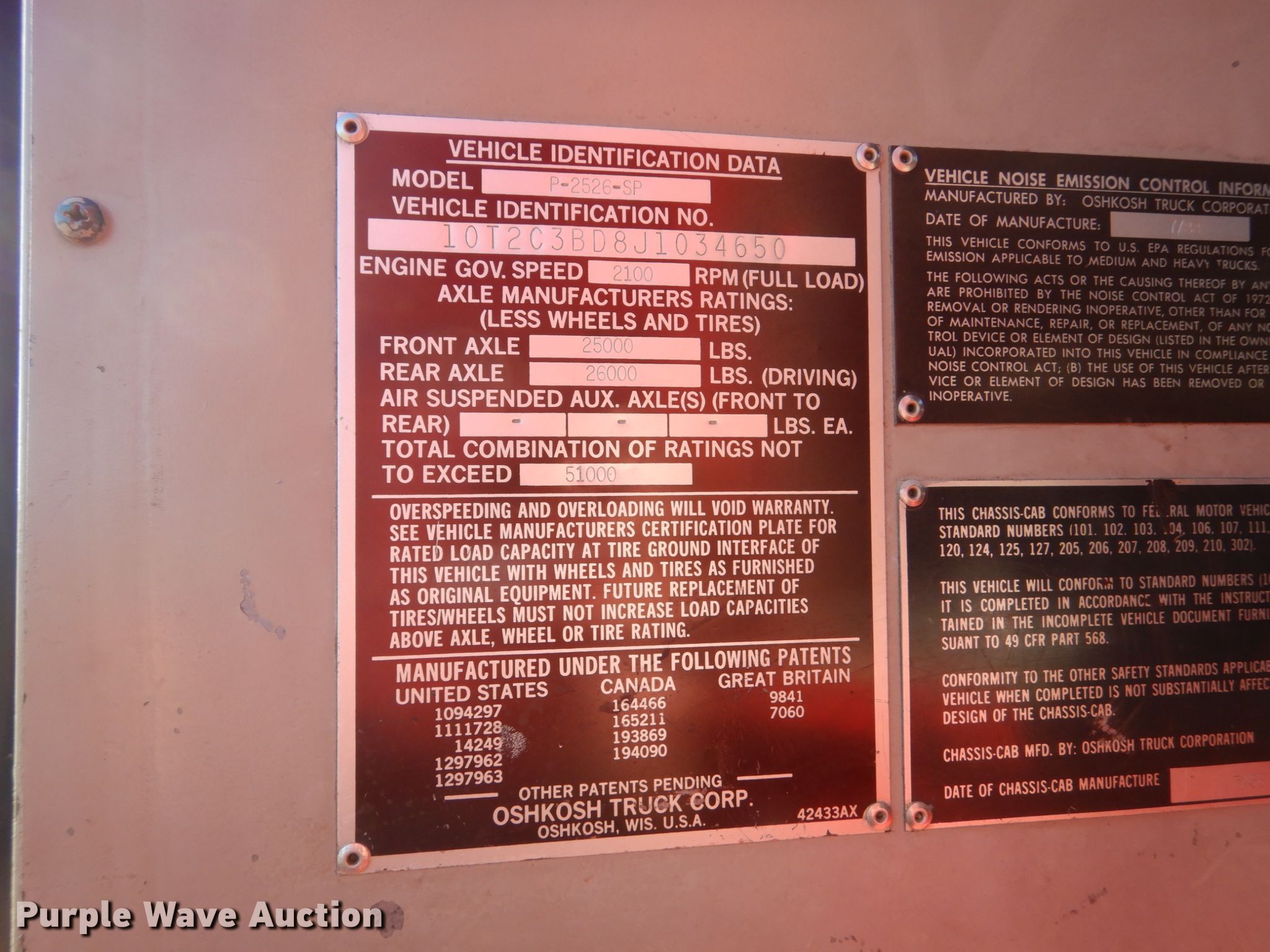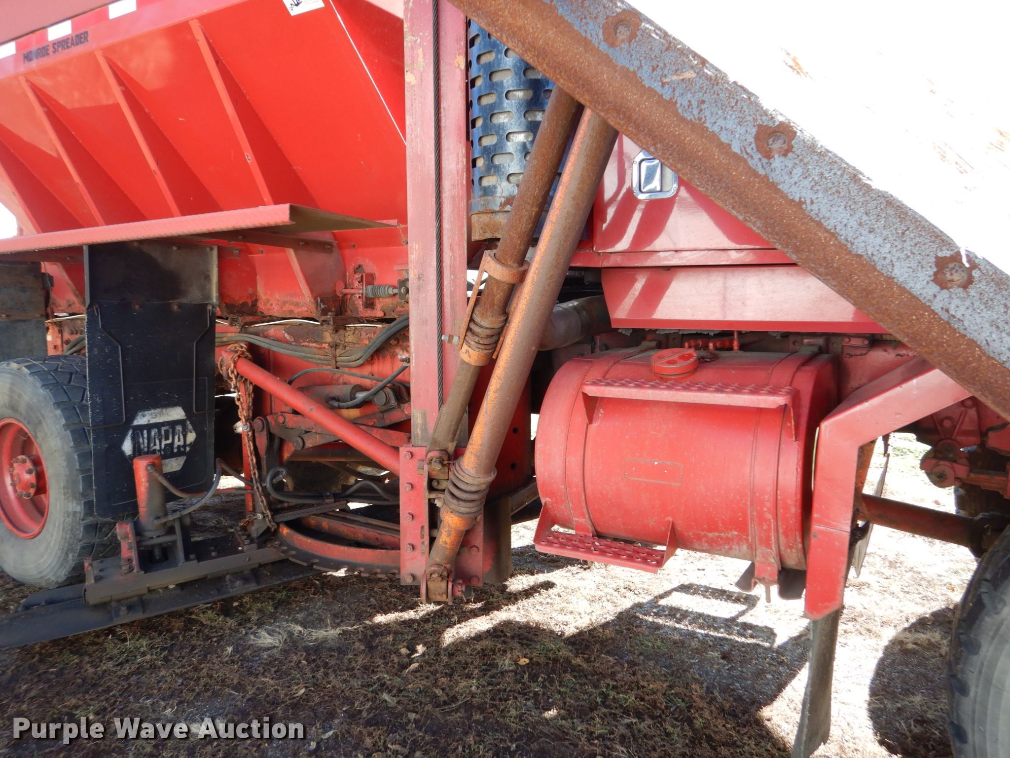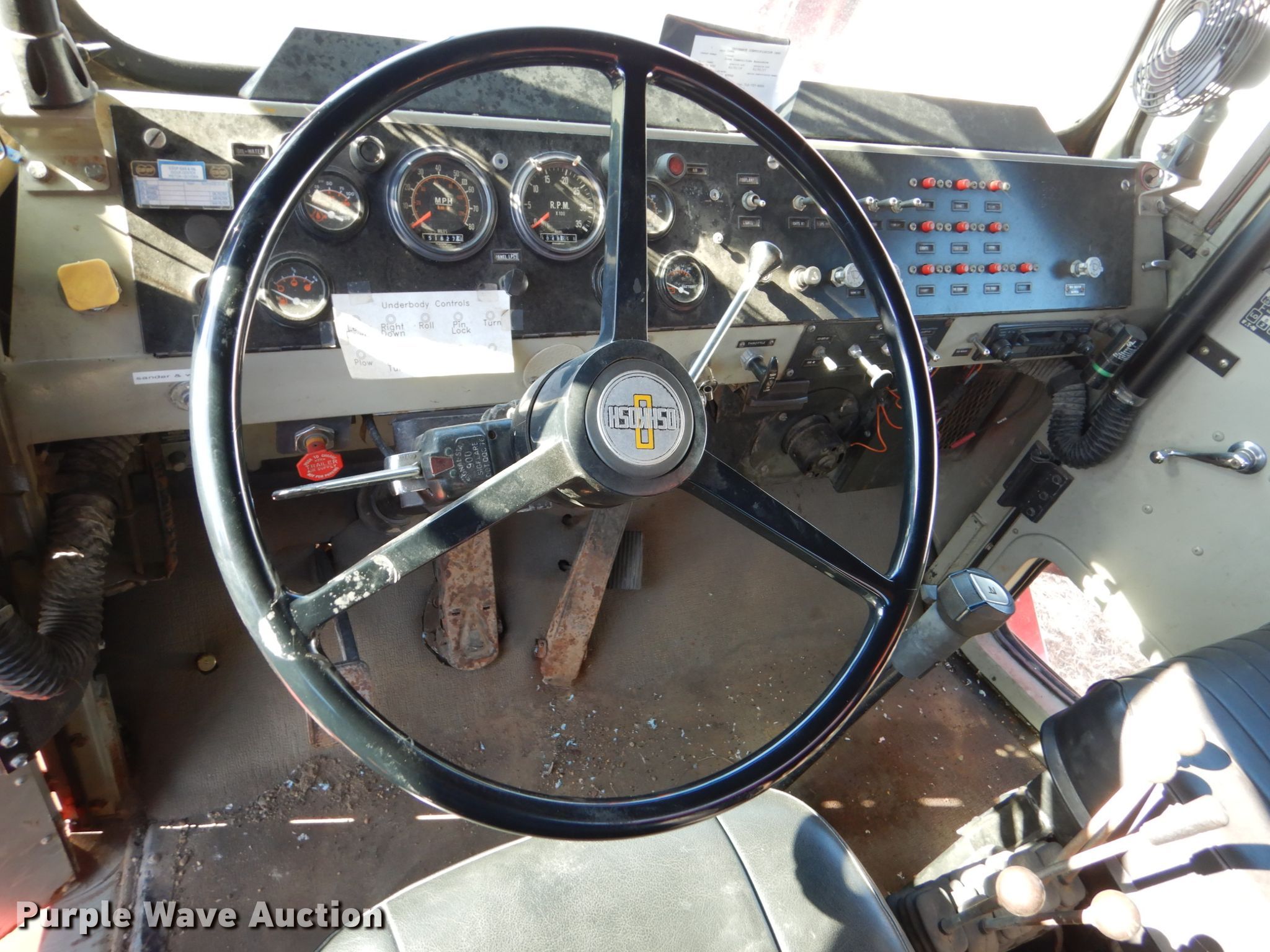 Purple Wave is selling a used Truck Chassis in Iowa. This item is a 1988 Oshkosh P-256-SP spreader truck with the following: 51,627 miles on odometer, 9,049 hours on meter, Cummins 14.0L L6 diesel engine, Nine speed manual transmission, Four wheel drive, Tandem axle, Heat, Front mounted PTO, Monroe steel spreader bed, 10'L, 18.5"W belt, 10'W snow wing, 12'W mid-mount blade, Air brakes, Spring suspension, 445/65R22.5 tires, Unit# 20T88
