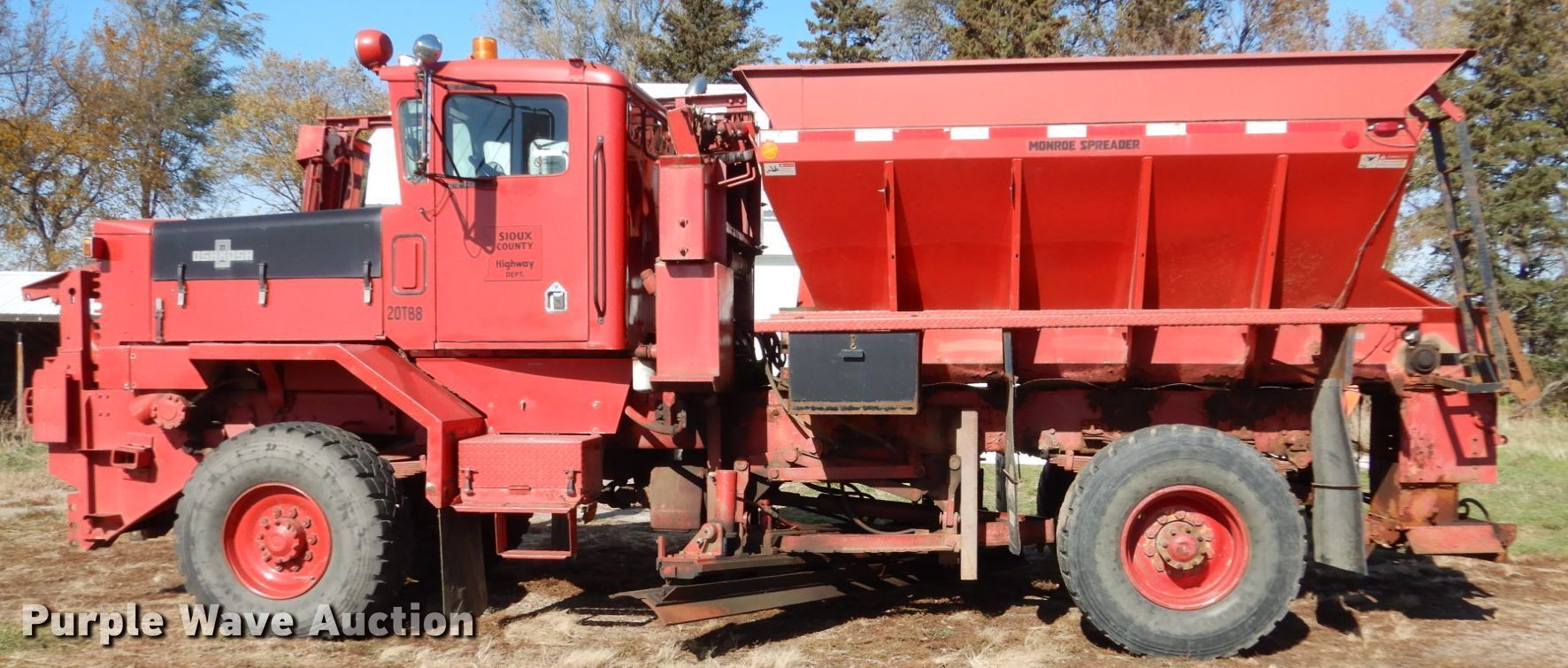 This 1988 Oshkosh P-256-SP spreader truck will sell to the highest bidder regardless of price.