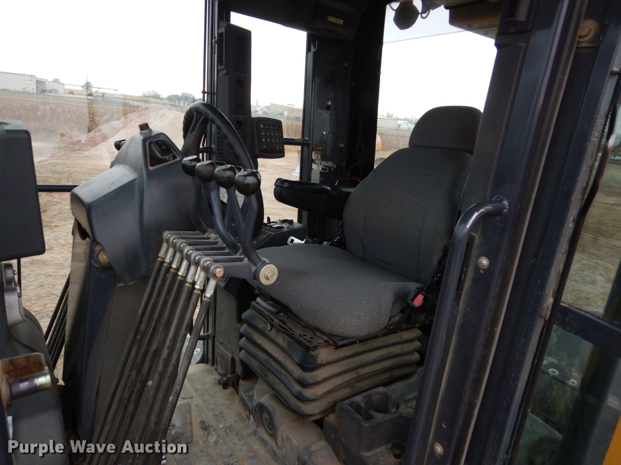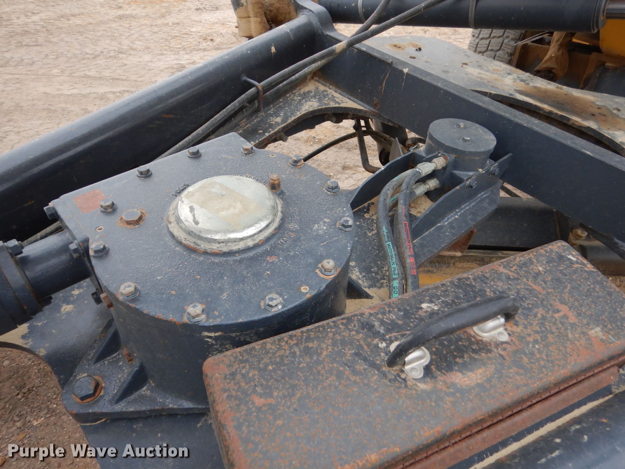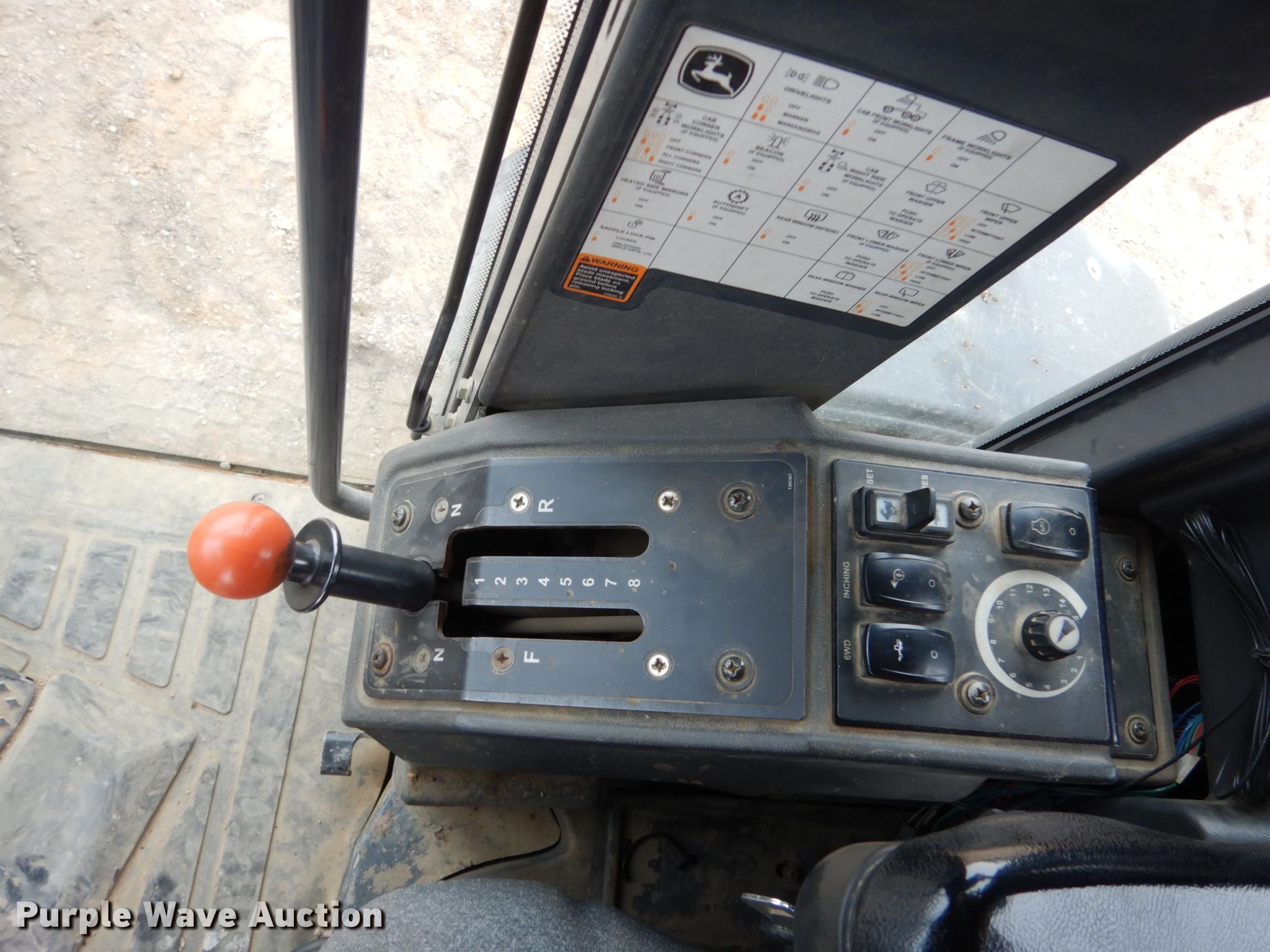 Purple Wave is selling a used Motor Grader in Iowa. This item is a 2005 John Deere 772D motor grader with the following: 9,740 hours on meter, John Deere six cylinder diesel engine, Serial RG6081H260200, Powershift transmission, 8F-8R gears, All wheel drive, Differential locks, Enclosed cab, AC and heat, (12) hydraulic control valves, 16'L moldboard, Tip control, Side shift, Circle slip clutch, 12' Falls Benching wing, Front mounted lift group, 14.00R24 tires, (2) additional 14.00R24 tires, Serial DW772DX596205