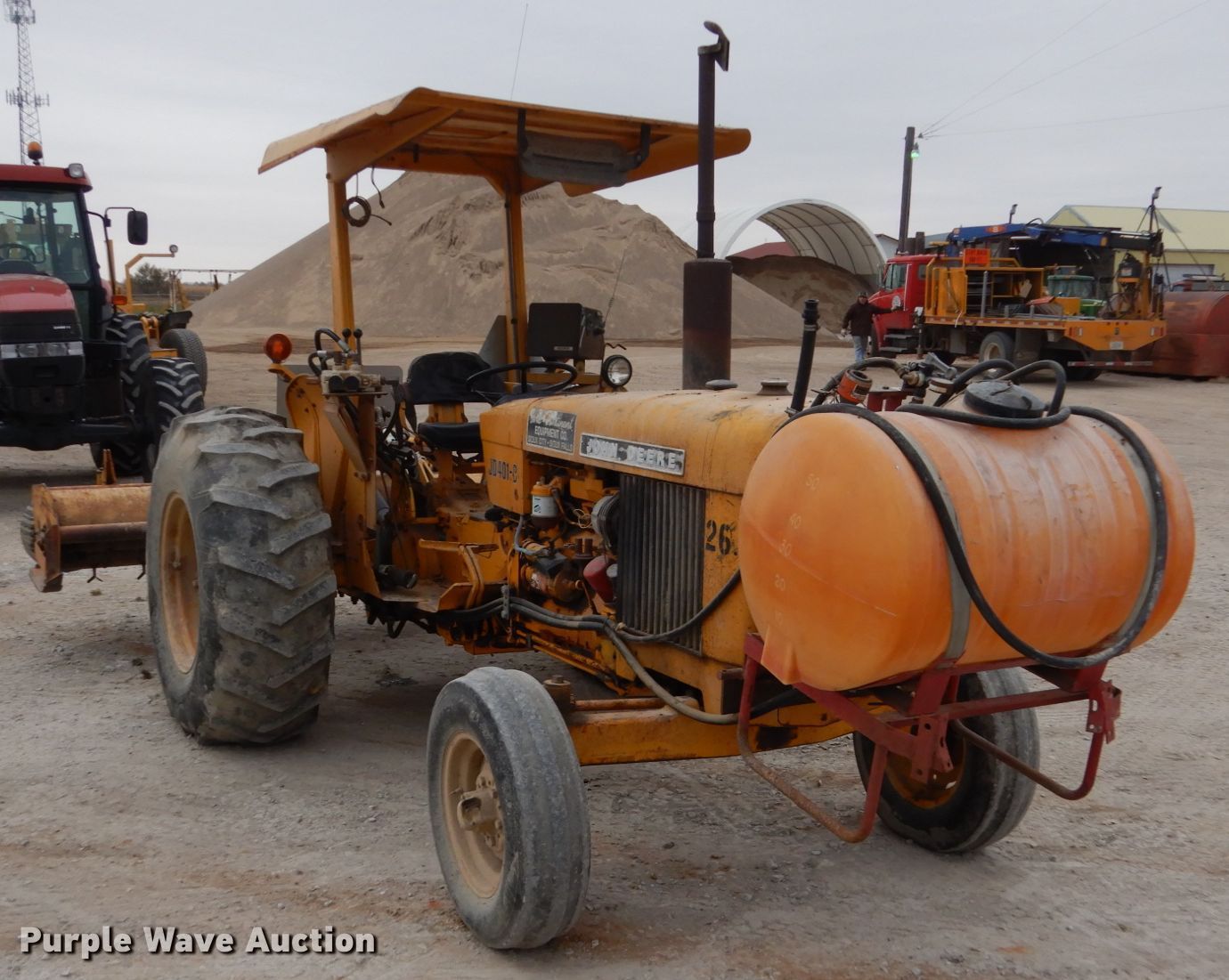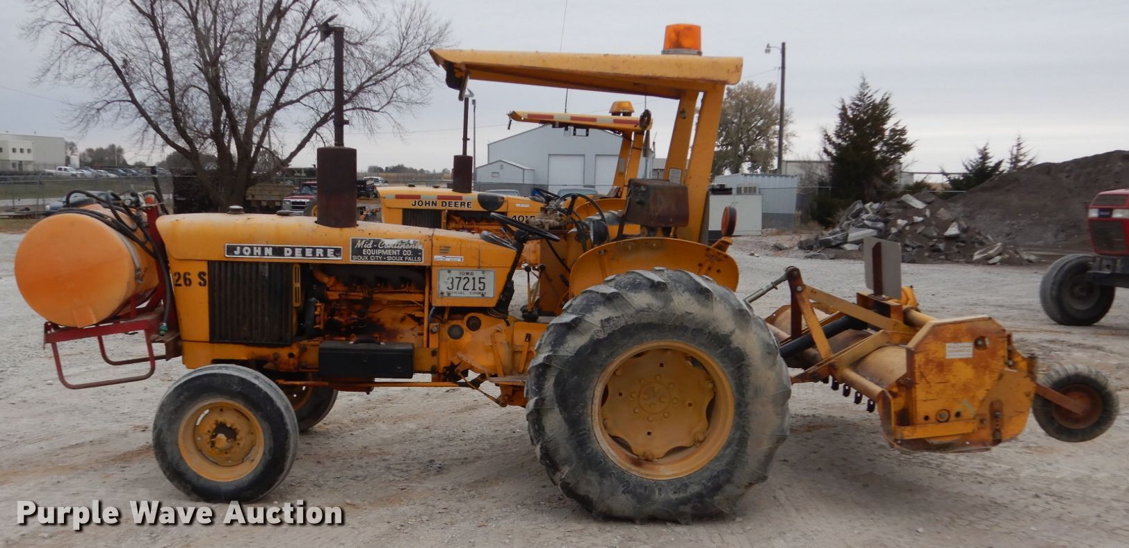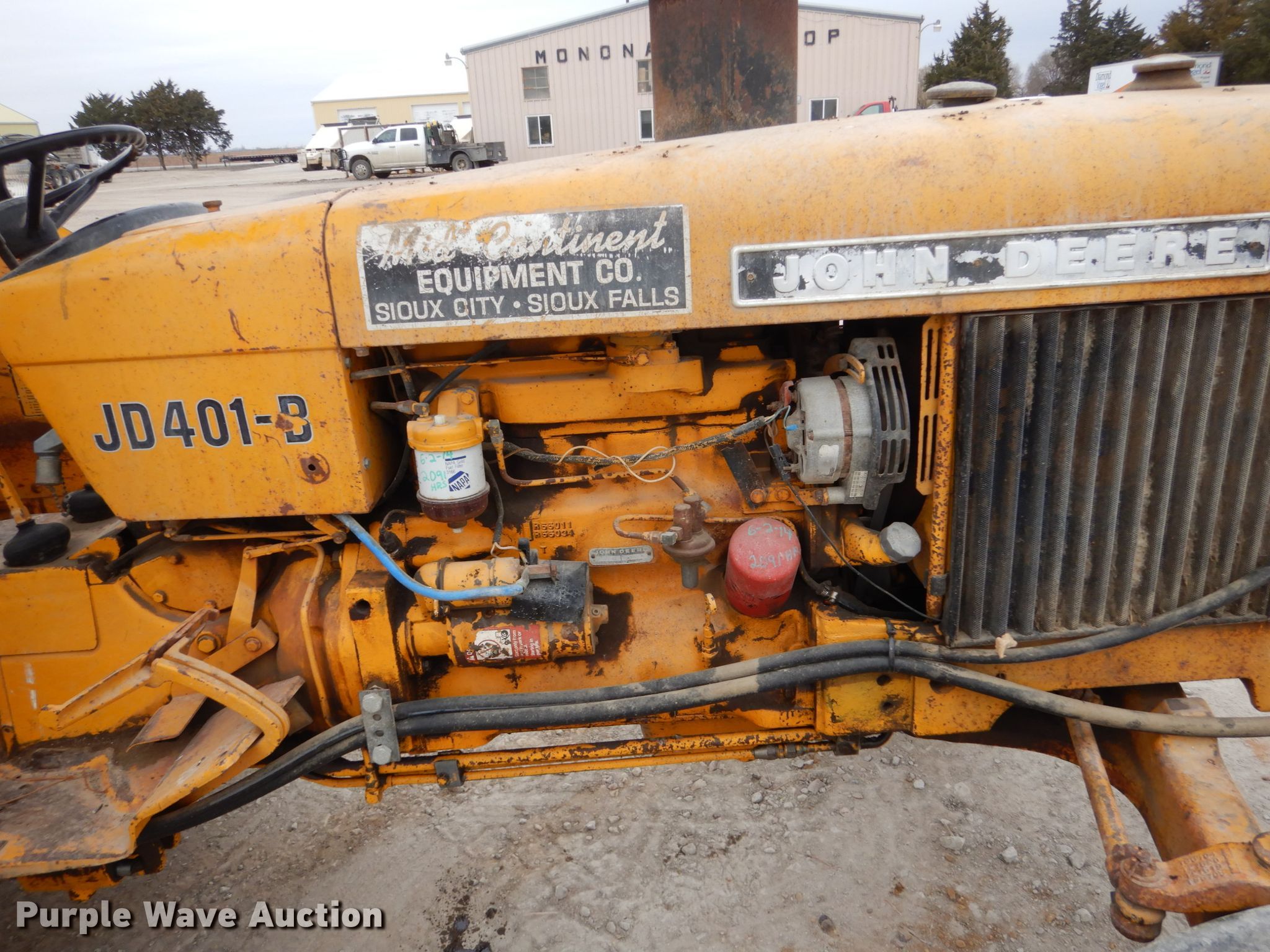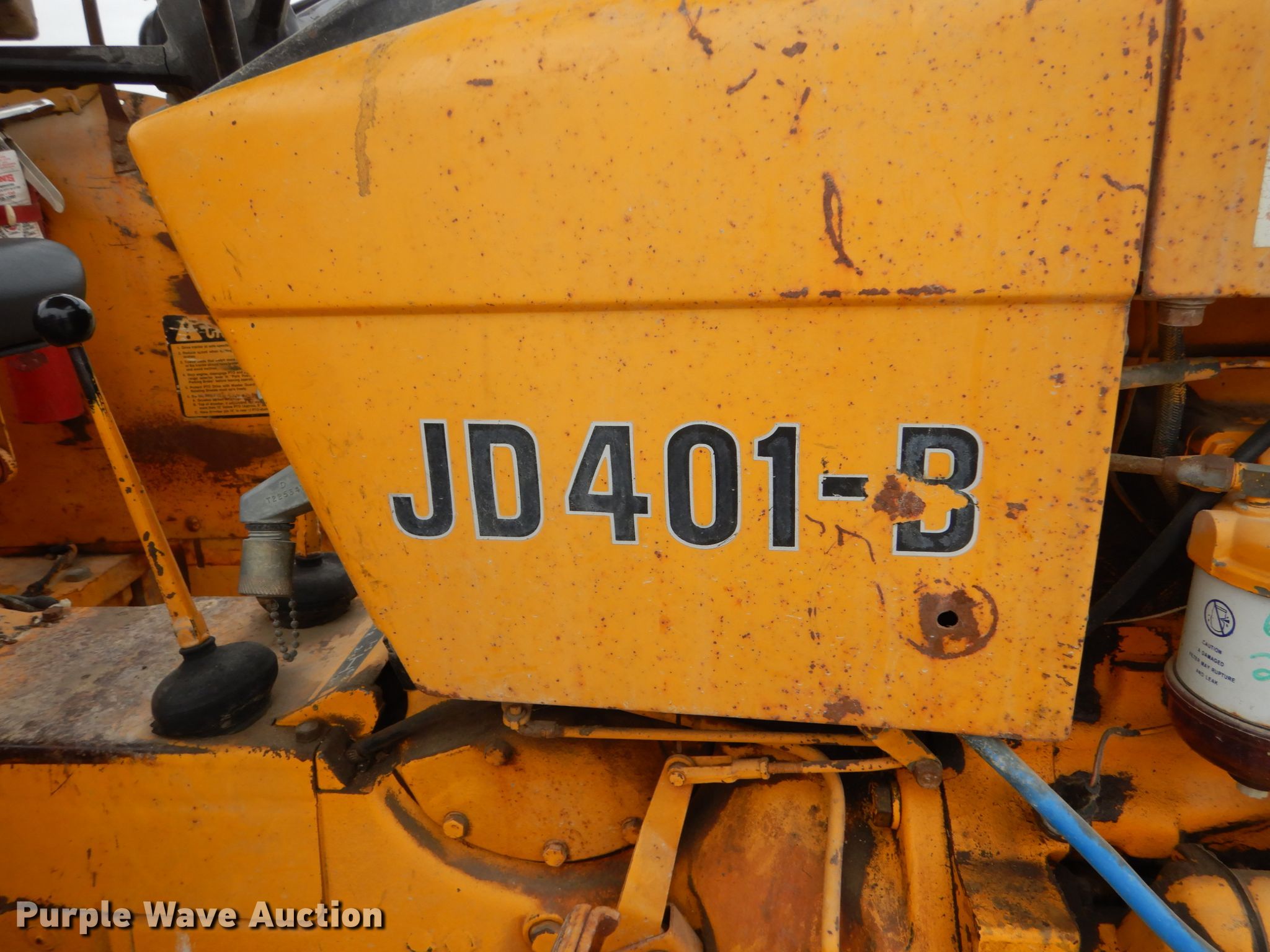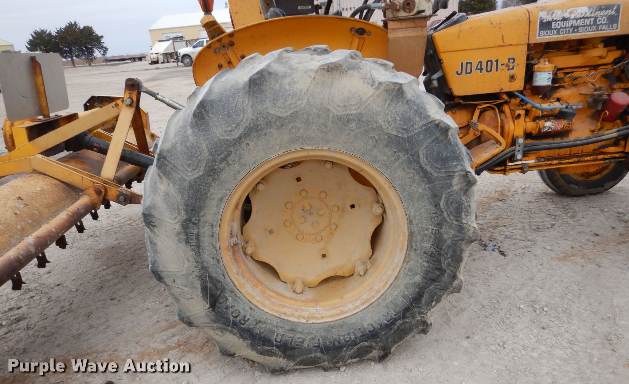 Purple Wave is selling a used Tractor in Iowa. This item is a 1975 John Deere 401B tractor with the following: 2,161 hours on meter, John Deere four cylinder diesel engine, Serial 306185T, Manual transmission, 8F-4R gears, Three point, 540 PTO, Front mounted sprayer, 60 gallon poly tank, 90"W flail mower, 7.5L-15 front tires, 16.9-24 rear tires, Serial 207171T