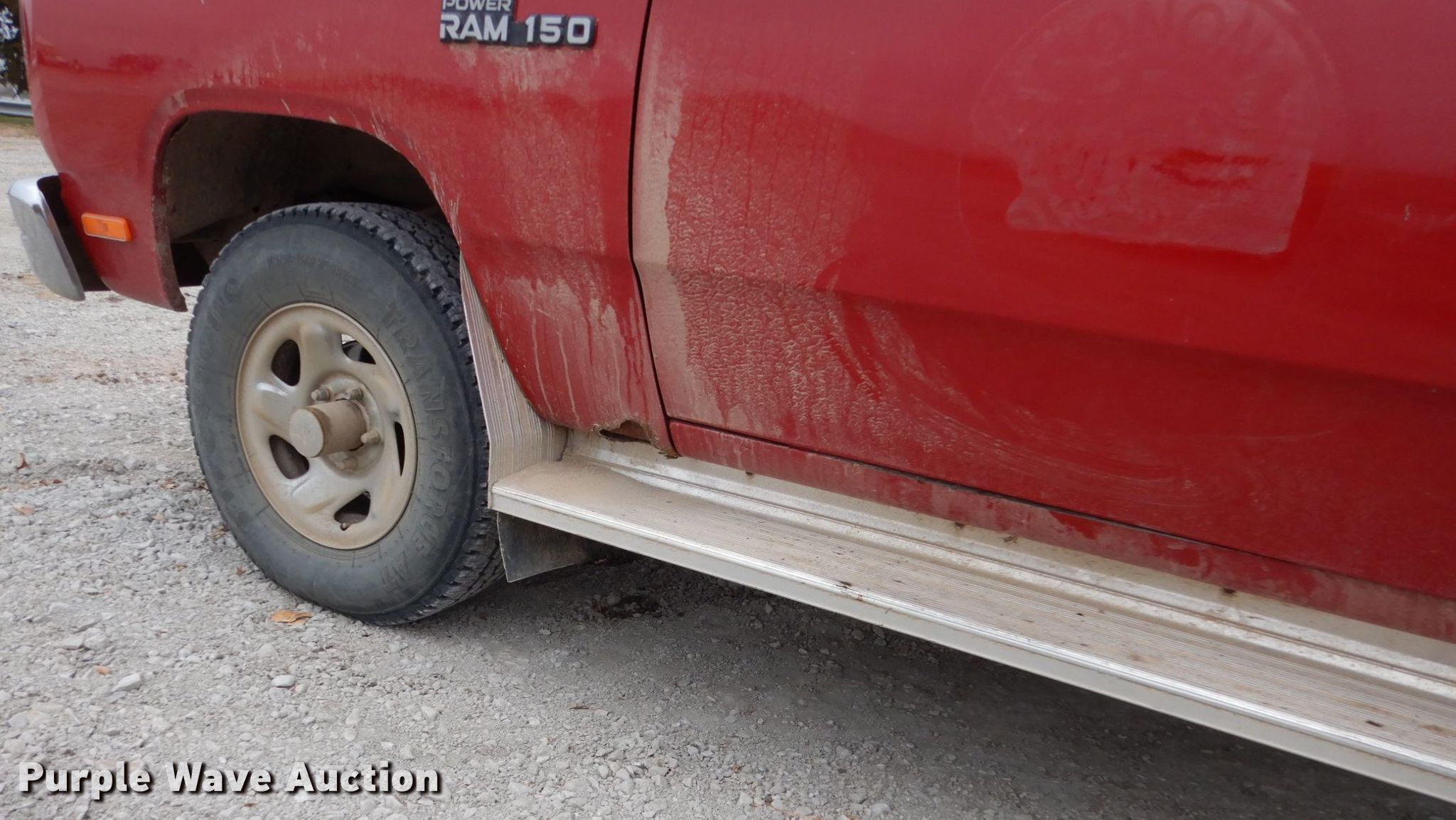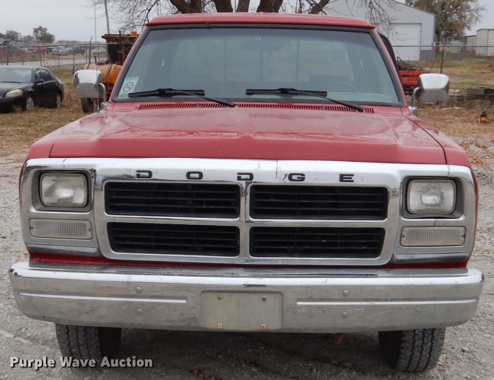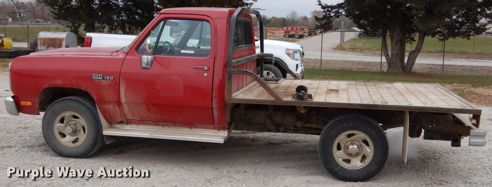 Purple Wave is selling a used 1/2 Ton Pickup or Van in Iowa. This item is a 1991 Dodge Ram 150 flatbed pickup truck with the following: 159,165 miles on odometer, 5.9L V8 OHV 16V gas, Automatic transmission, Four wheel drive, AC and heat, 8'L x 92"W flatbed, 245/75R16 tires