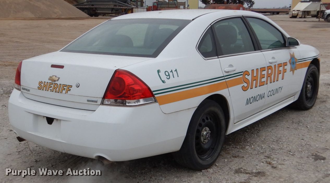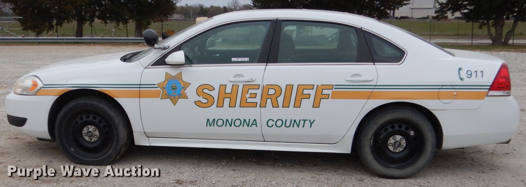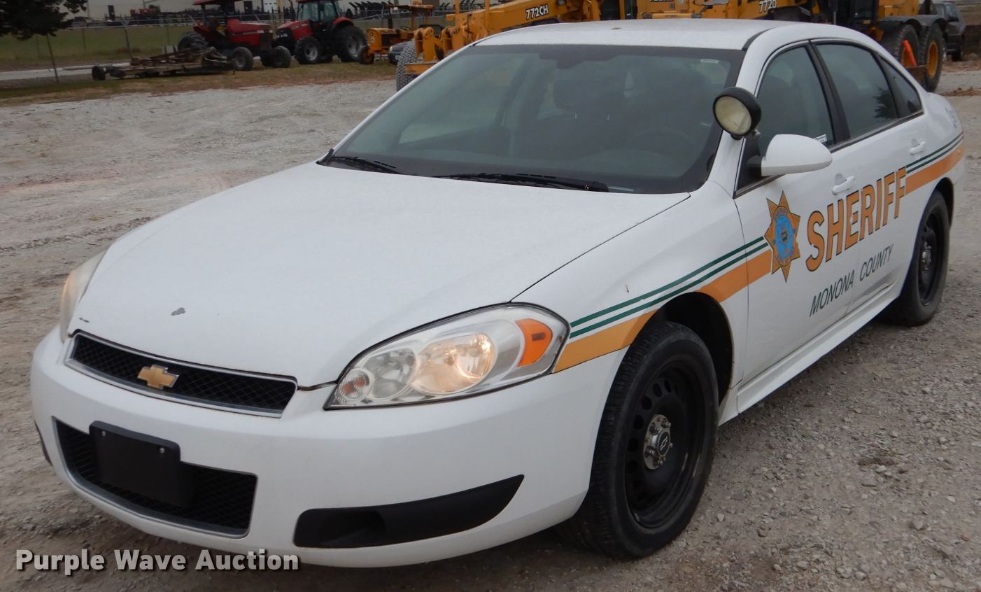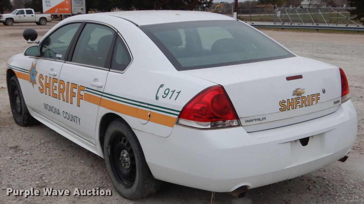 2012 Chevrolet Impala Police Cruiser. 109,781 miles on odometer, 3.6L V6 DOHC 16V FFV gas engine, Automatic transmission, AC and heat, Cruise, Power windows, locks, and seat, 235/55R17 tires. Iowa title. Seller is a government entity who will be assigning and distributing the title. Please contact the seller for distribution questions. 2G1WD5E3XC1157020. Monona County, IA. Onawa, IA 51040