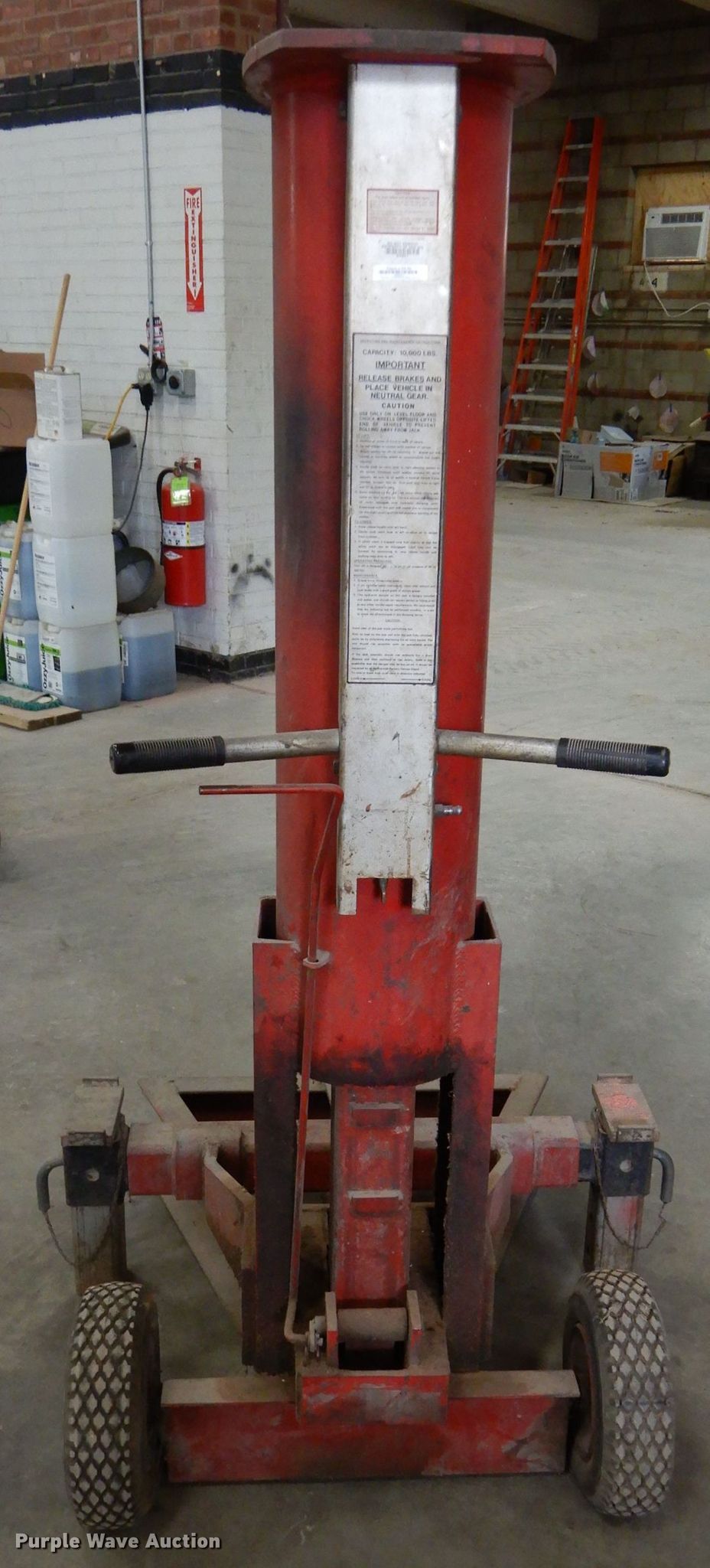 Purple Wave is selling a used Tools in Kansas. This item is a Blackhawk 67550 automotive jack with the following: Five ton capacity, Air operated, Serial CD90702