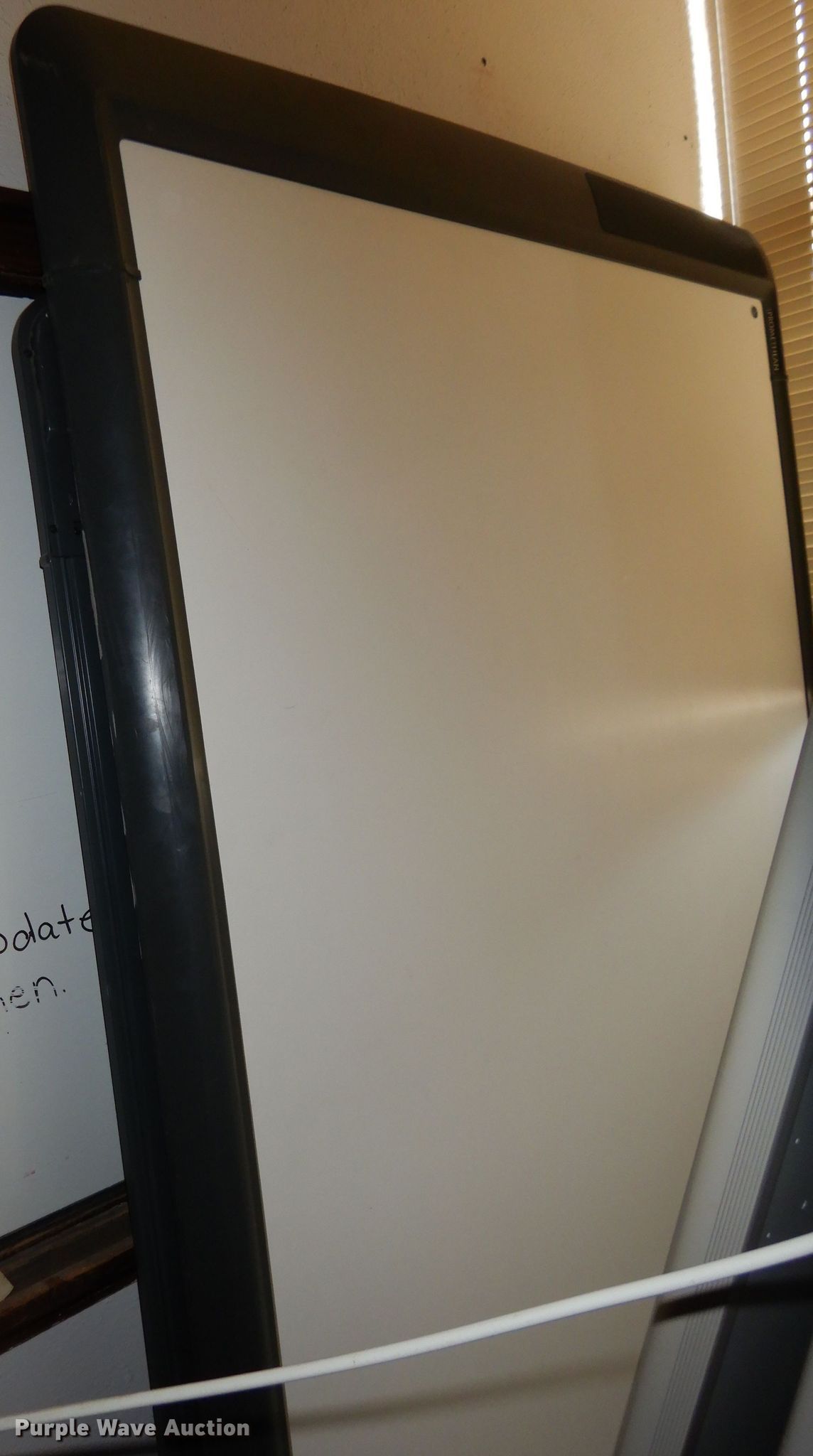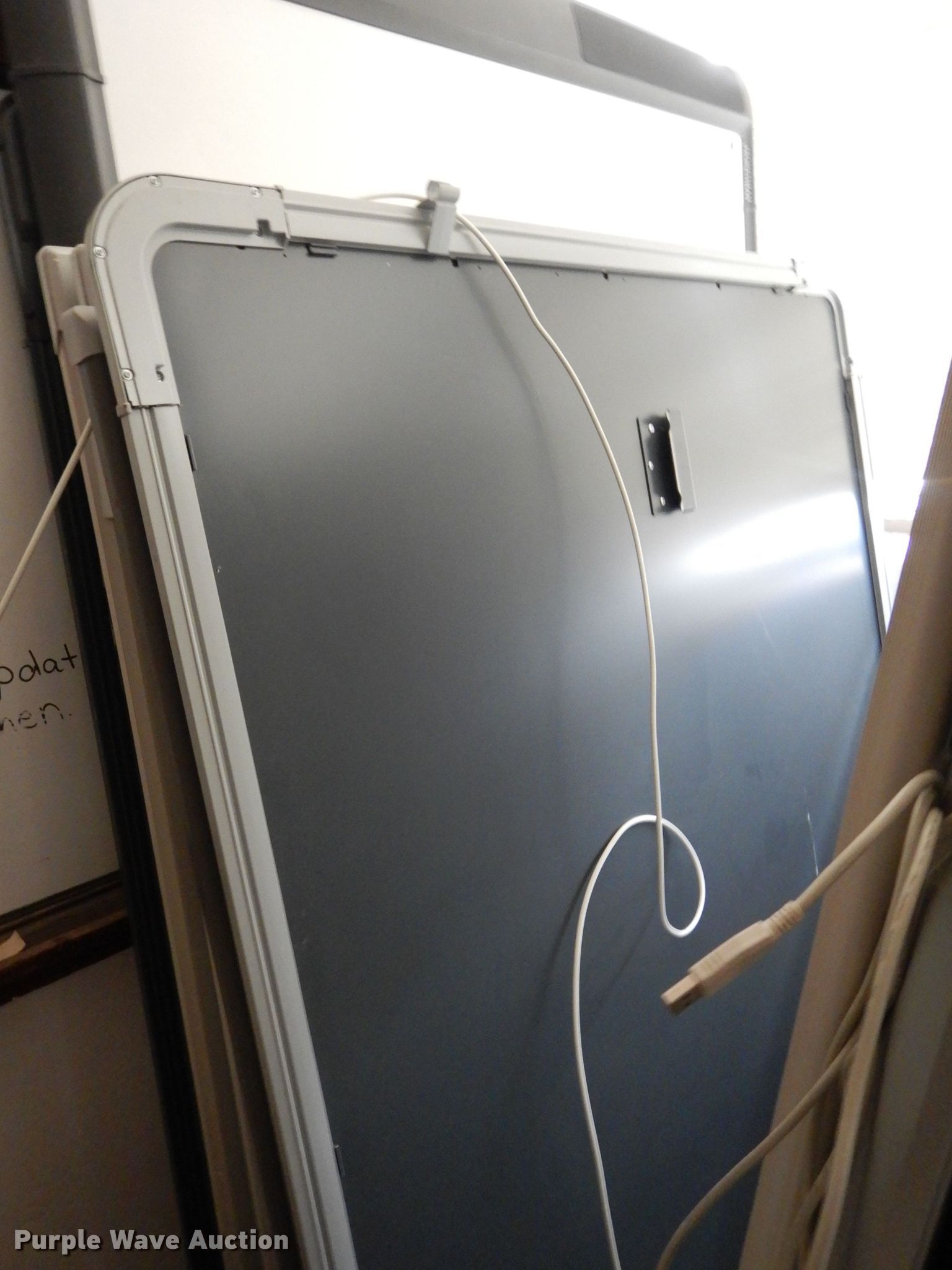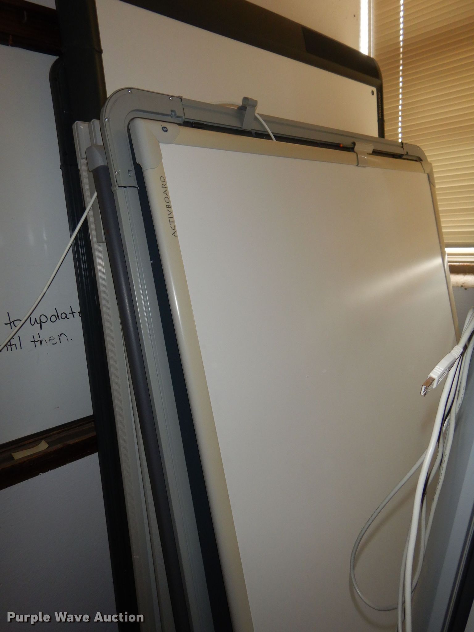Purple Wave is selling a used Office Supplies and Equip. in Kansas. This item is a Office supplies and equipment with the following: Approx. 10 Pormethian Activ Board smartboards, Approx. 5 projector screens