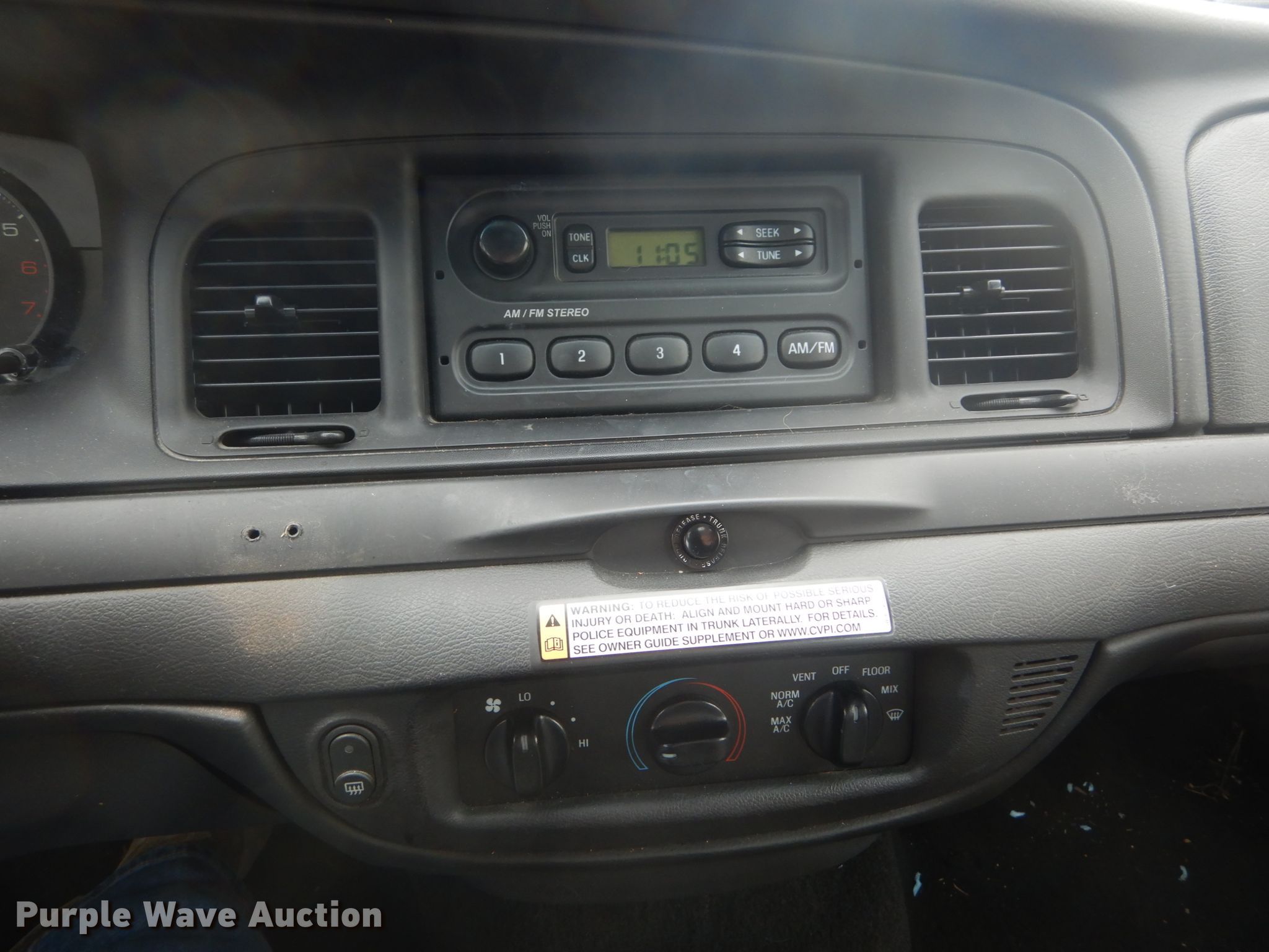 Purple Wave is selling a used Passenger Vehicle in Missouri. This item is a 2011 Ford Crown Victoria Police Interceptor with the following: 90,900 miles on odometer, 4.6L V8 SOHC 16V FFV gas engine, Automatic transmission, AC and heat, Cruise, Power windows and locks, 235/55R17 tires