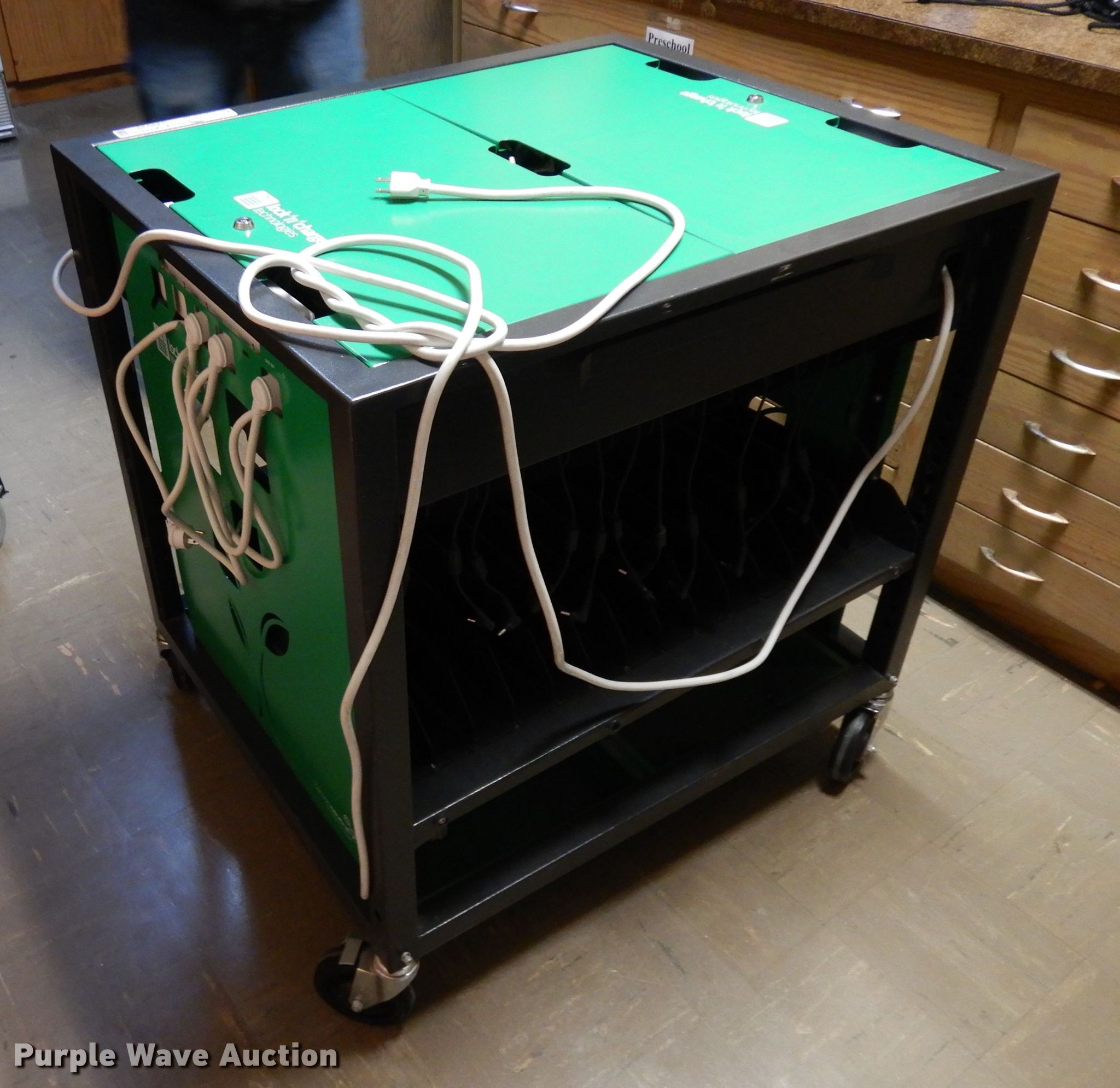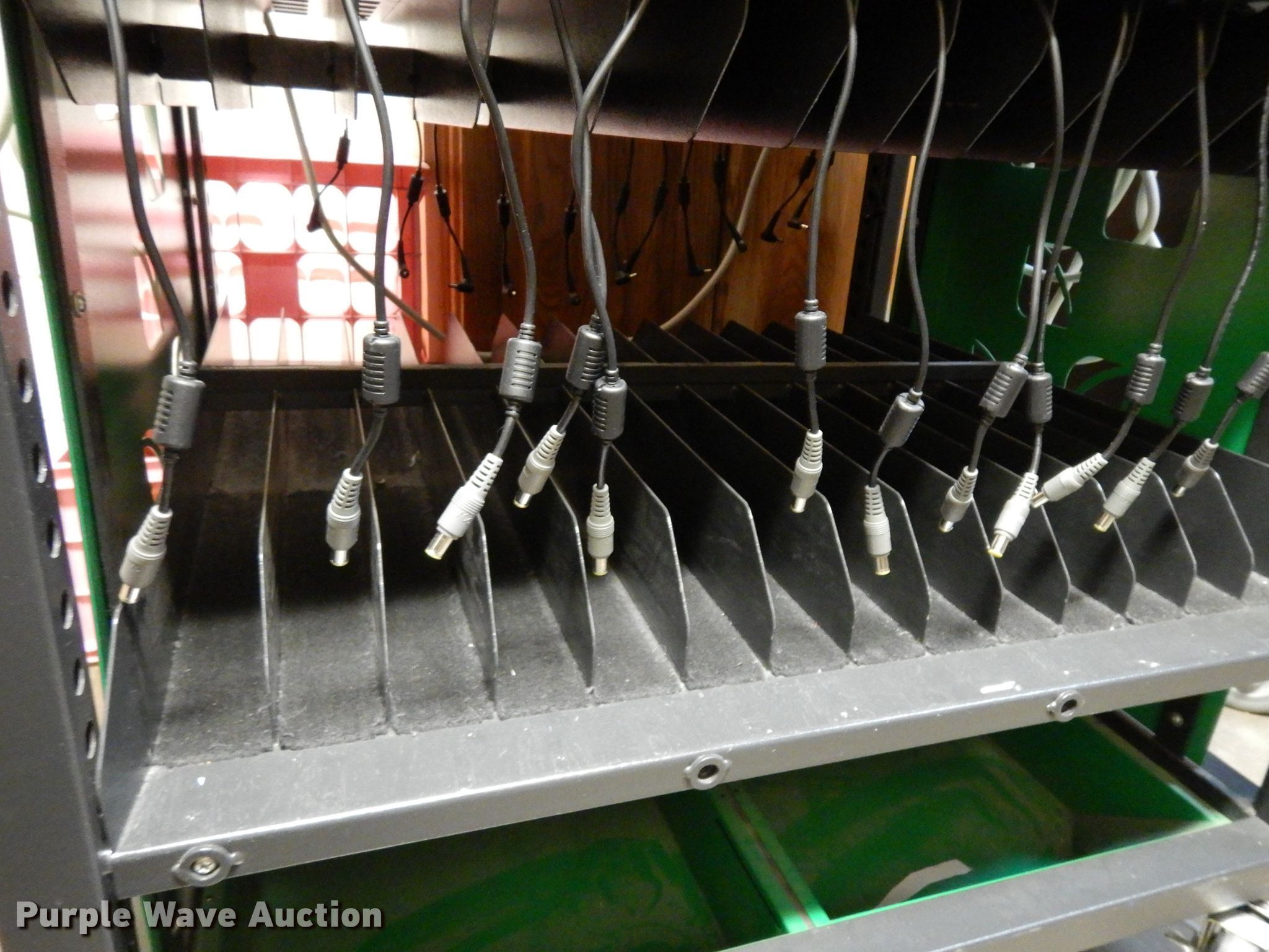 Purple Wave is selling a used Office Supplies and Equip. in Kansas. This item is a Laptop storage cart with the following: 28 laptop capacity, Chargers not included