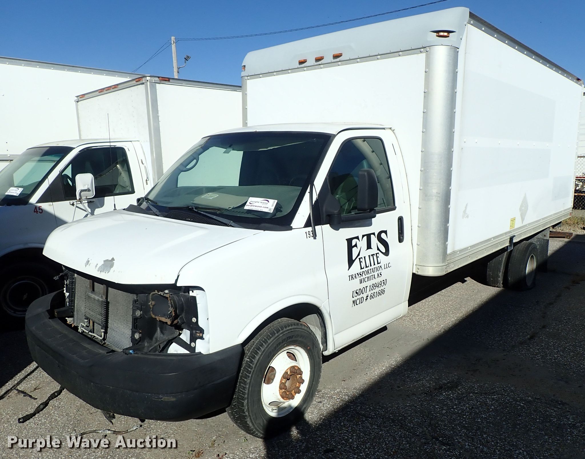 Purple Wave is selling a used Box Truck in Kansas. This item is a 2008 GMC Savana box truck with the following: Unknown miles on odometer, 4.8L V8 OHV 16V gas engine, Automatic transmission, Single axle, AC and heat, Supreme box bed, 16'L x 96"W, Wood floor, Slider ramp, Spring suspension, Hydraulic brakes, 225/75R16 tires, Battery dead, Lights missing, Parts may be missing, Ignition components may be missing, Tires flat, Unknown operating condition