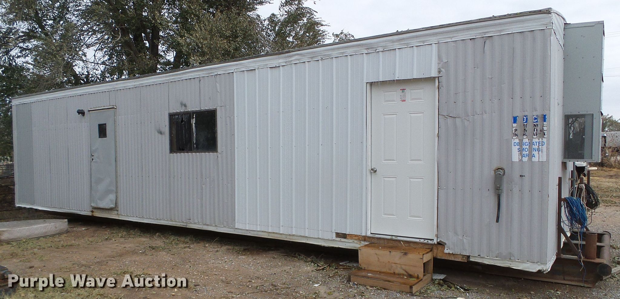 Purple Wave is selling a used Manufactured Home or Office in Oklahoma. This item is a Oilfield doghouse with the following: 42' overall length, 40'L x 12'W, Office, Kitchen, Bathroom, Bedroom, AC unit, Skid mounted