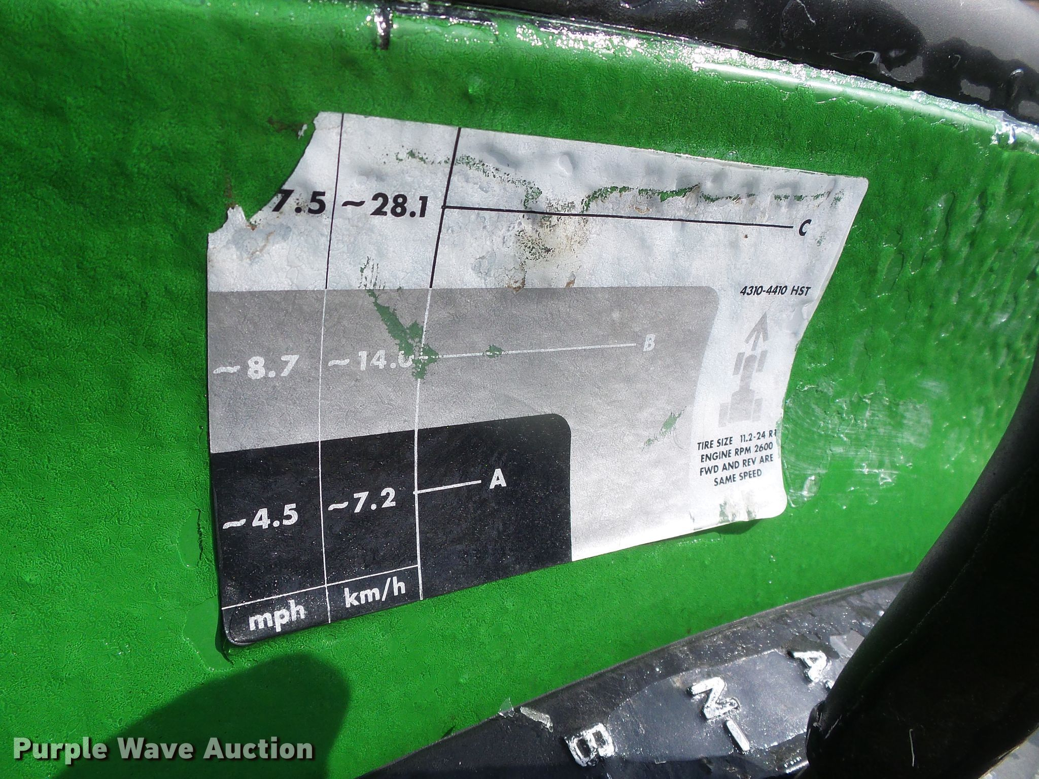 Purple Wave is selling a used Tractor in Oklahoma. This item is a 2002 John Deere 4310 tractor with the following: 263 hours on meter, Yanmar 1.5L three cylinder diesel engine, Three speed hydrostatic transmission, 540 PTO, Three point, Top link, 5.00-15 front tires, 12.4-24 rear tires, Serial LV4310H131425