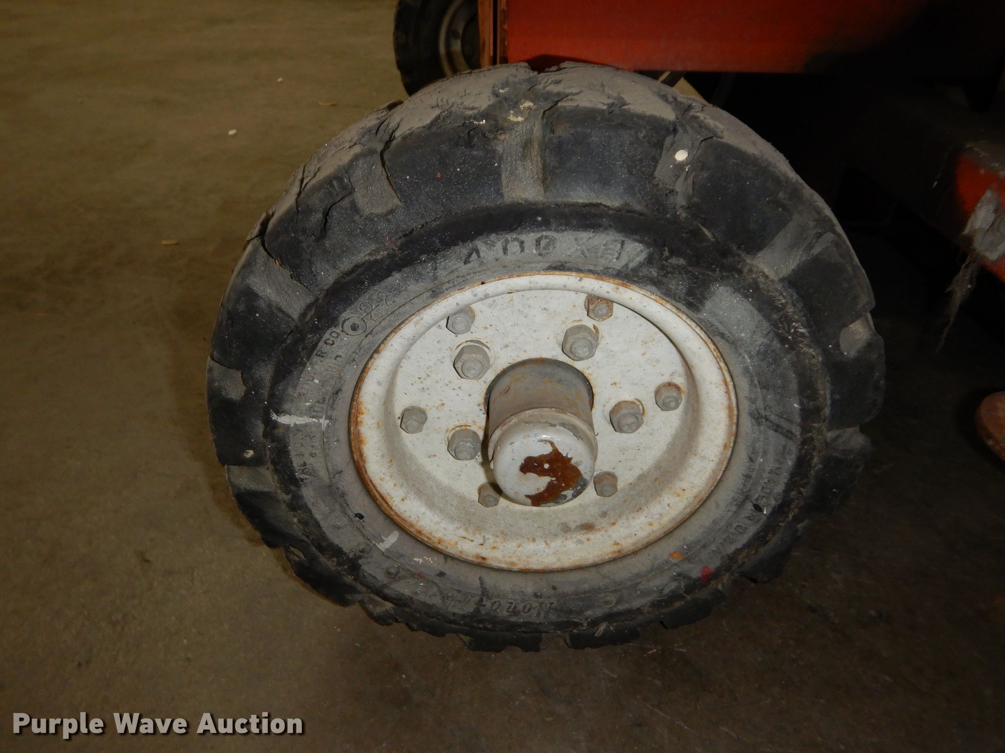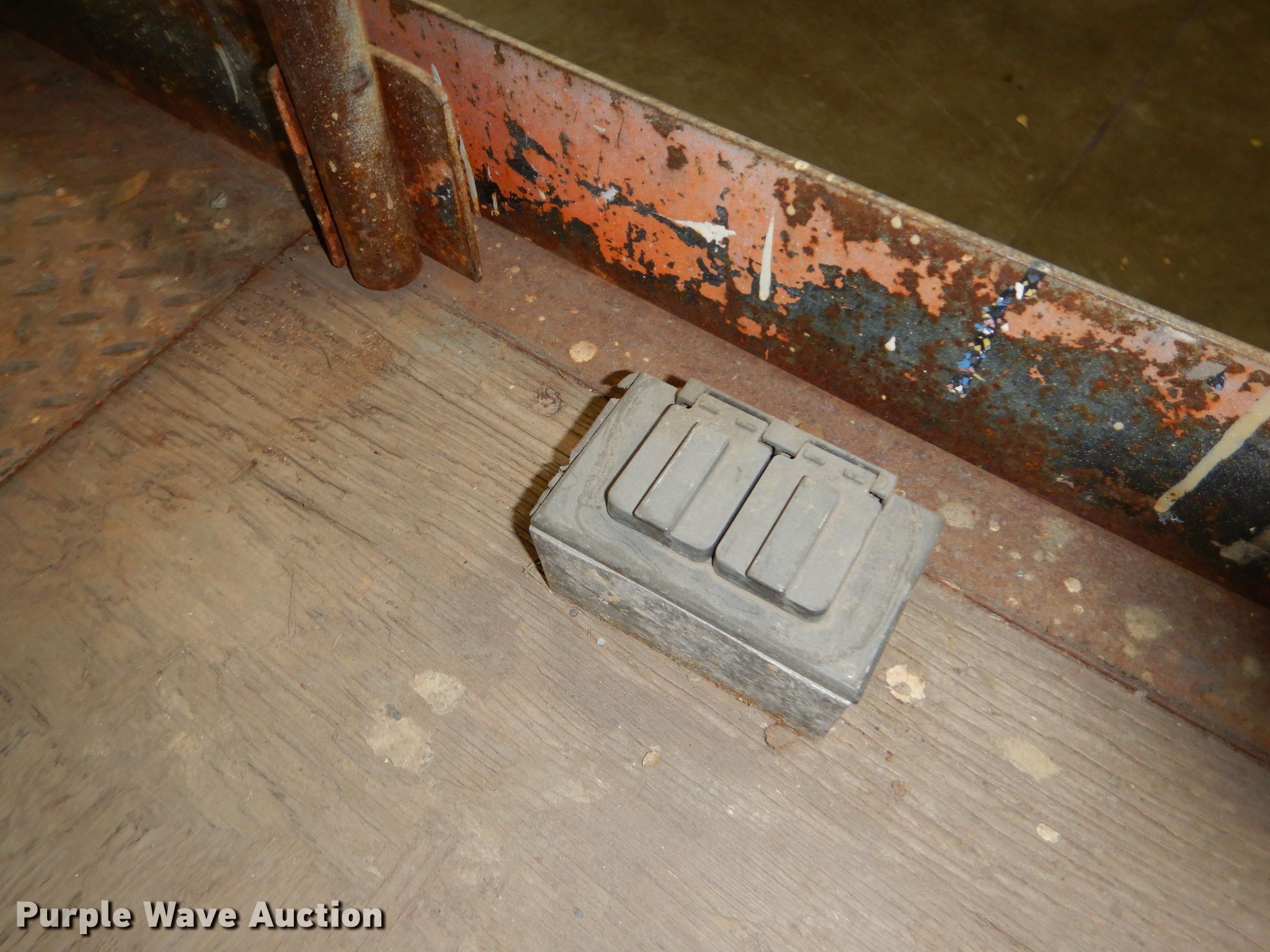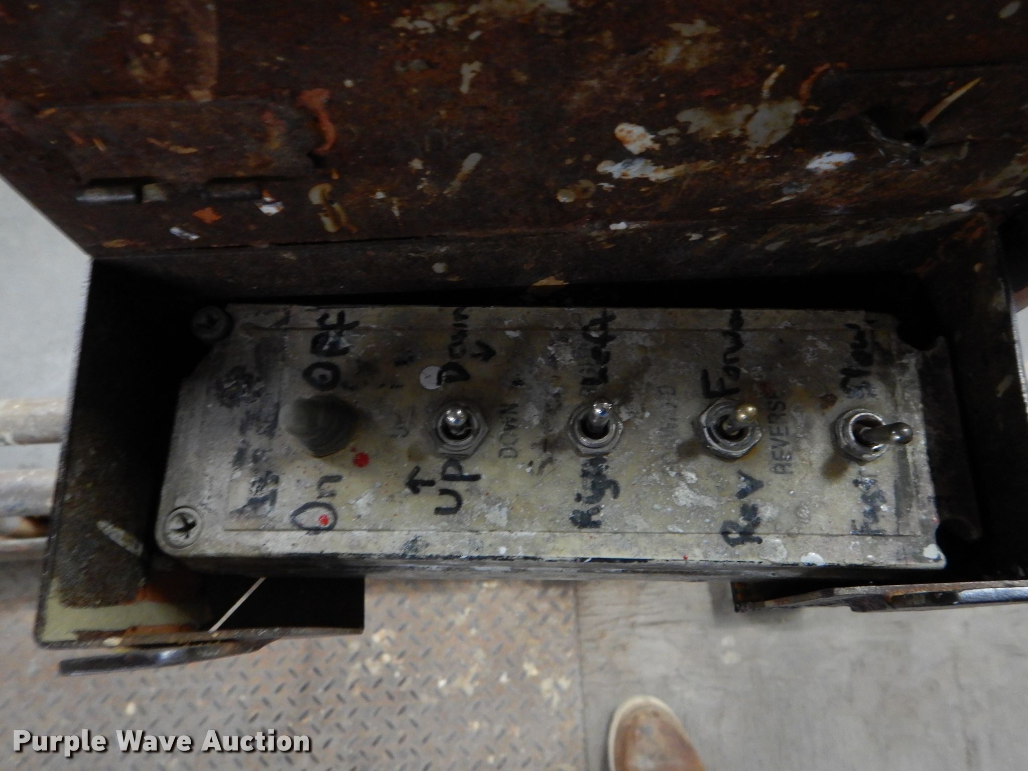 Hunterlift 2152 scissor lift. 24V electric motor, 1,000 lbs max lift capacity, 21' max lift height, 6.5'L x 52"W platform Platform and ground controls, Manual platform extensions, Plywood platform floor, 4.00x8 solid tires, Serial AK87-12. Kansas City, KS 66109