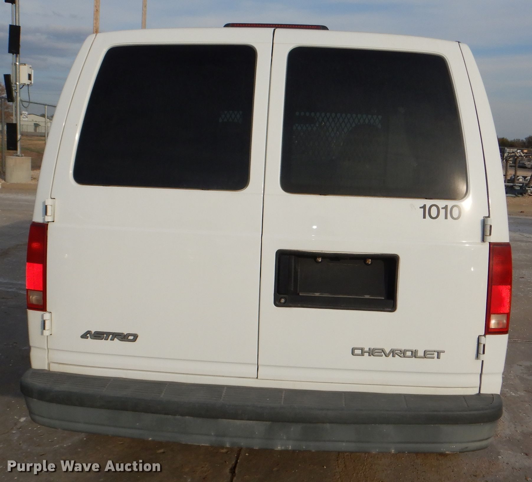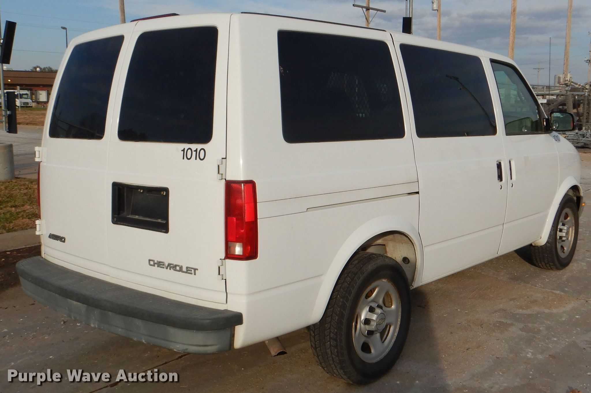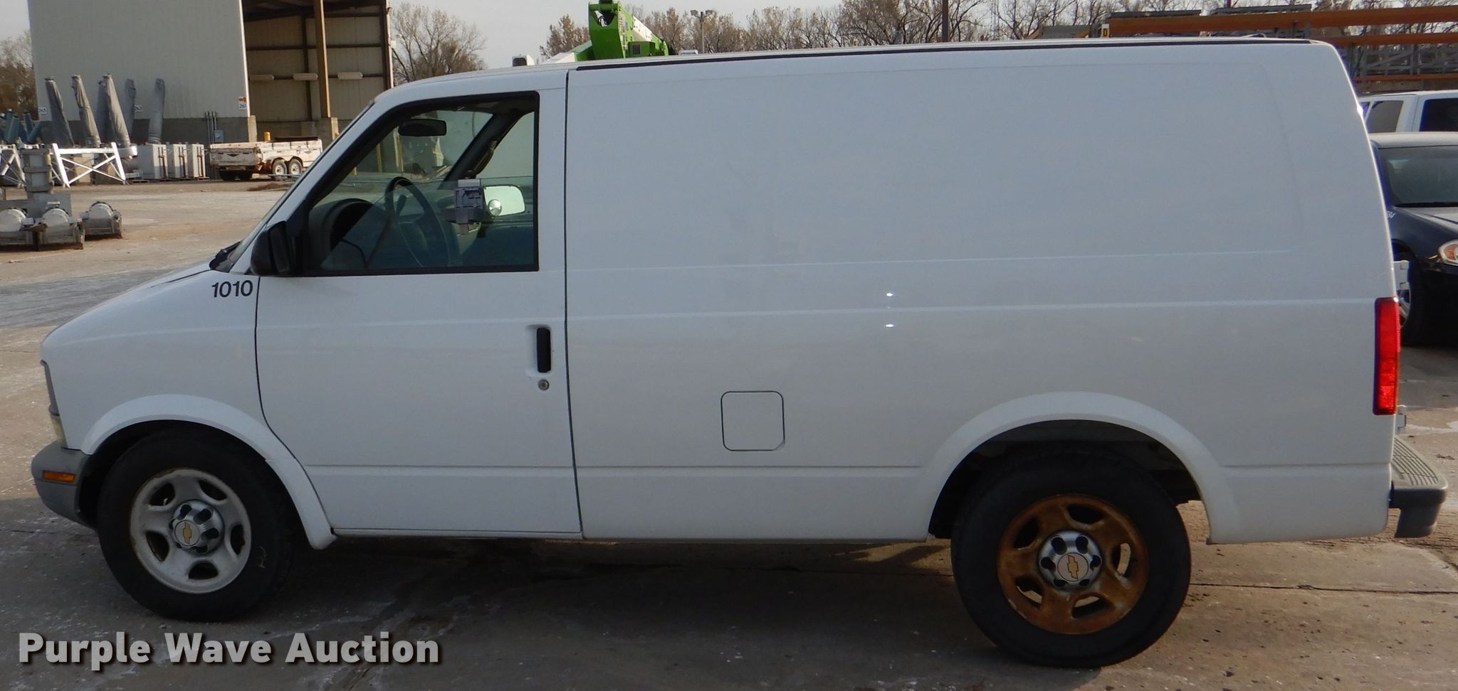 Purple Wave is selling a used Passenger Vehicle in Kansas. This item is a 2005 Chevrolet Astro van with the following: 89,893 miles on odometer, 4.3L V6 OHV 12V gas engine, Automatic transmission, AC and heat, Cruise, Power windows and locks, Cage divider, 215/70R16 tires, Hail damage, Unit# 1010