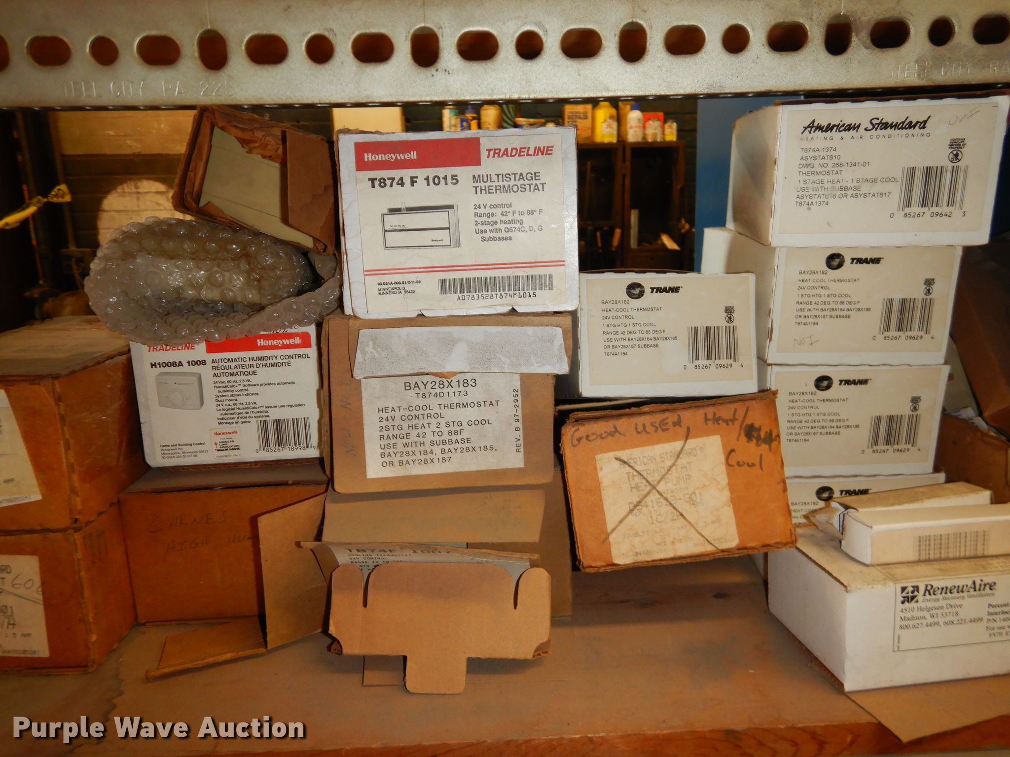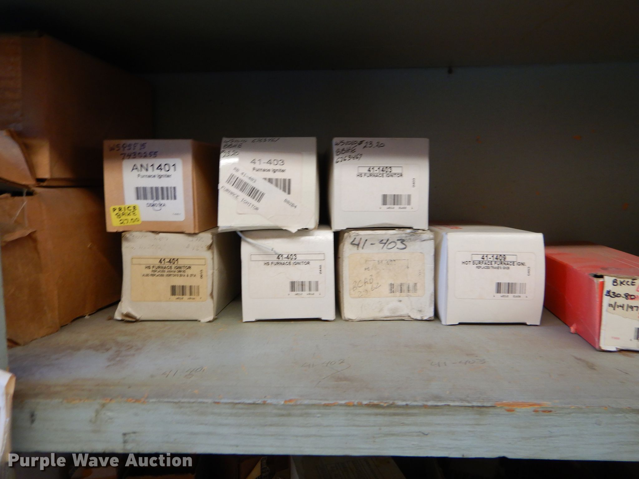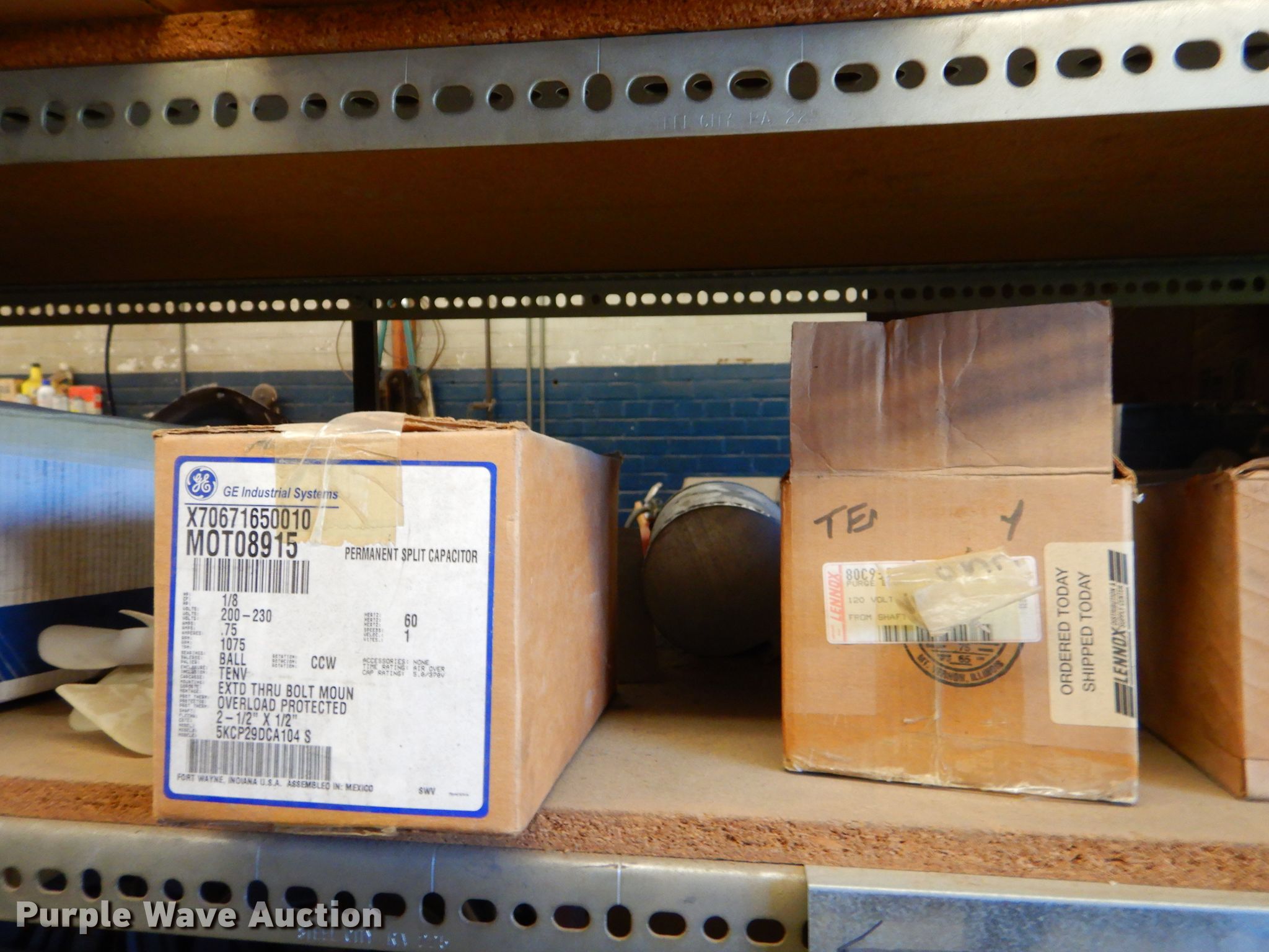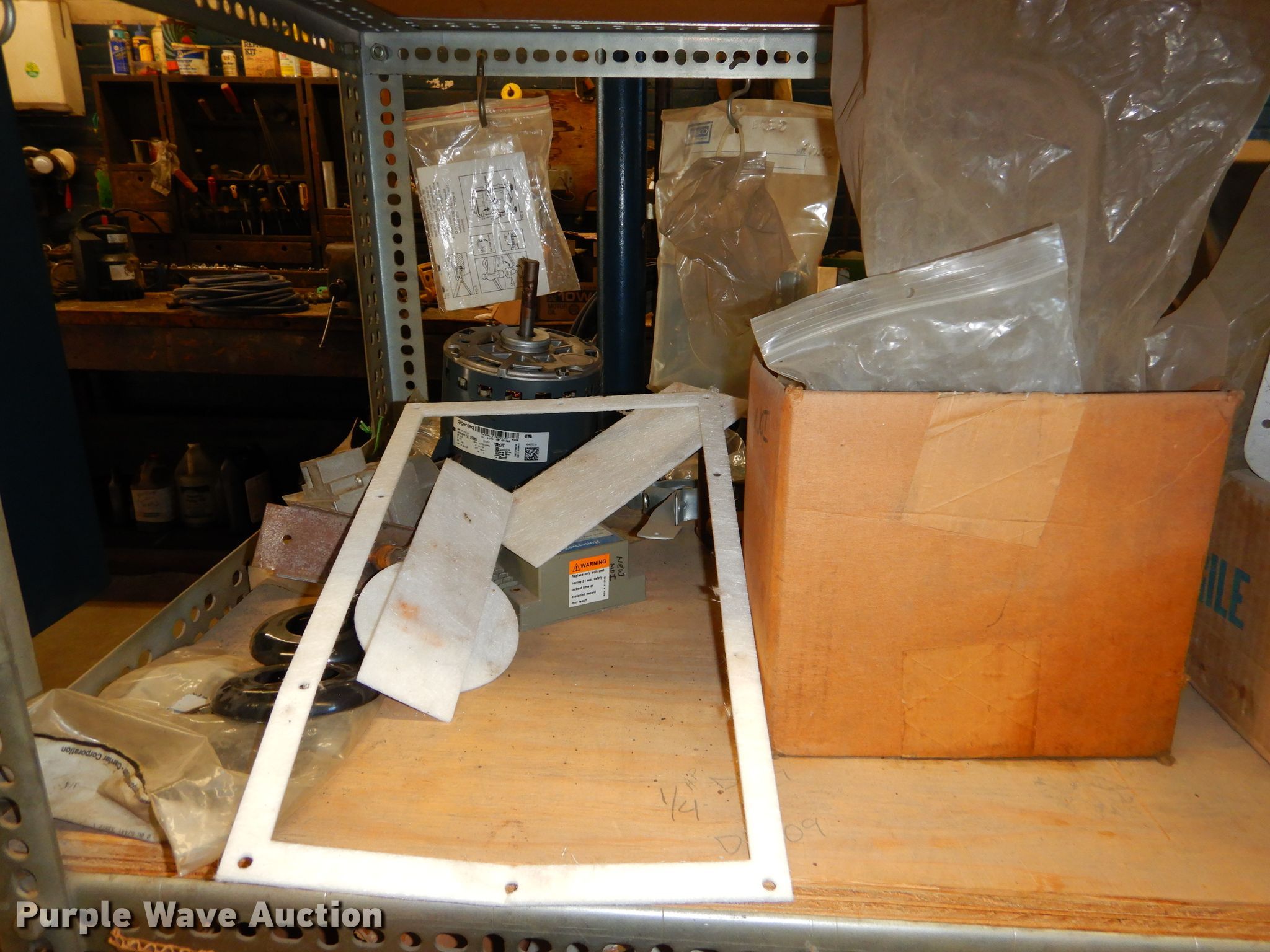 Purple Wave is selling a used Building Materials in Kansas. This item is a Electrical supplies with the following: Thermostat guards, Pneumatic stats and controls, Contacts, Thermostats, Bearings, Burners, Blowers with motors, Motor assembly inducers, Fan motors, Replacement motor and blower specialist, Split phase motors, Direct-drive motors, Double shaft motors, Freeze guards, Limit controls, Manifold gas valves, Repair kits, Valve bodies, Furnace igniters, LP kits, Breakers, Gas valves, Timers, Capacitors, Power blocks, Pressure gauges, Repair parts, Impellars, Wood shelving, Steel rack and more, Item must be removed by December 11