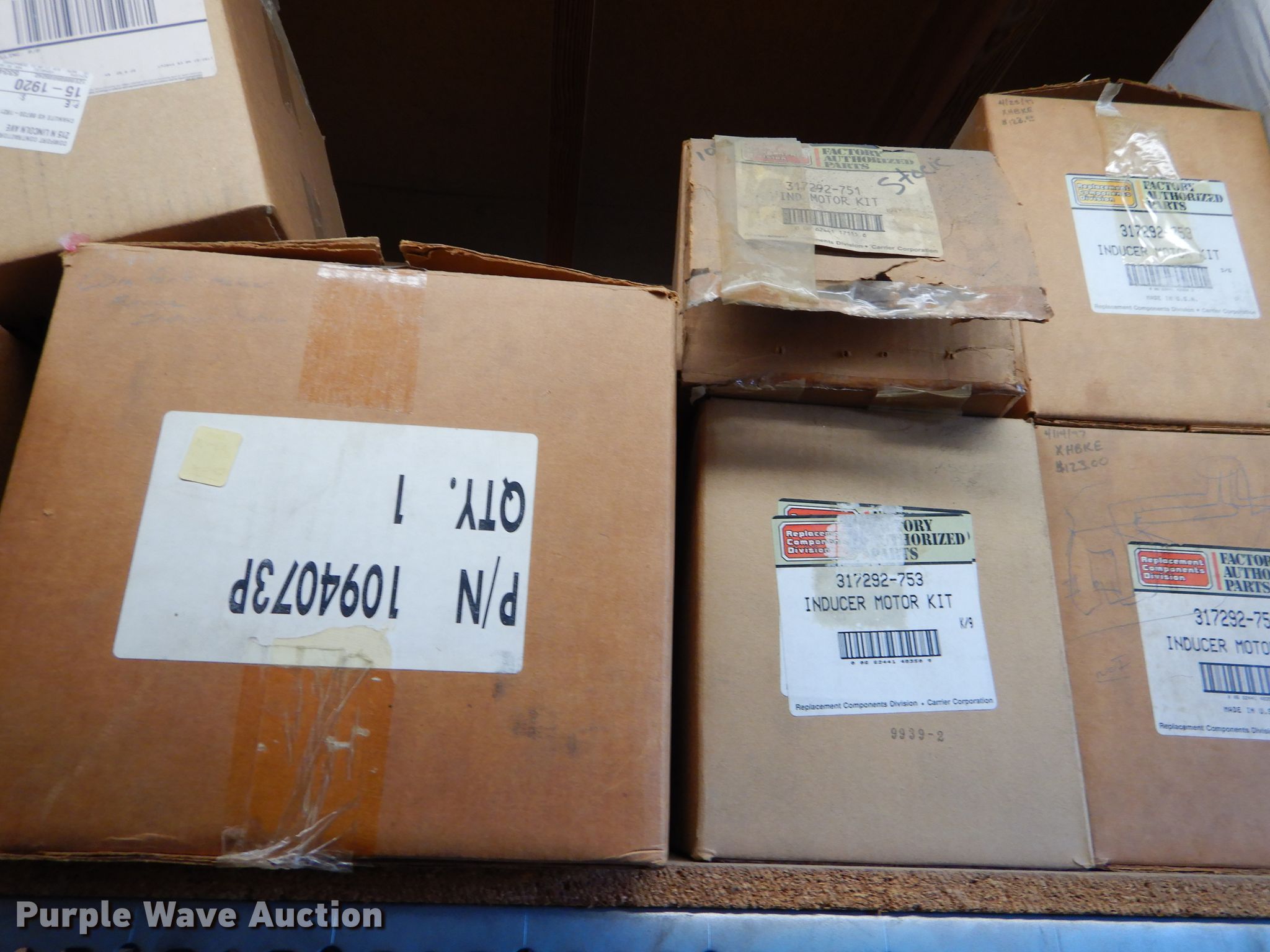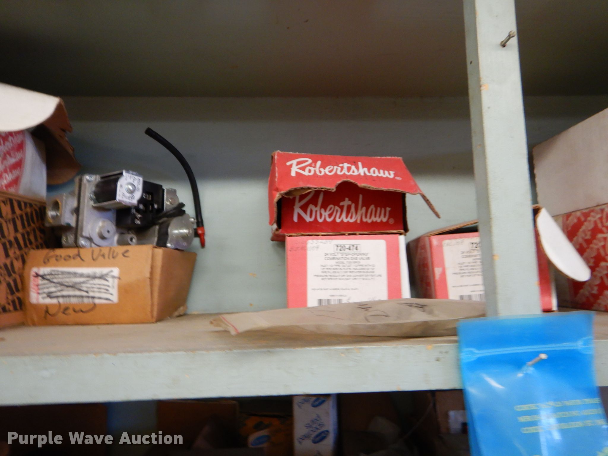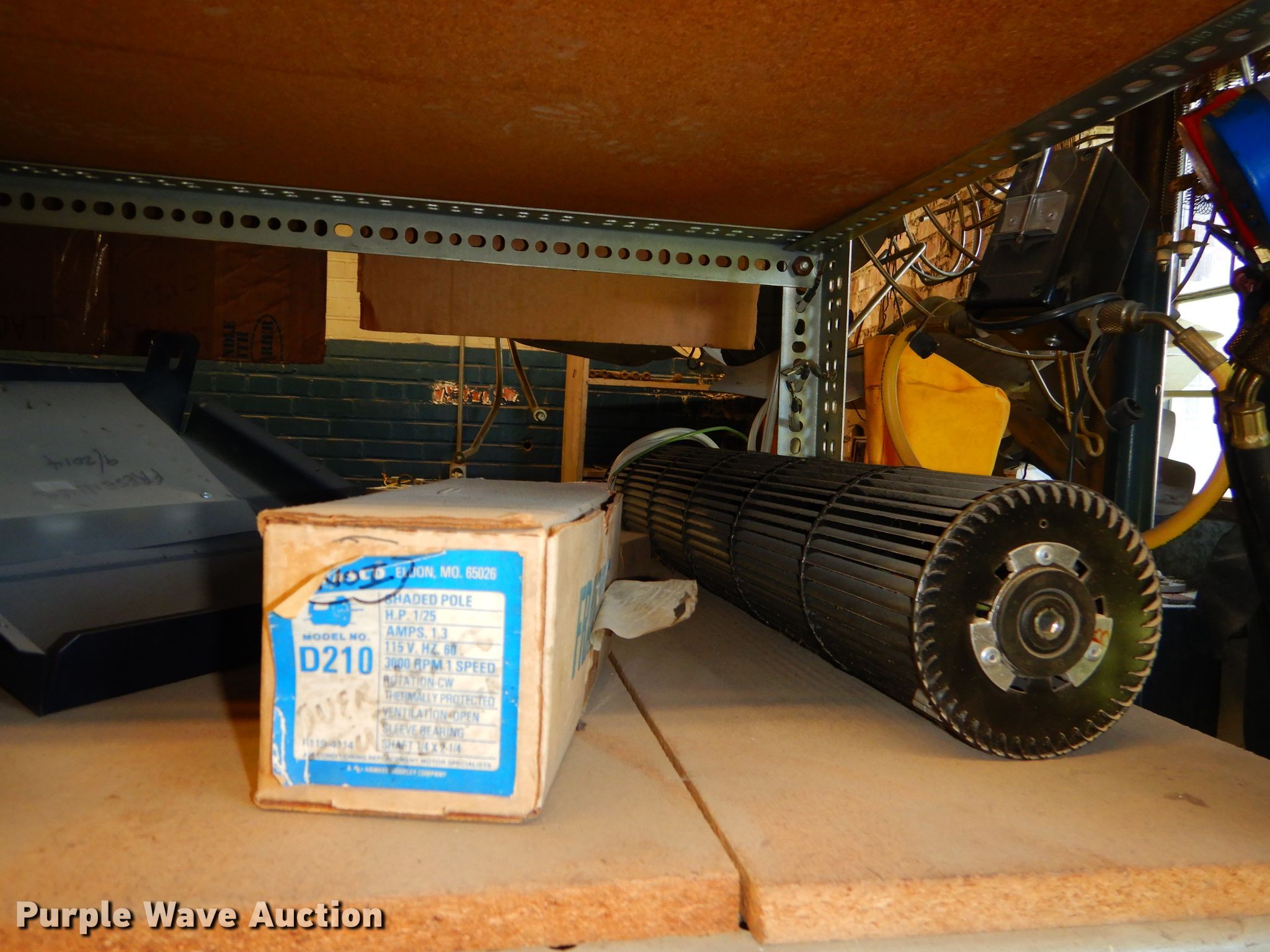 Purple Wave is selling a used Building Materials in Kansas. This item is a Electrical supplies with the following: Thermostat guards, Pneumatic stats and controls, Contacts, Thermostats, Bearings, Burners, Blowers with motors, Motor assembly inducers, Fan motors, Replacement motor and blower specialist, Split phase motors, Direct-drive motors, Double shaft motors, Freeze guards, Limit controls, Manifold gas valves, Repair kits, Valve bodies, Furnace igniters, LP kits, Breakers, Gas valves, Timers, Capacitors, Power blocks, Pressure gauges, Repair parts, Impellars, Wood shelving, Steel rack and more, Item must be removed by December 11