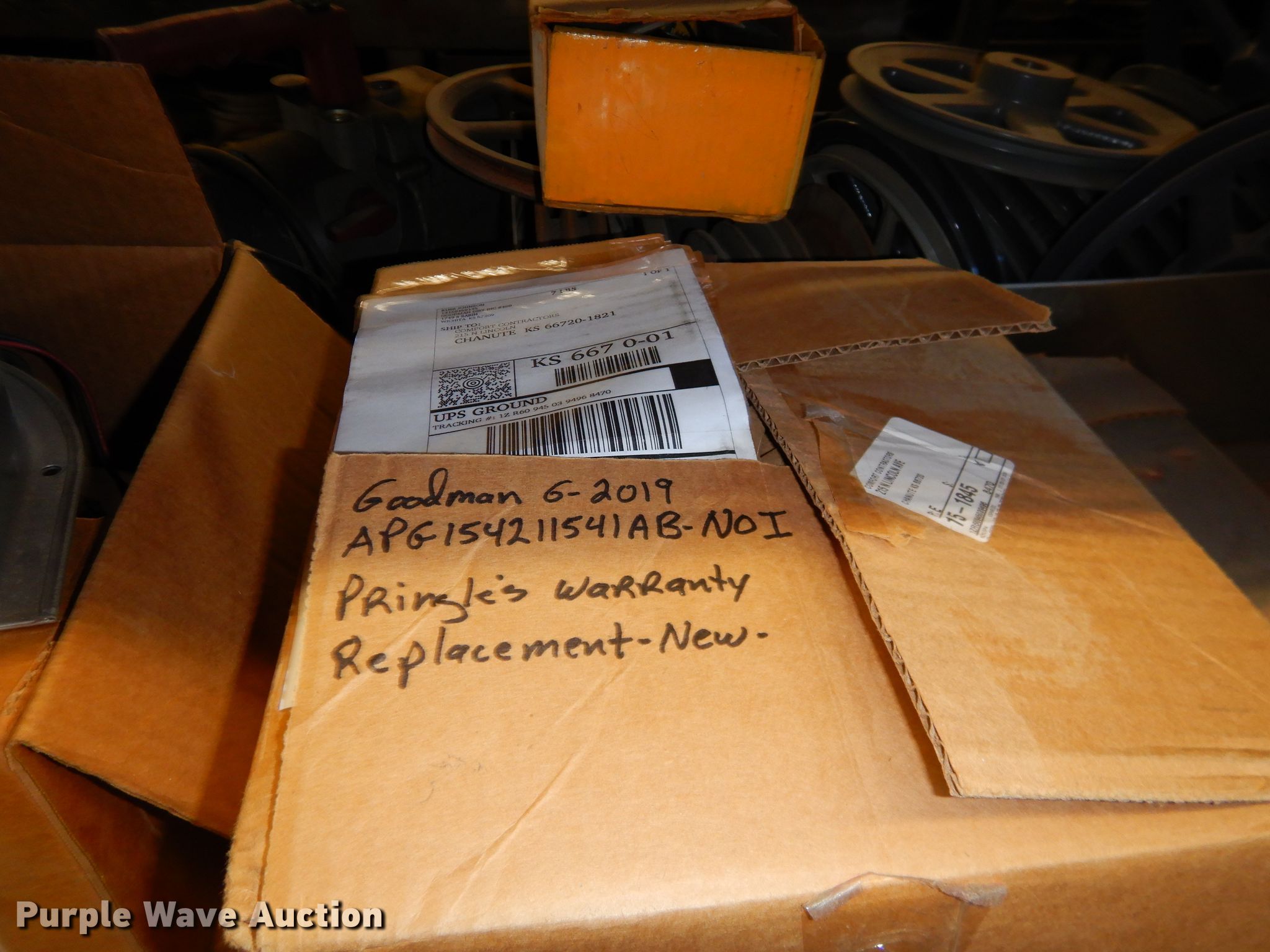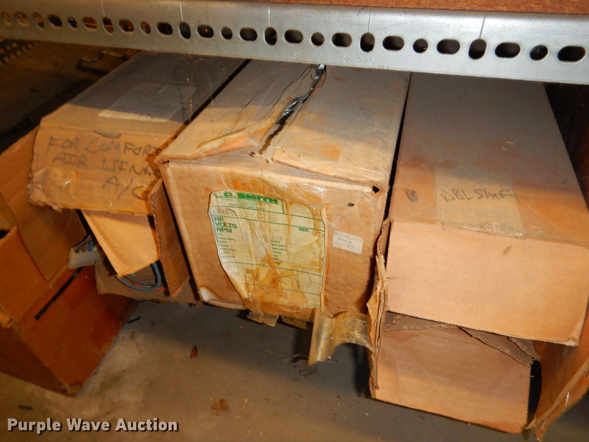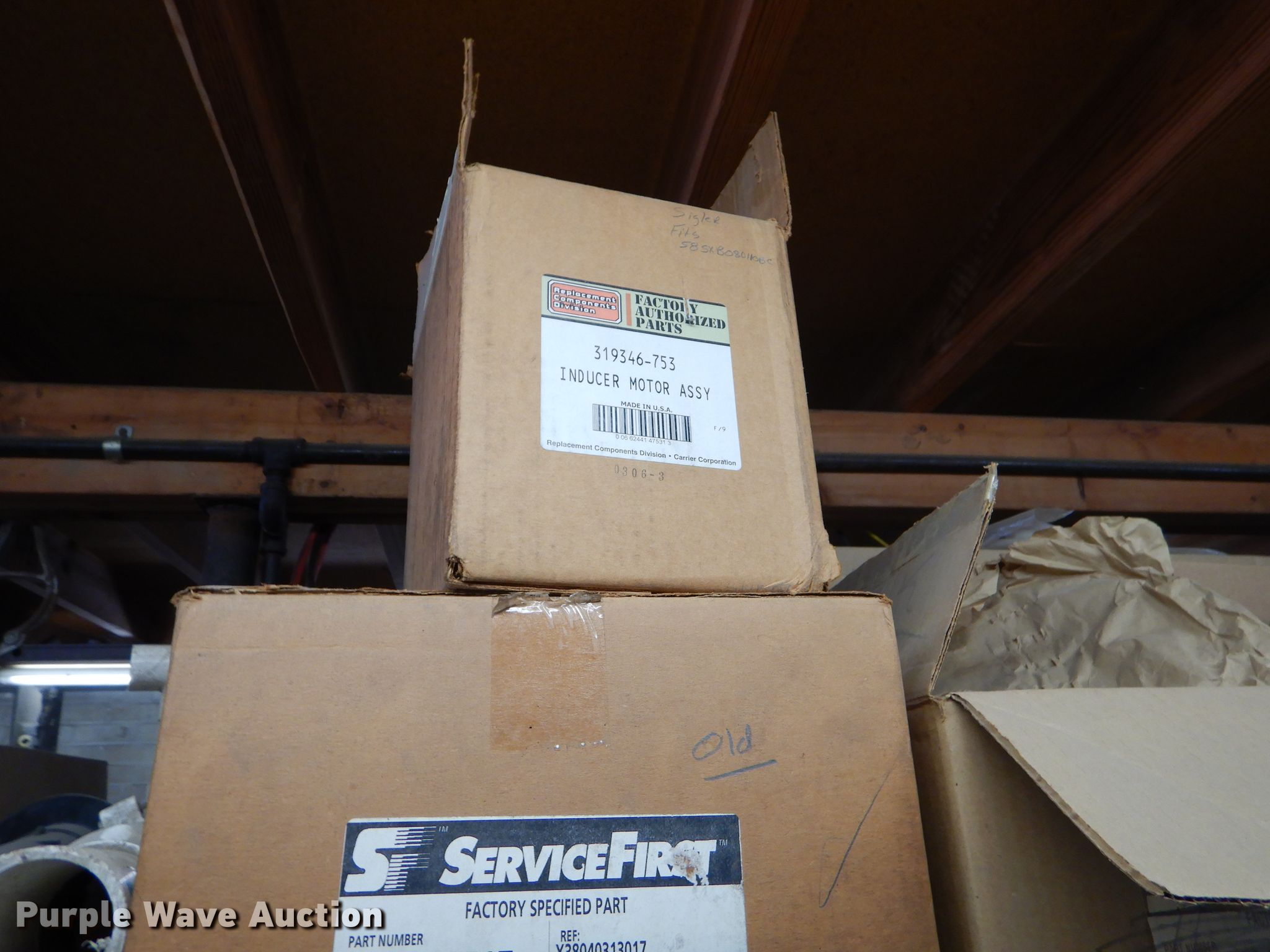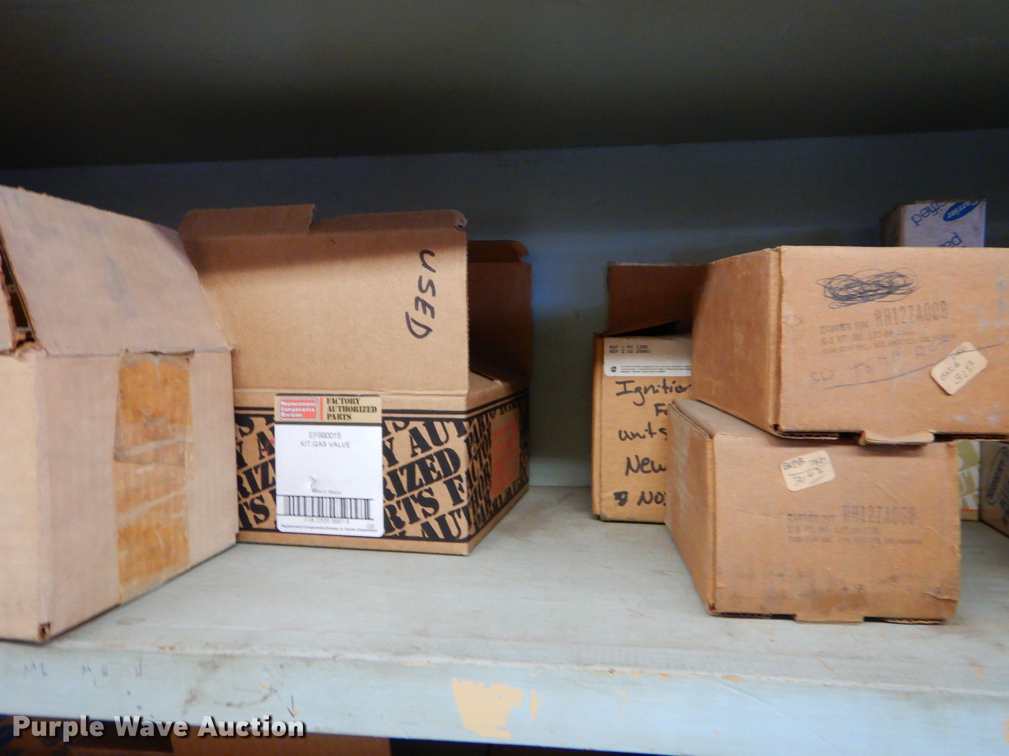 Purple Wave is selling a used Building Materials in Kansas. This item is a Electrical supplies with the following: Thermostat guards, Pneumatic stats and controls, Contacts, Thermostats, Bearings, Burners, Blowers with motors, Motor assembly inducers, Fan motors, Replacement motor and blower specialist, Split phase motors, Direct-drive motors, Double shaft motors, Freeze guards, Limit controls, Manifold gas valves, Repair kits, Valve bodies, Furnace igniters, LP kits, Breakers, Gas valves, Timers, Capacitors, Power blocks, Pressure gauges, Repair parts, Impellars, Wood shelving, Steel rack and more, Item must be removed by December 11