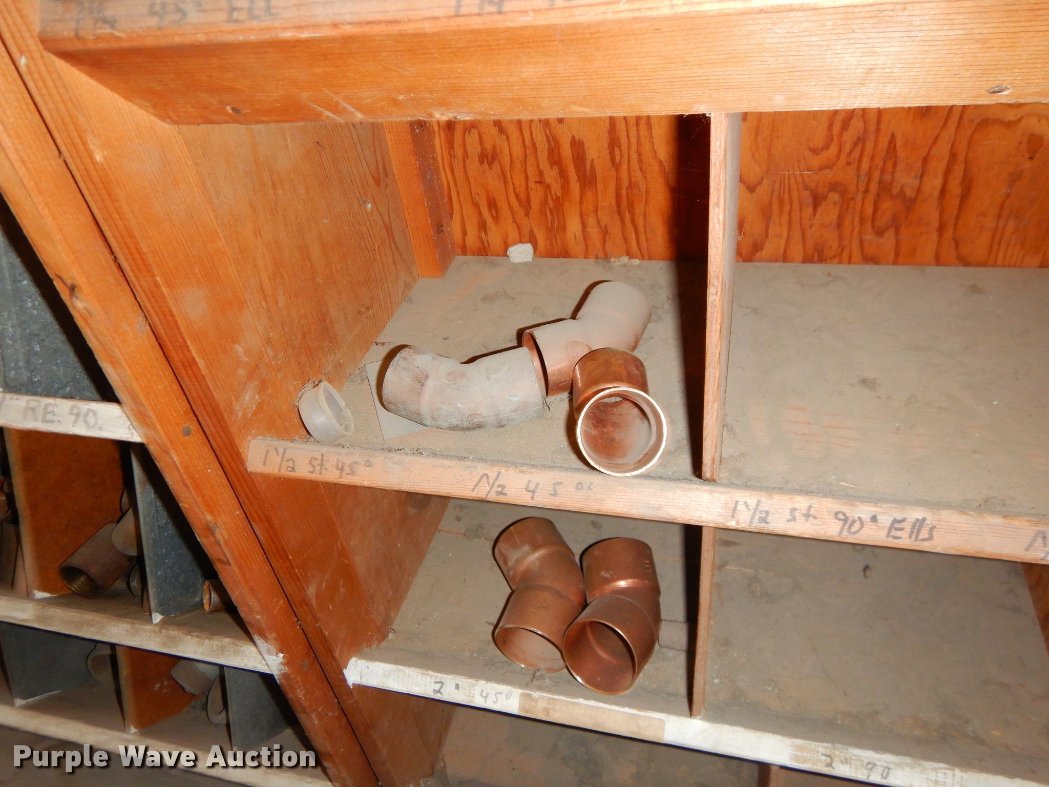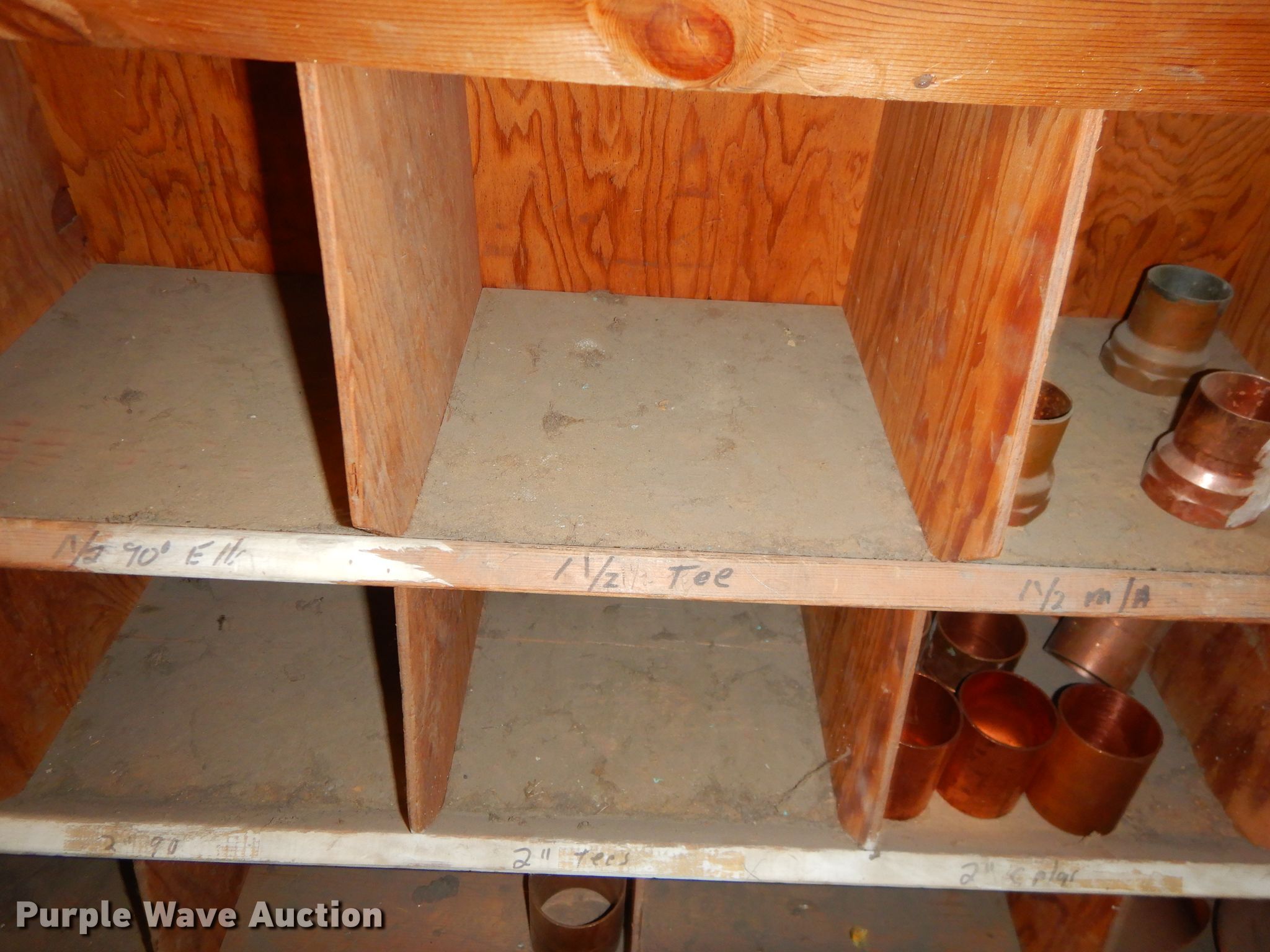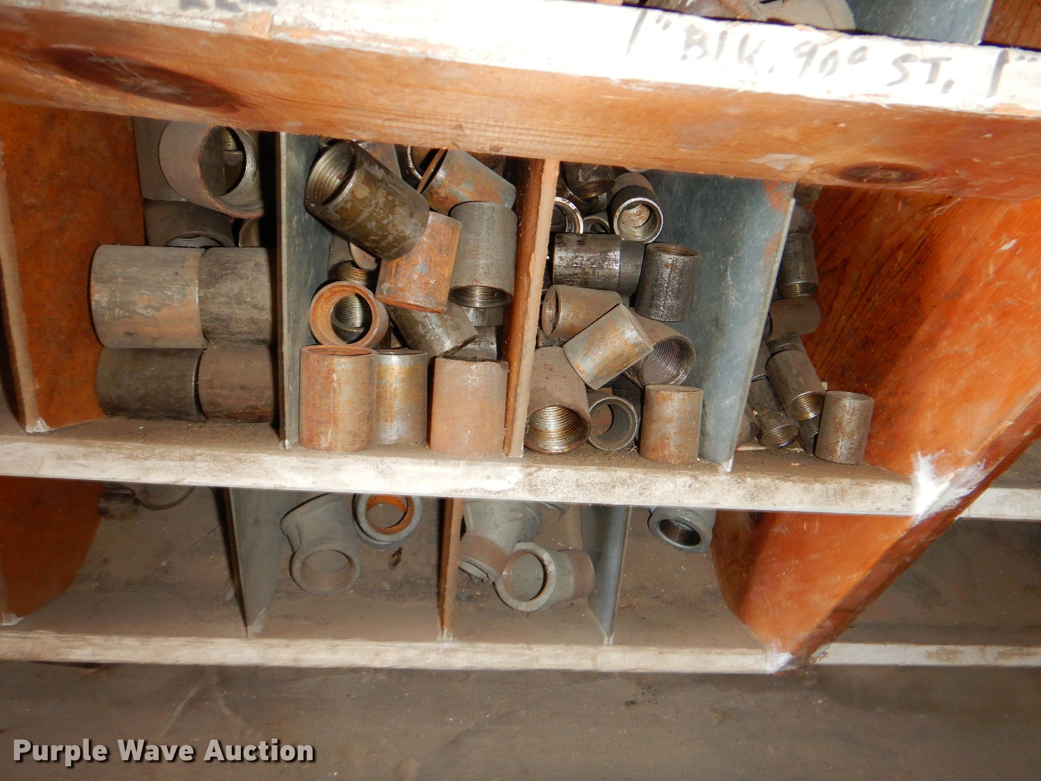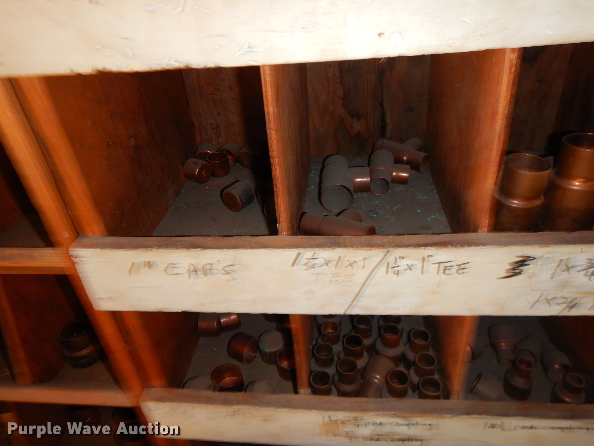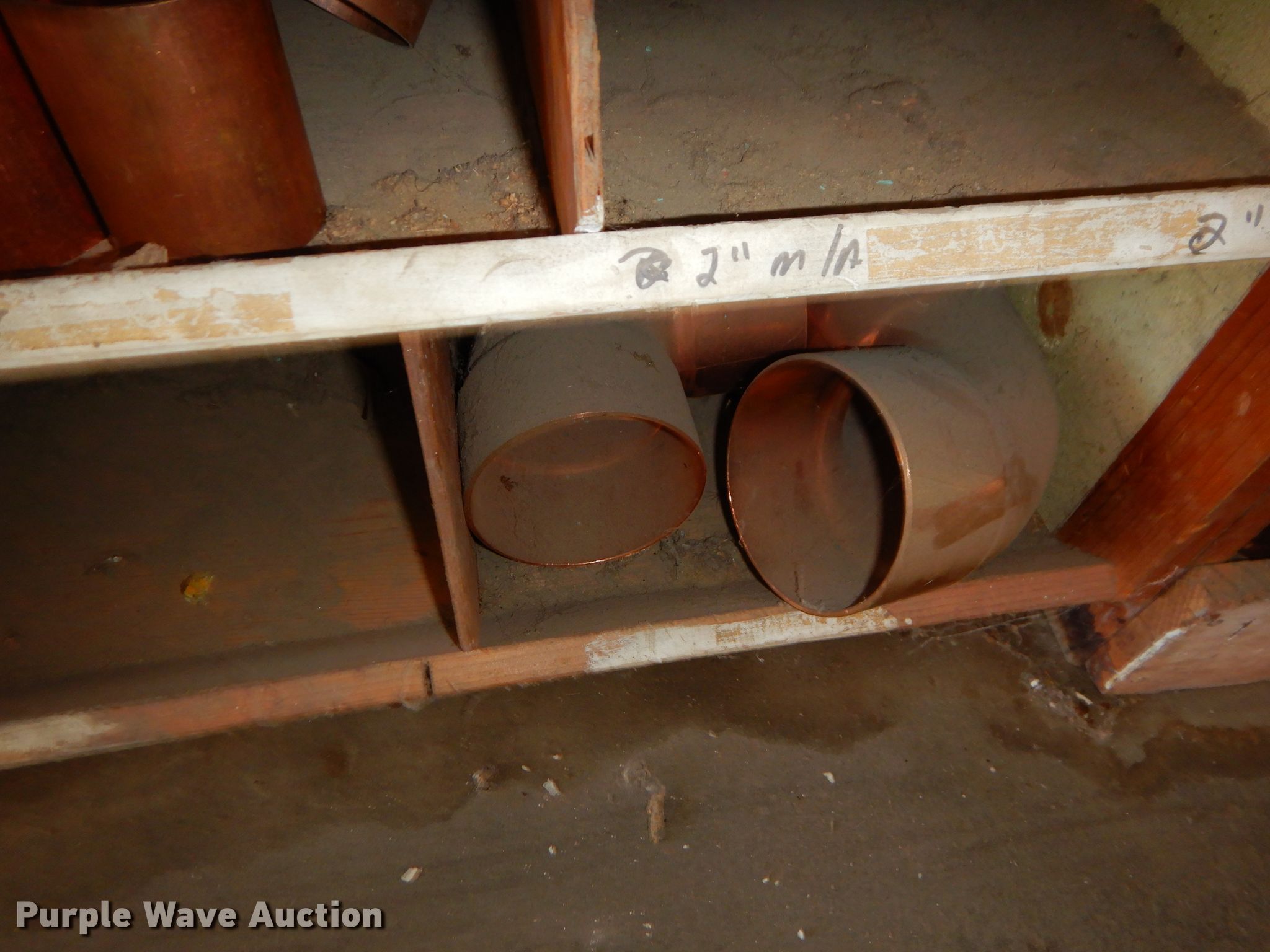 Purple Wave is selling a used Pipe in Kansas. This item is a Fittings with the following: Rubber couplers, Black fittings, Galvanized fittings, Copper/brass fittings, Valves, Wood shelving and more, Item must be removed by December 11