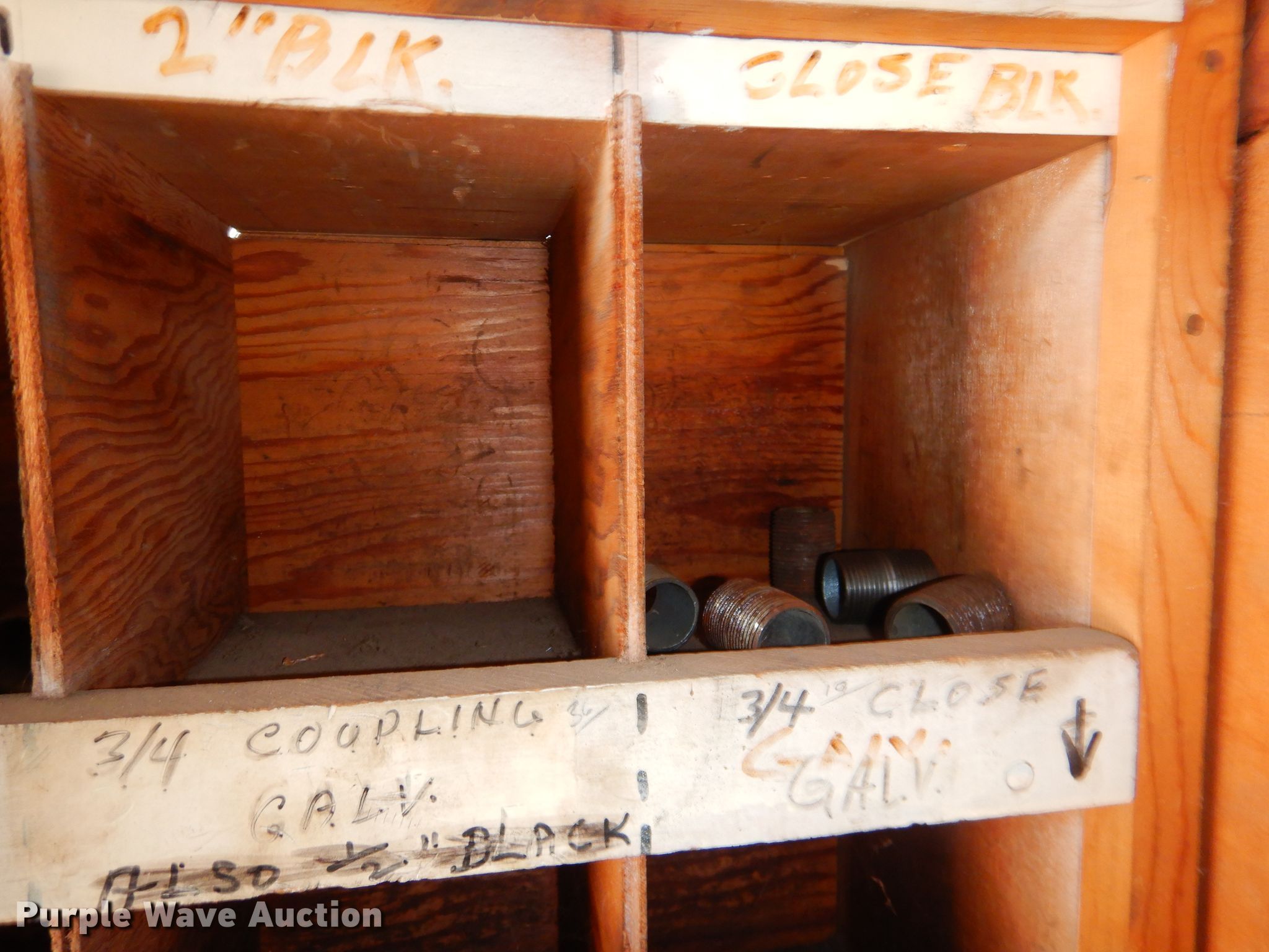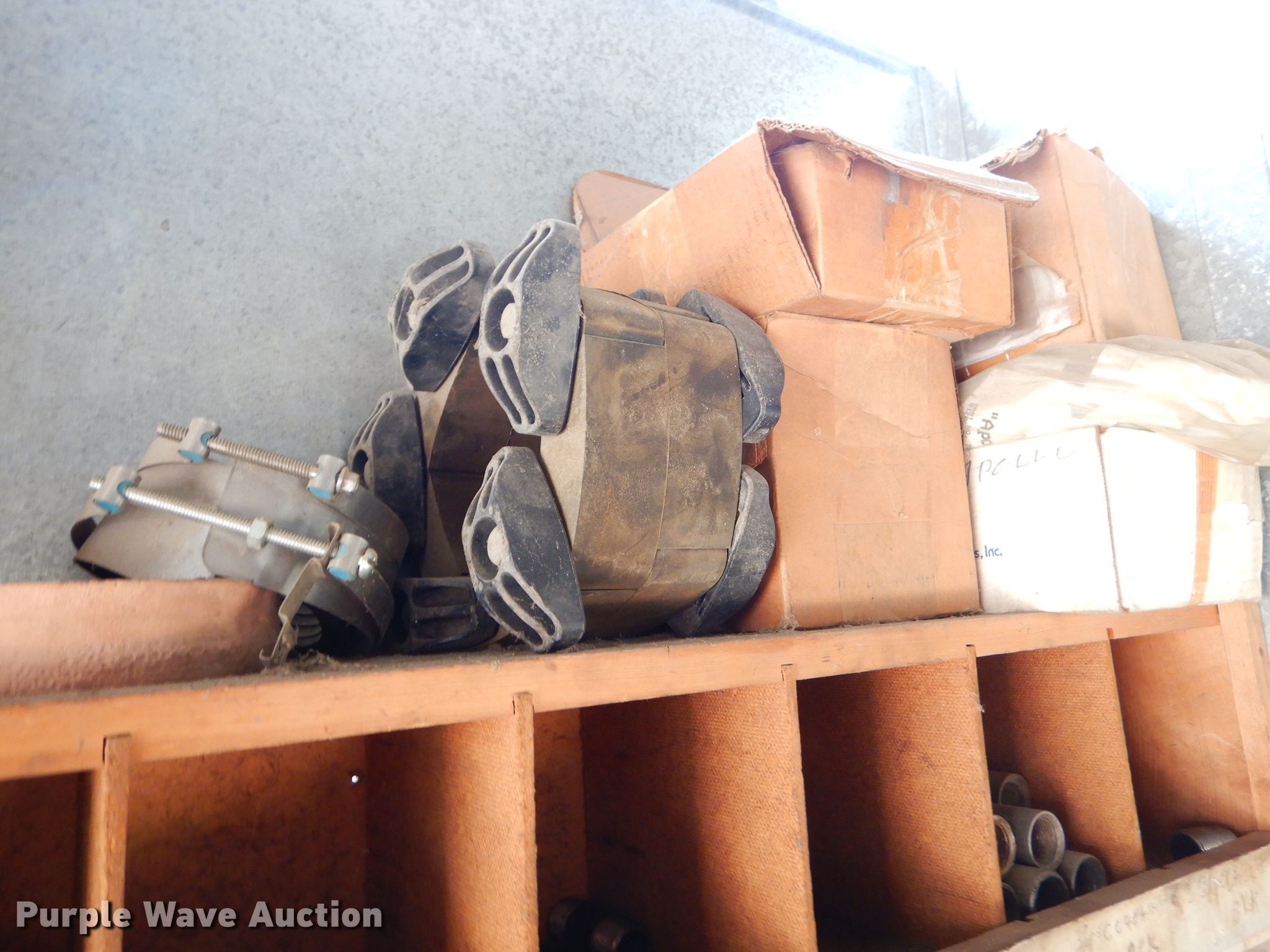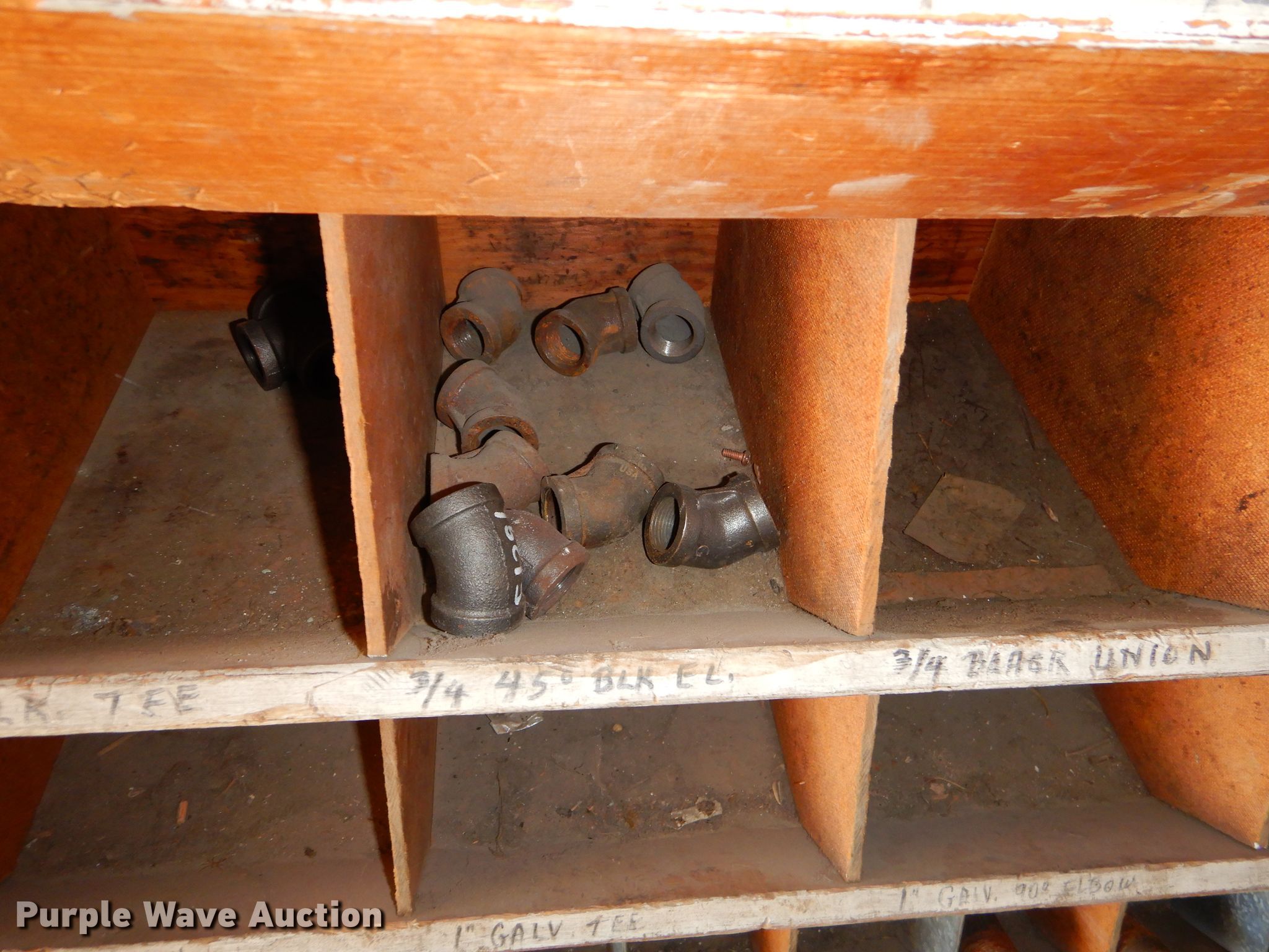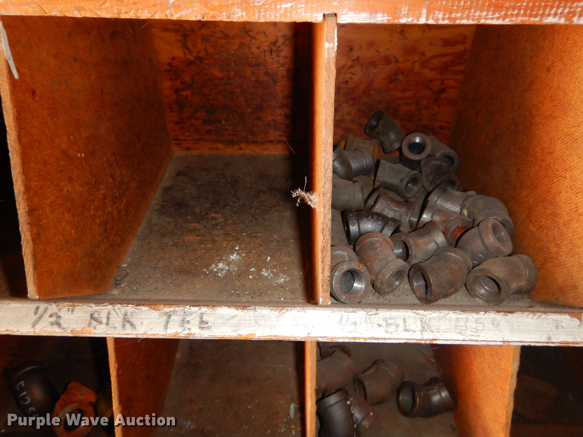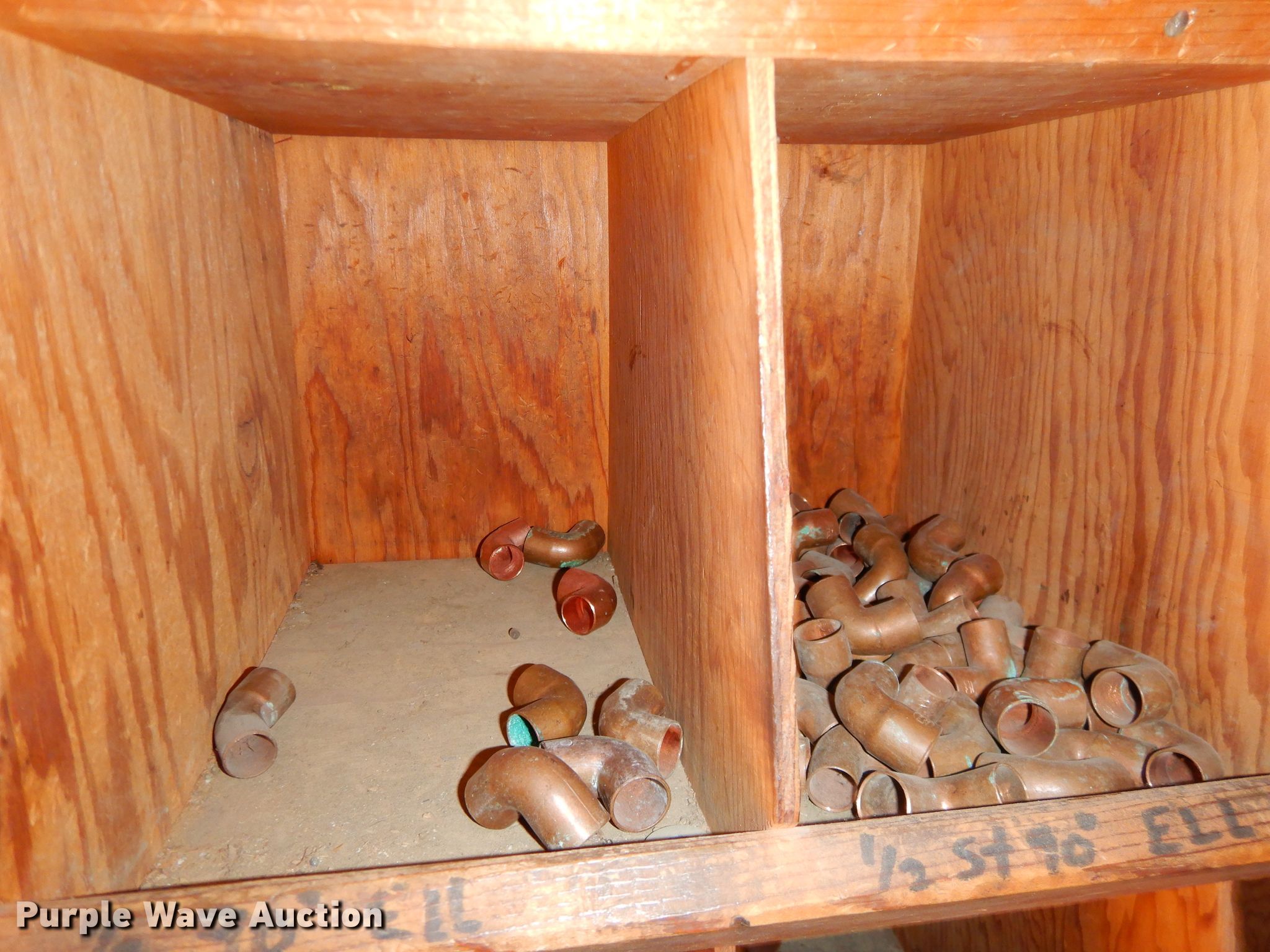 Purple Wave is selling a used Pipe in Kansas. This item is a Fittings with the following: Rubber couplers, Black fittings, Galvanized fittings, Copper/brass fittings, Valves, Wood shelving and more, Item must be removed by December 11