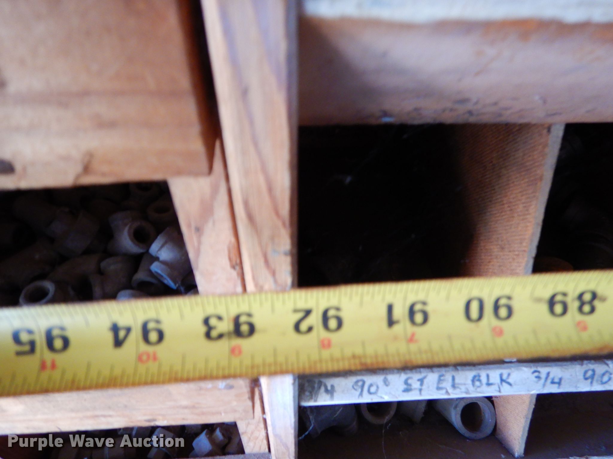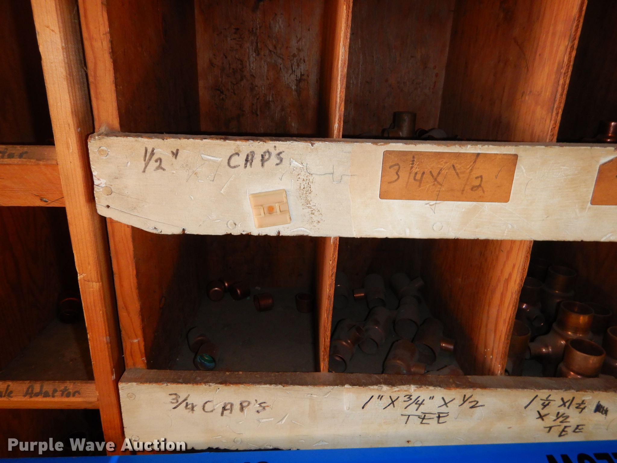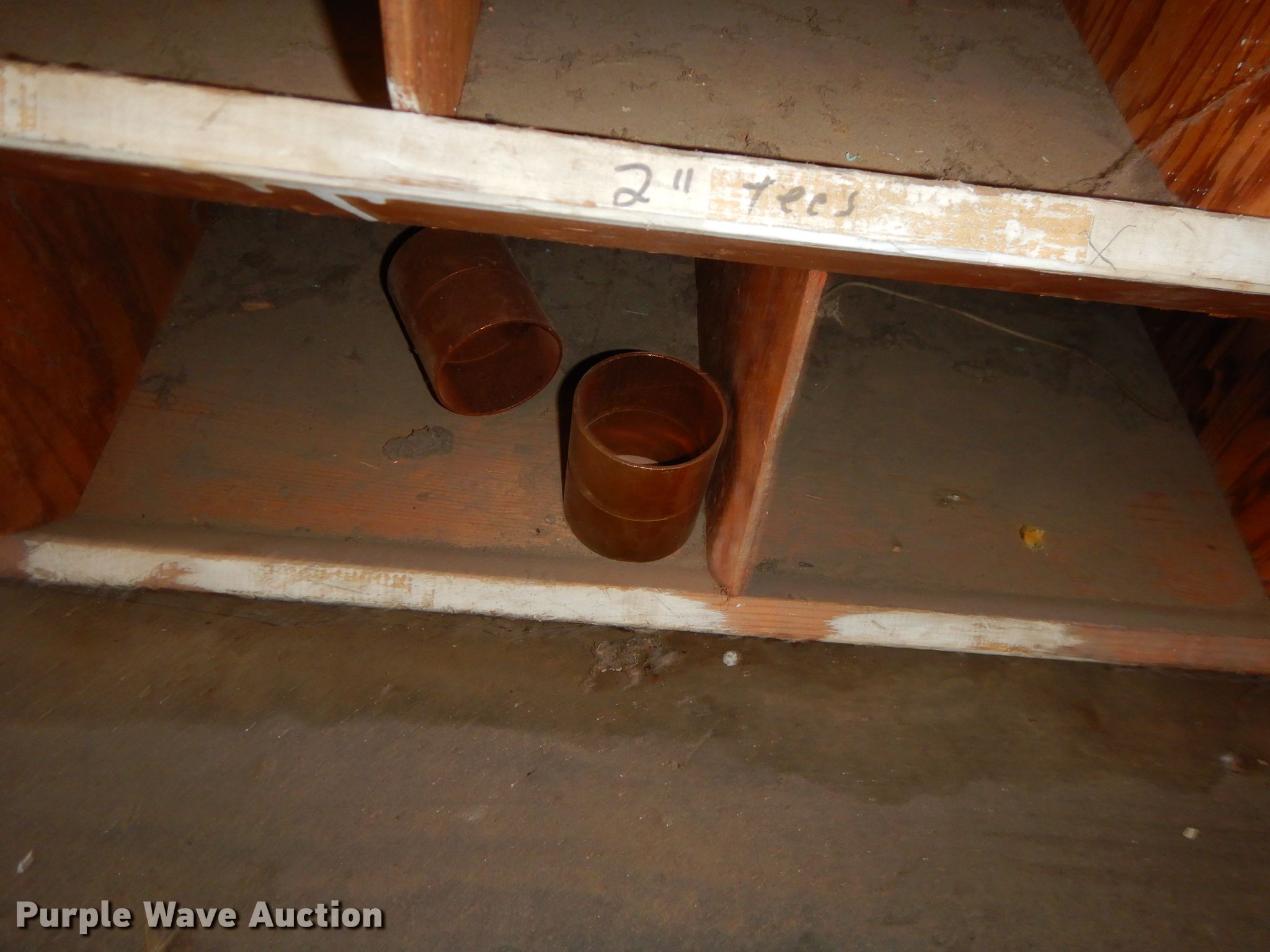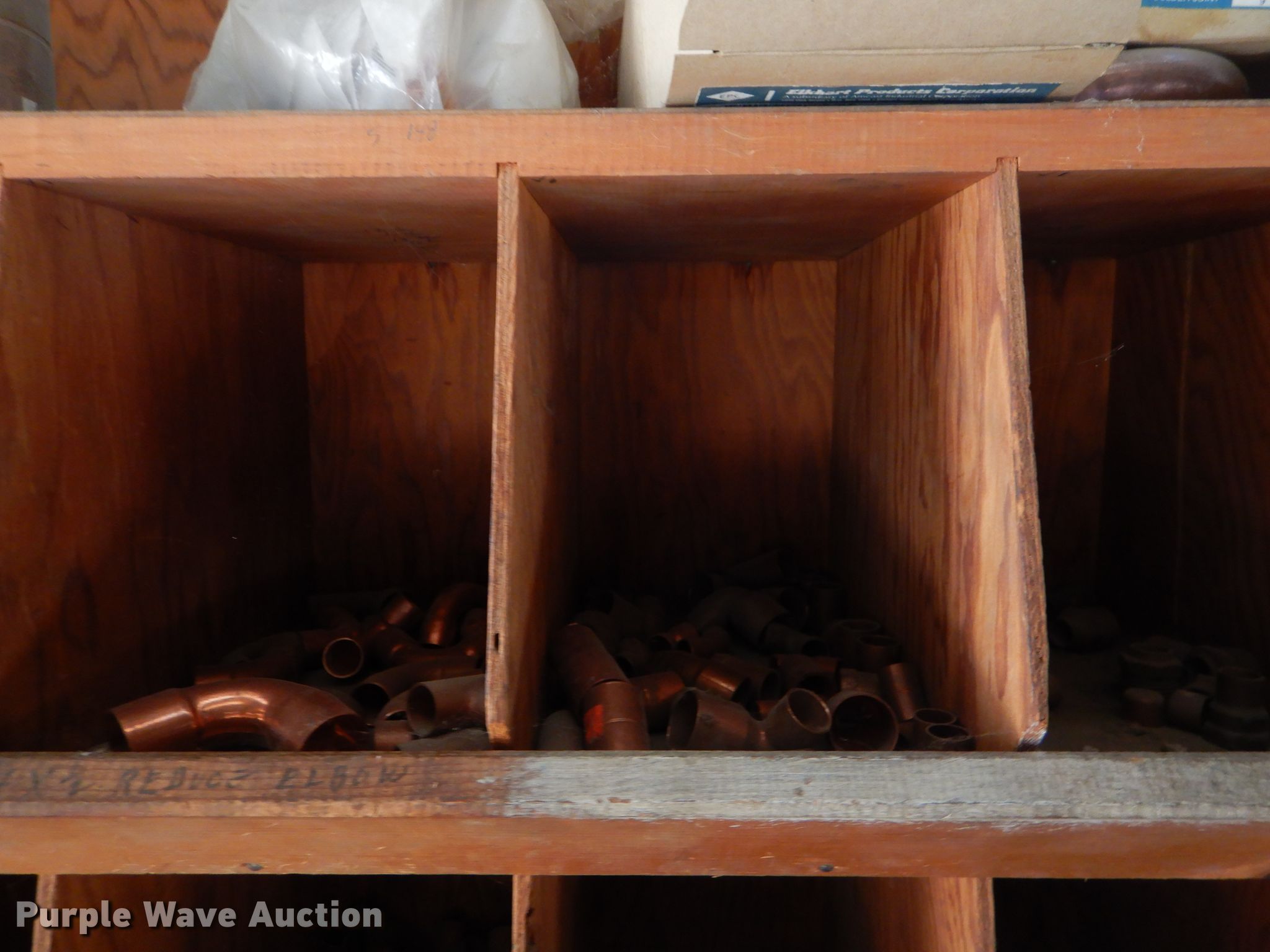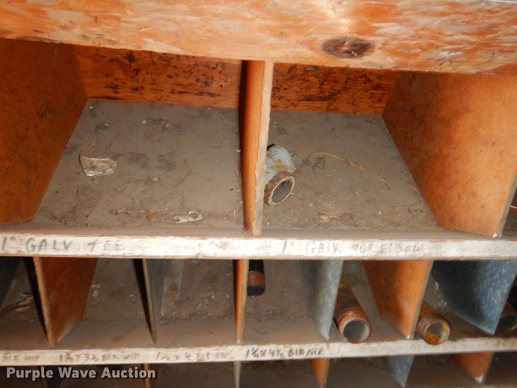 Purple Wave is selling a used Pipe in Kansas. This item is a Fittings with the following: Rubber couplers, Black fittings, Galvanized fittings, Copper/brass fittings, Valves, Wood shelving and more, Item must be removed by December 11