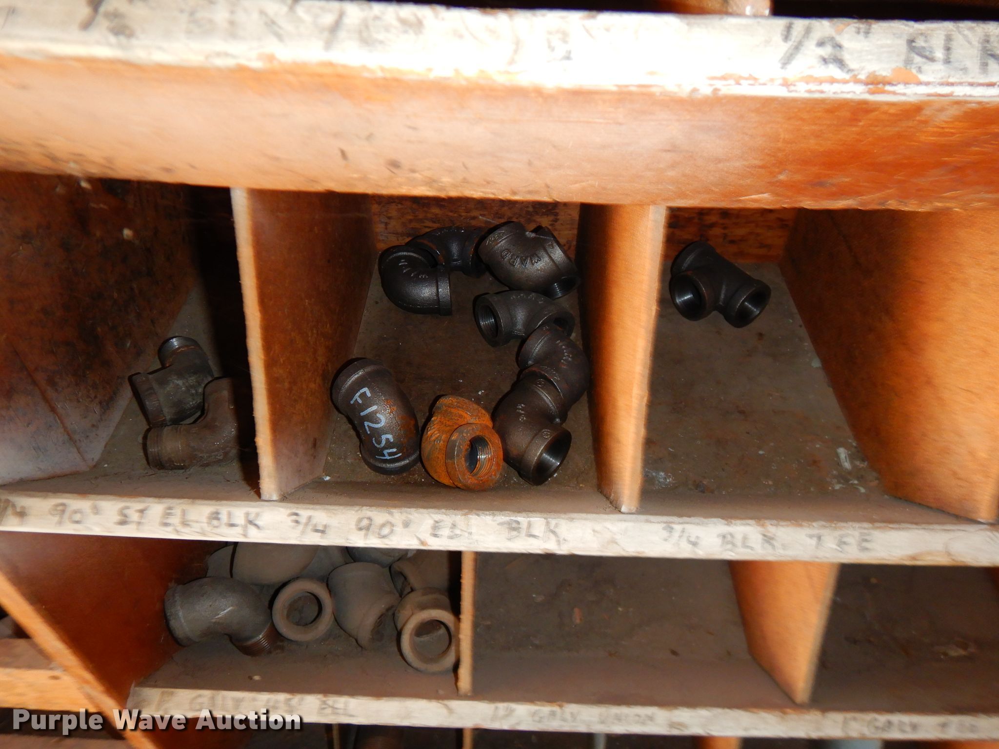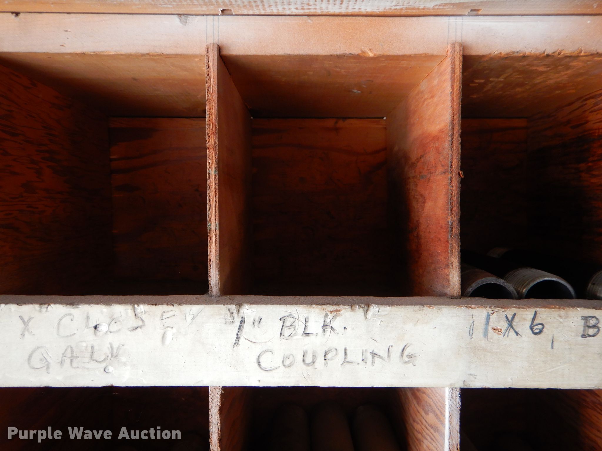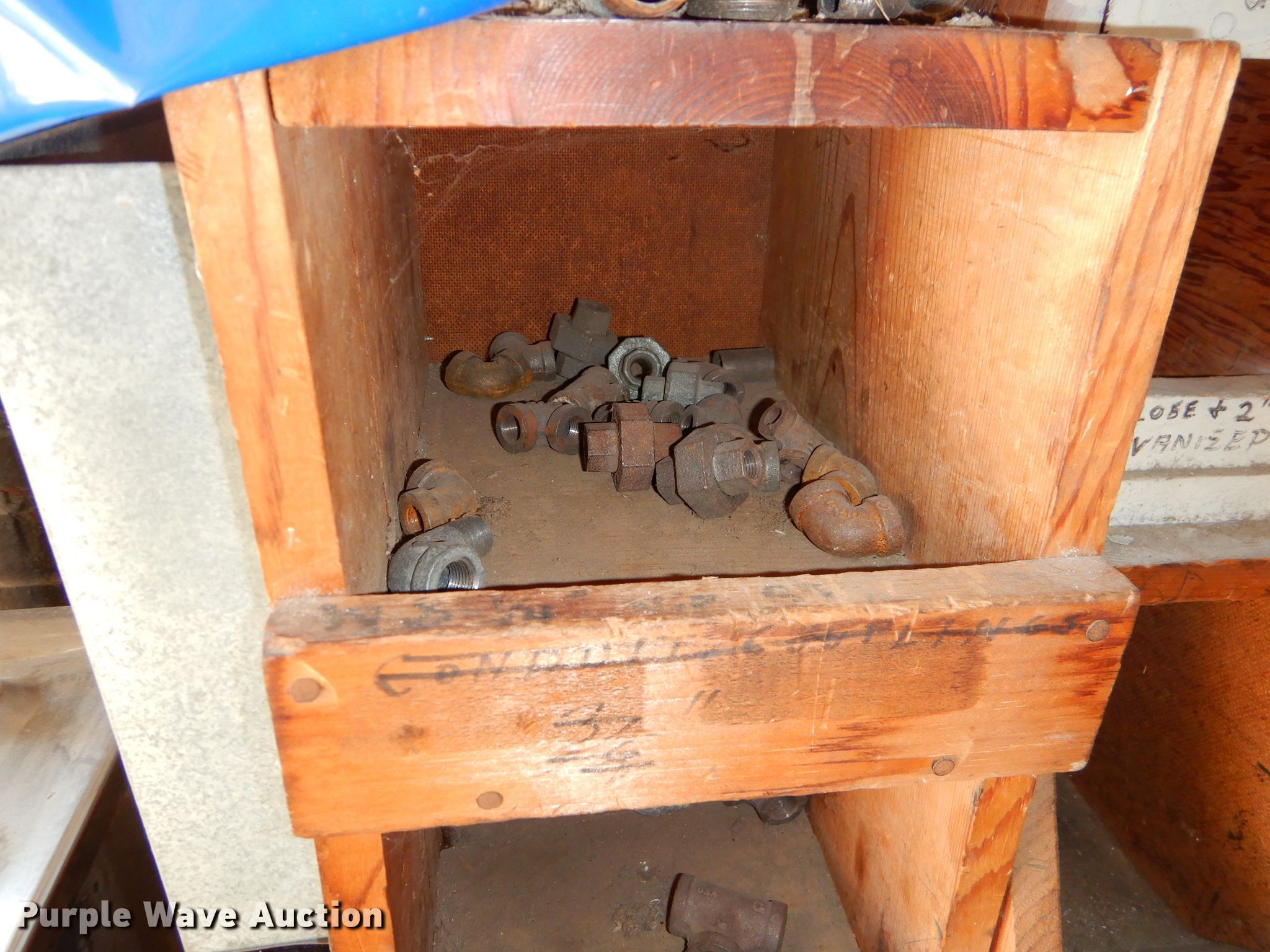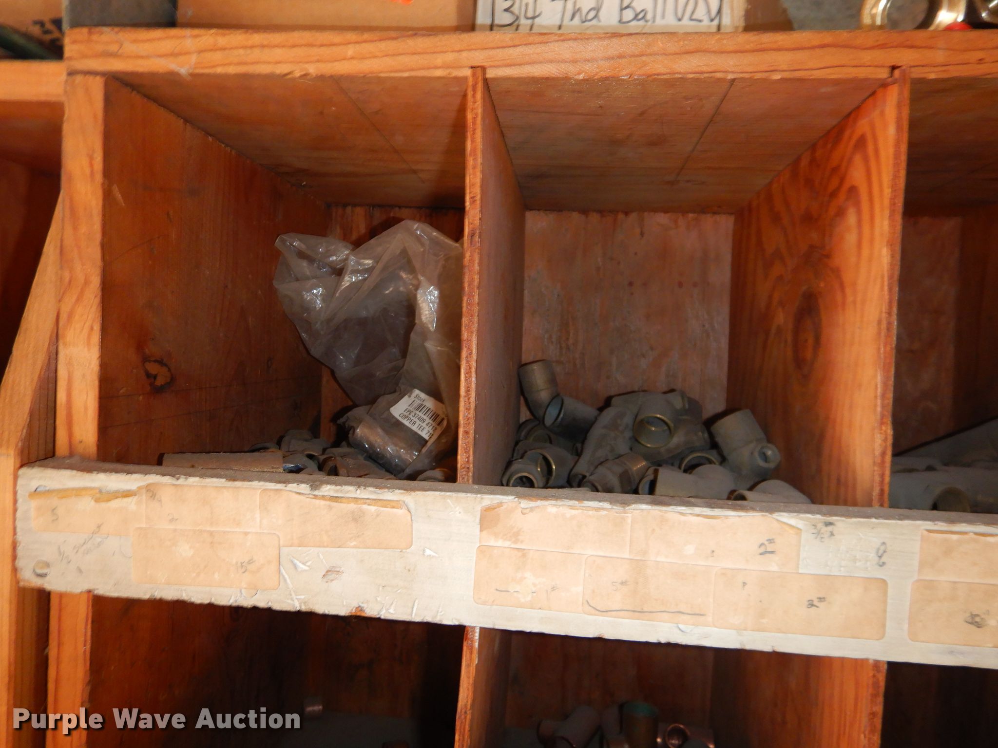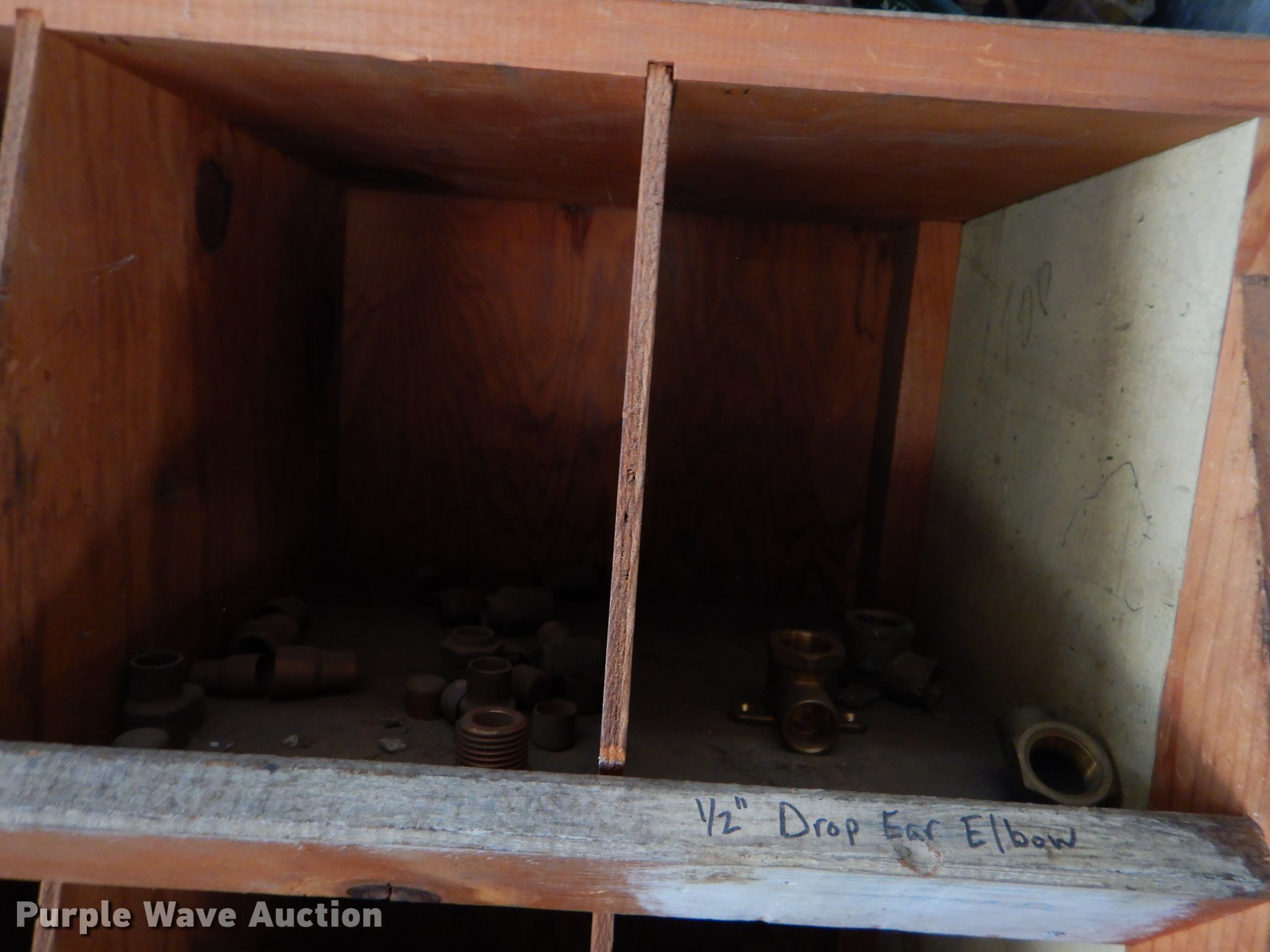 Purple Wave is selling a used Pipe in Kansas. This item is a Fittings with the following: Rubber couplers, Black fittings, Galvanized fittings, Copper/brass fittings, Valves, Wood shelving and more, Item must be removed by December 11