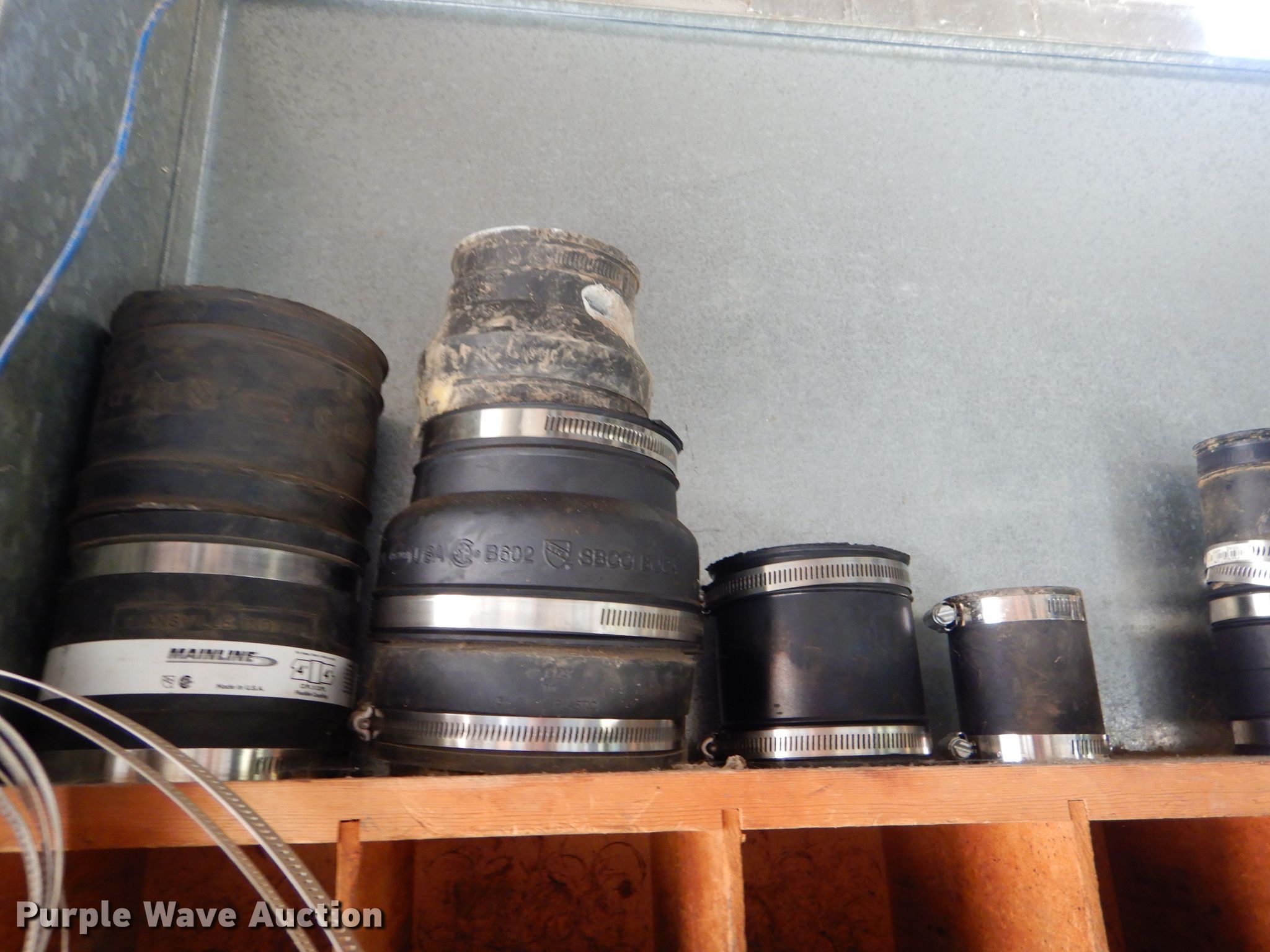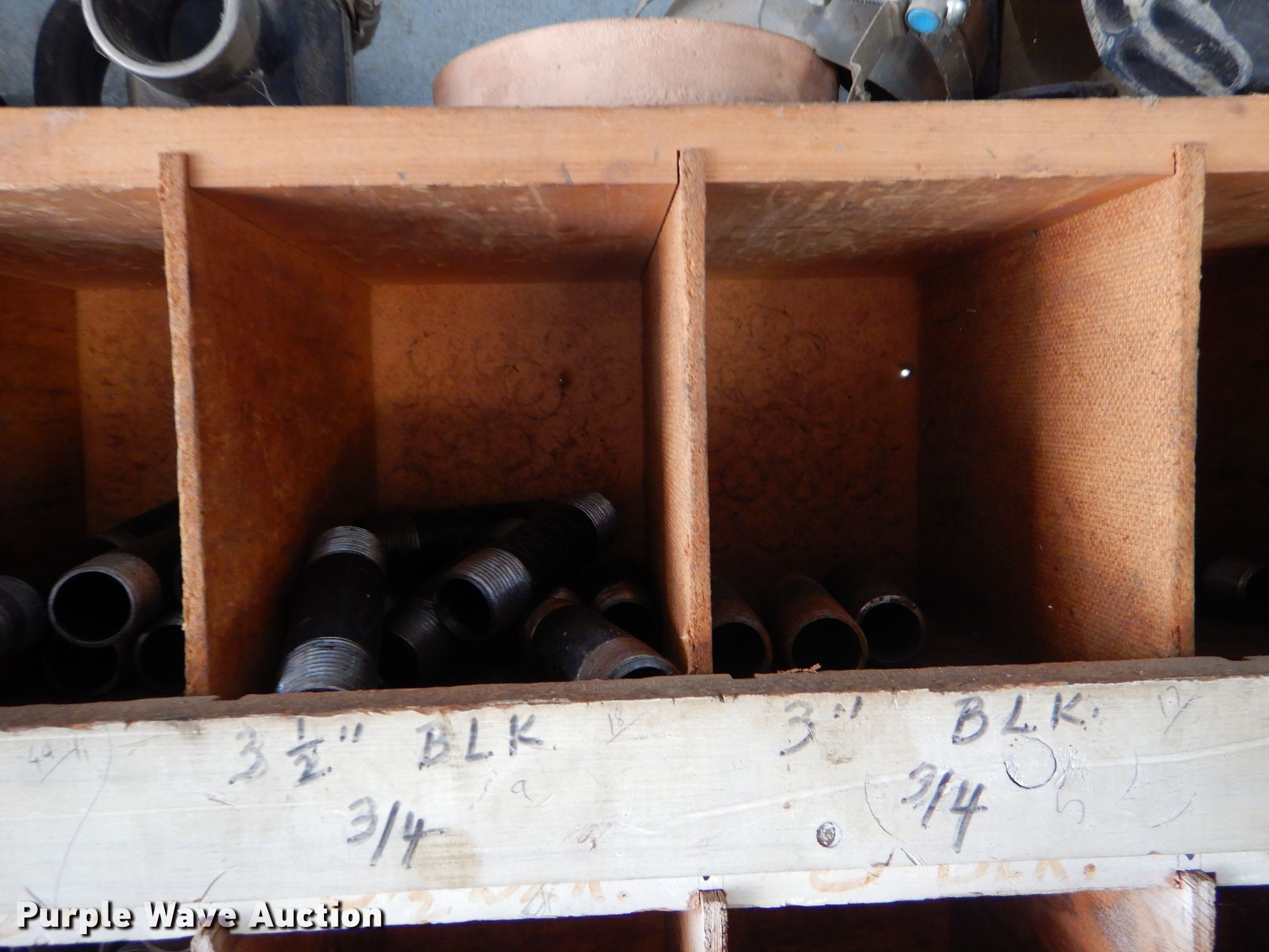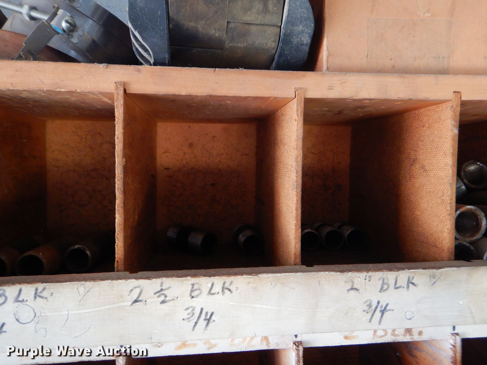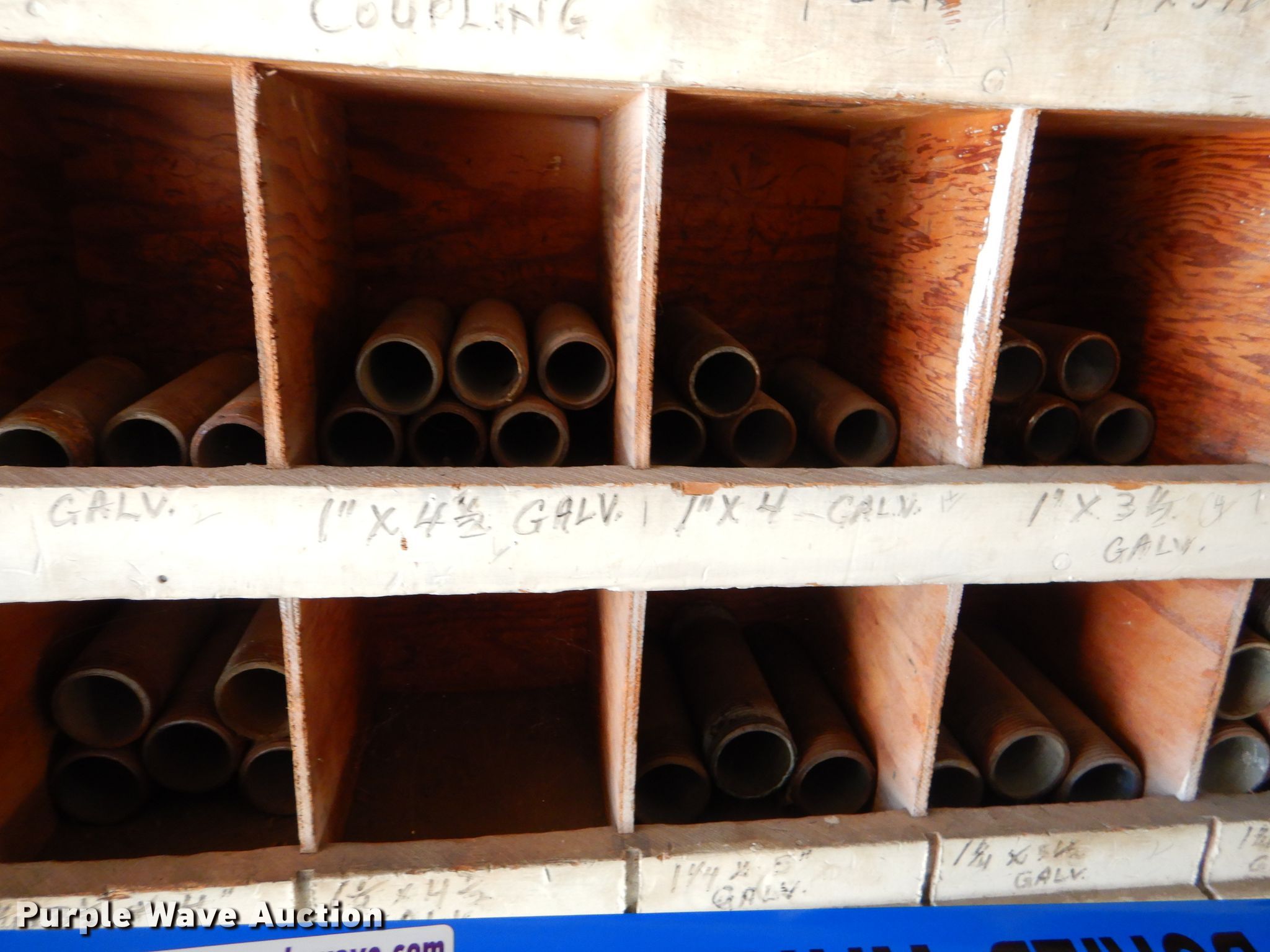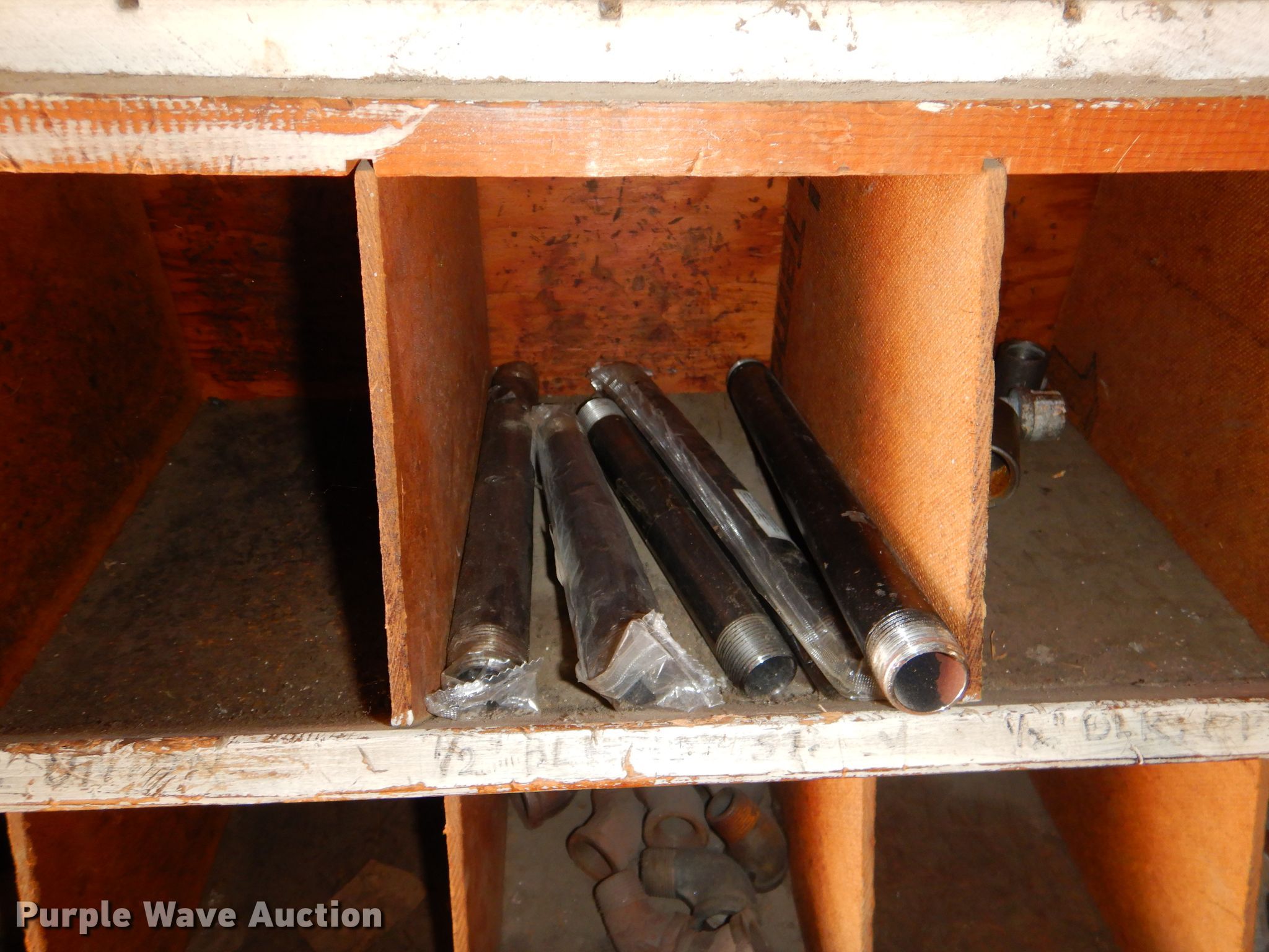 Purple Wave is selling a used Pipe in Kansas. This item is a Fittings with the following: Rubber couplers, Black fittings, Galvanized fittings, Copper/brass fittings, Valves, Wood shelving and more, Item must be removed by December 11