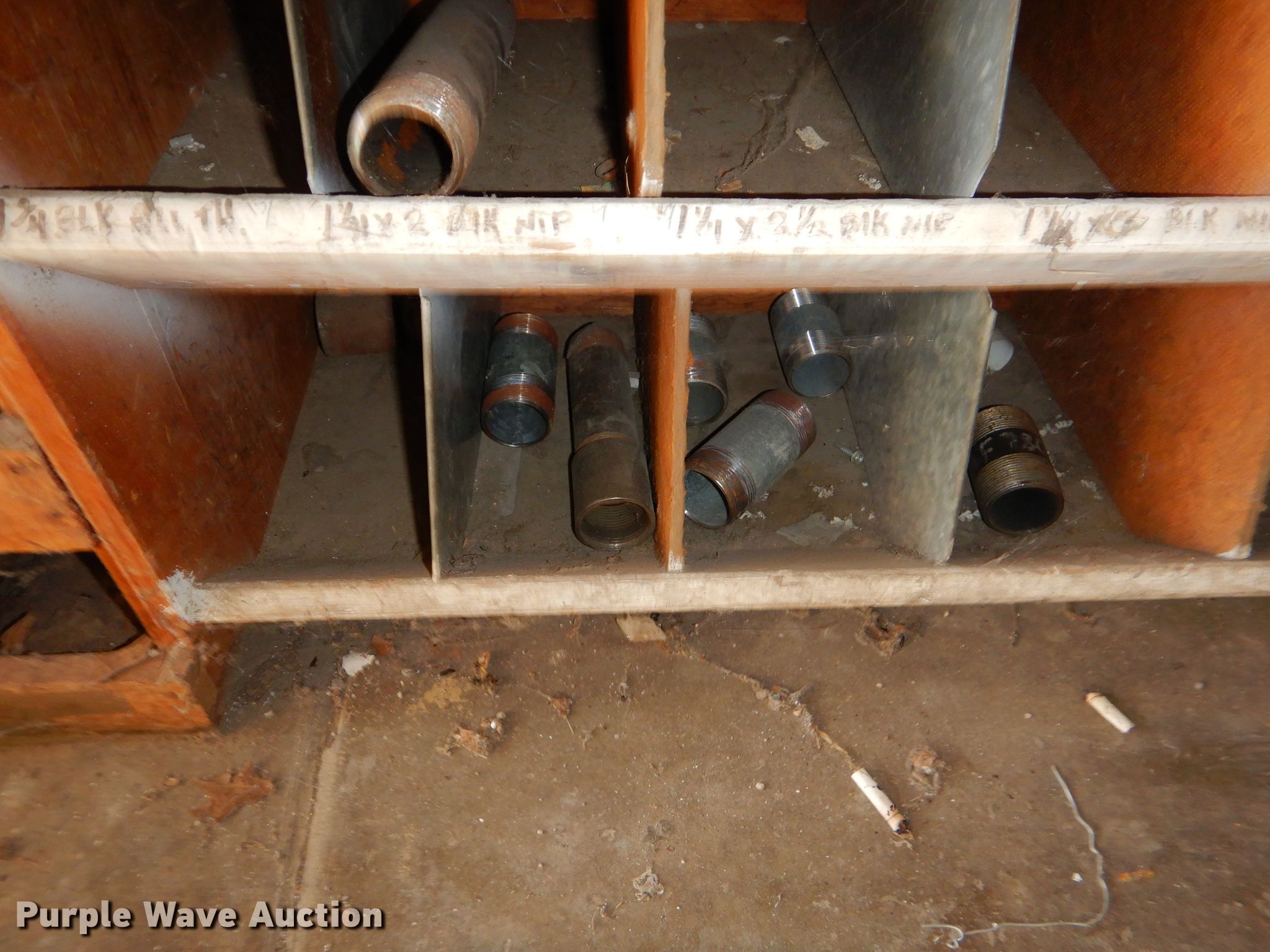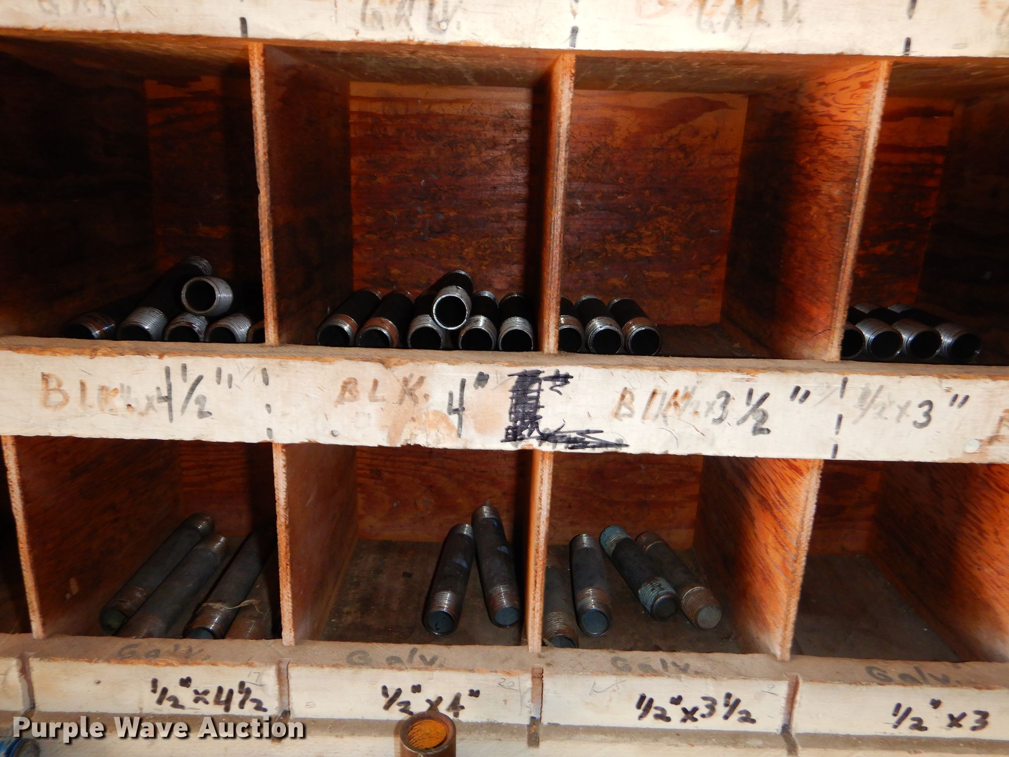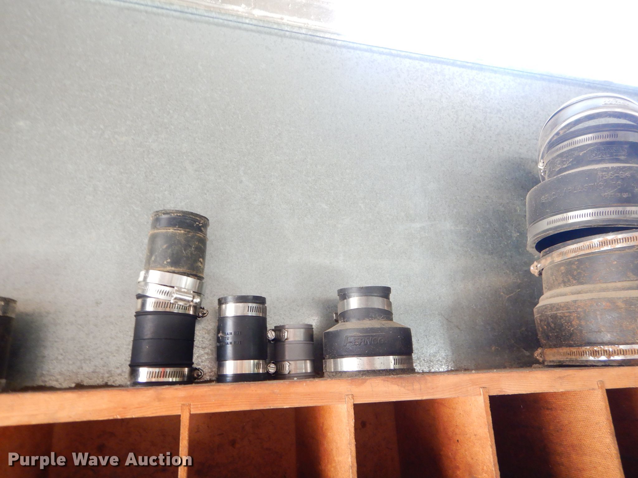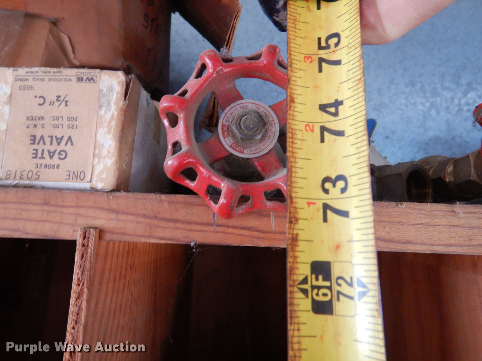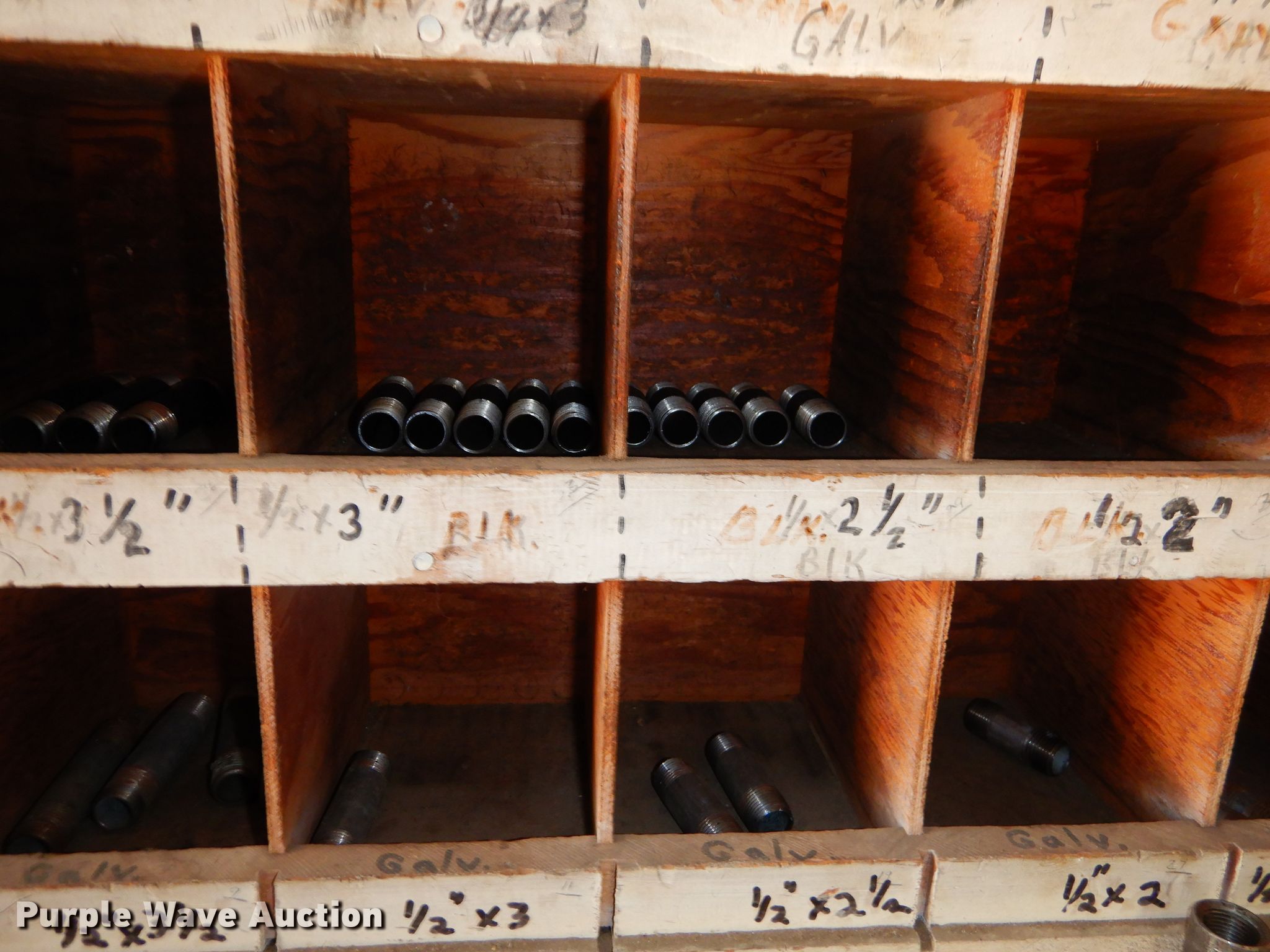 Purple Wave is selling a used Pipe in Kansas. This item is a Fittings with the following: Rubber couplers, Black fittings, Galvanized fittings, Copper/brass fittings, Valves, Wood shelving and more, Item must be removed by December 11