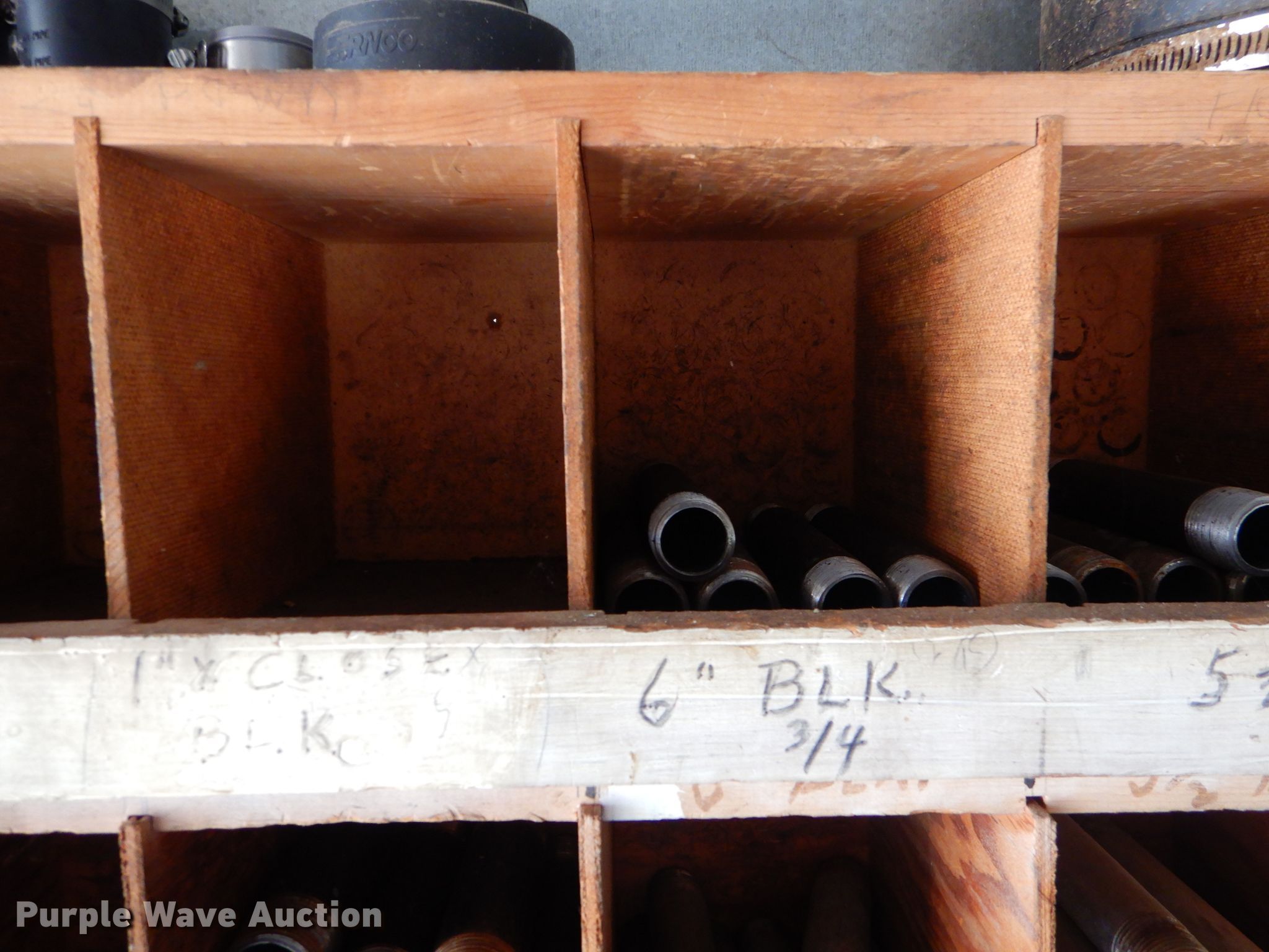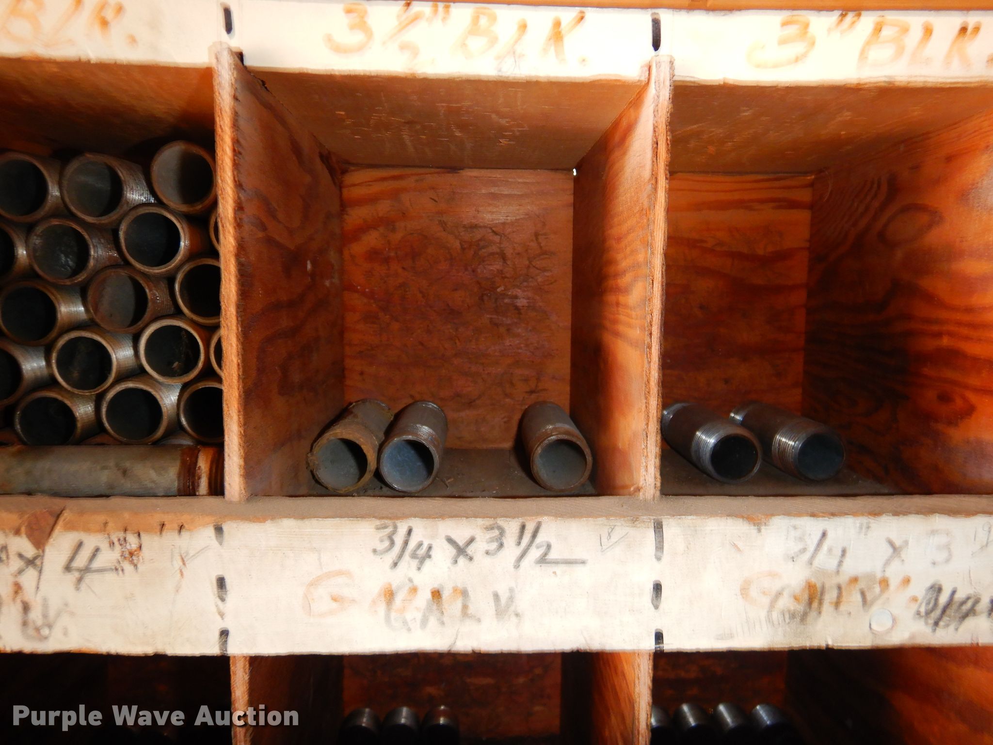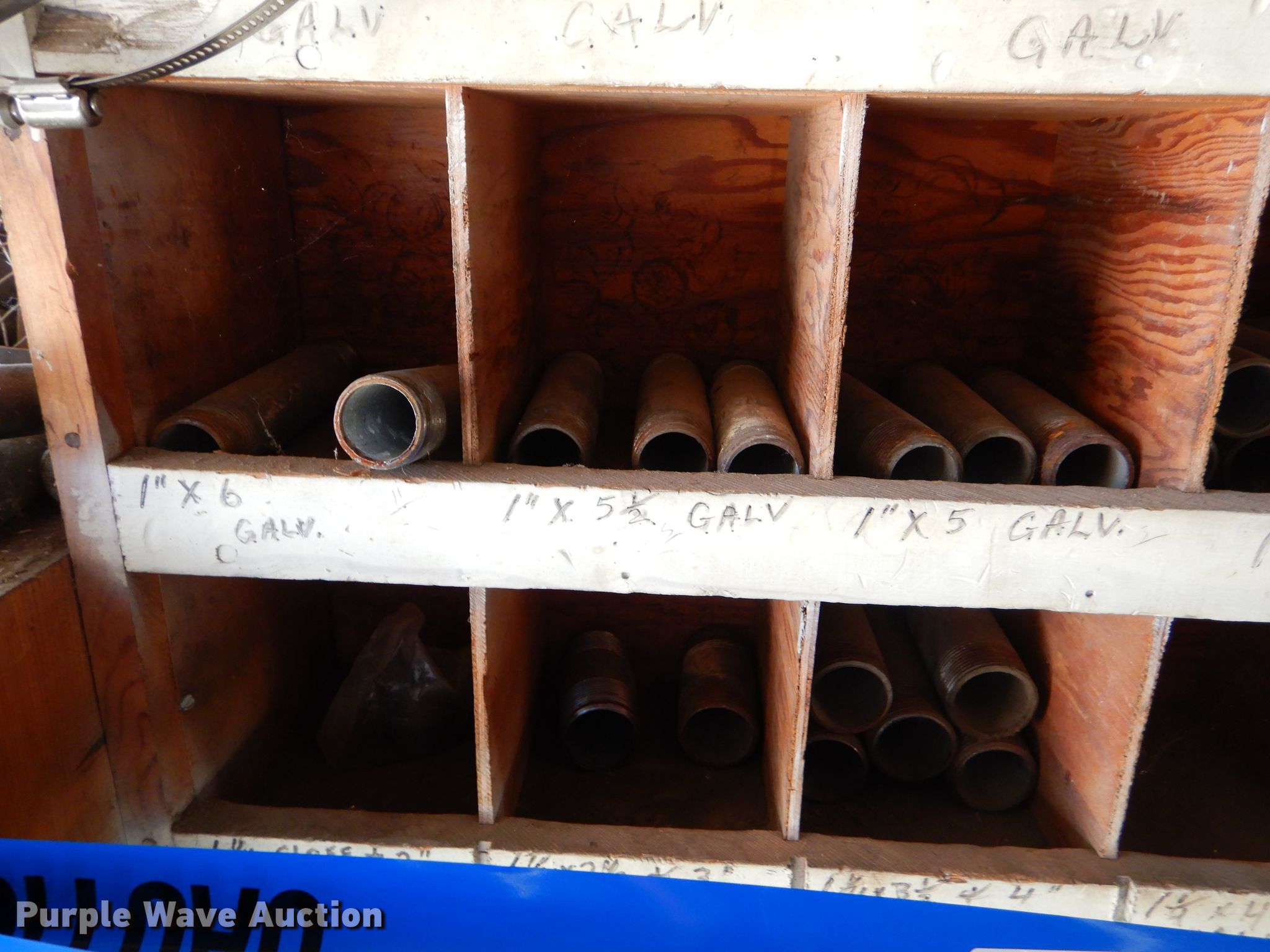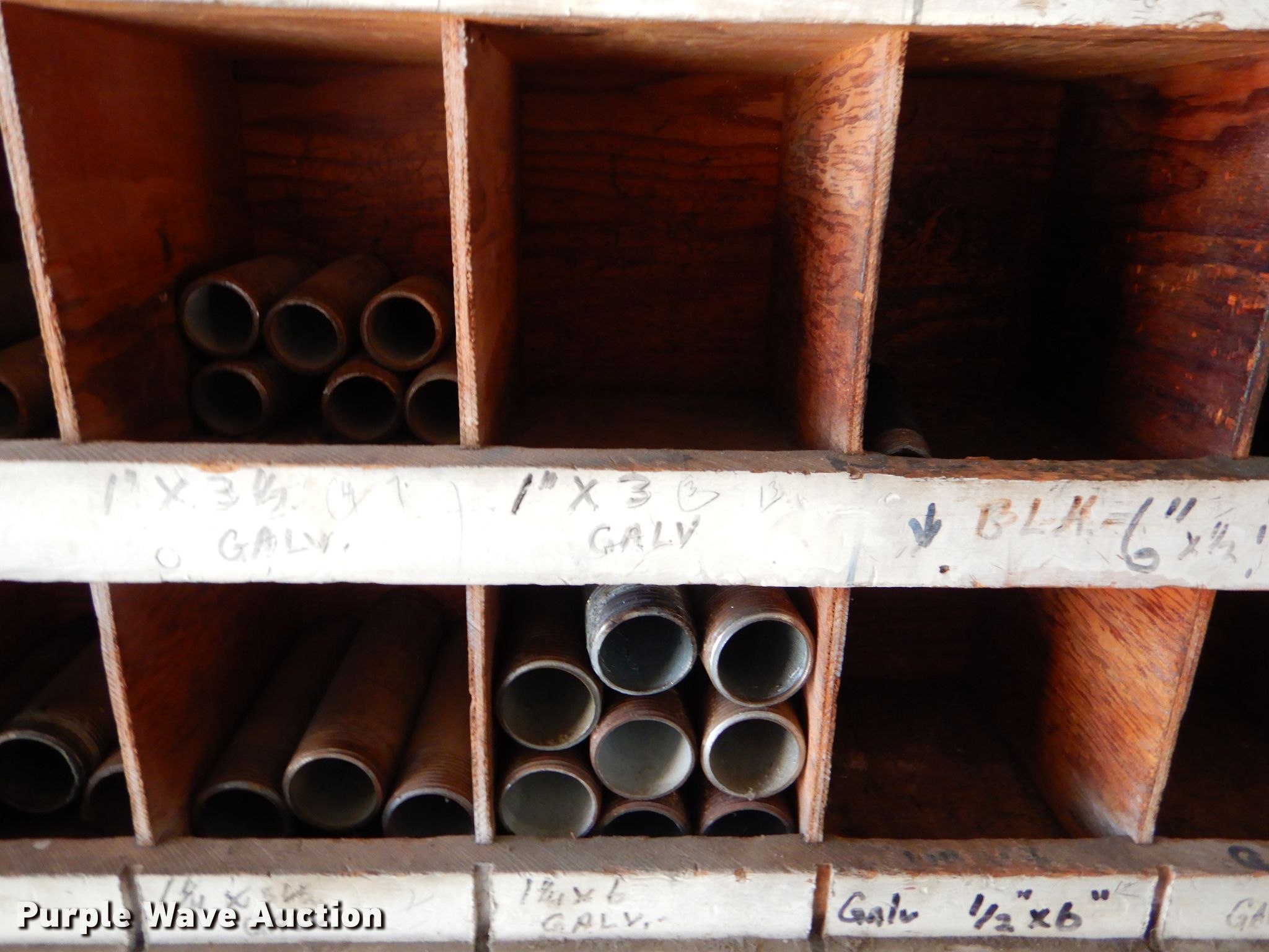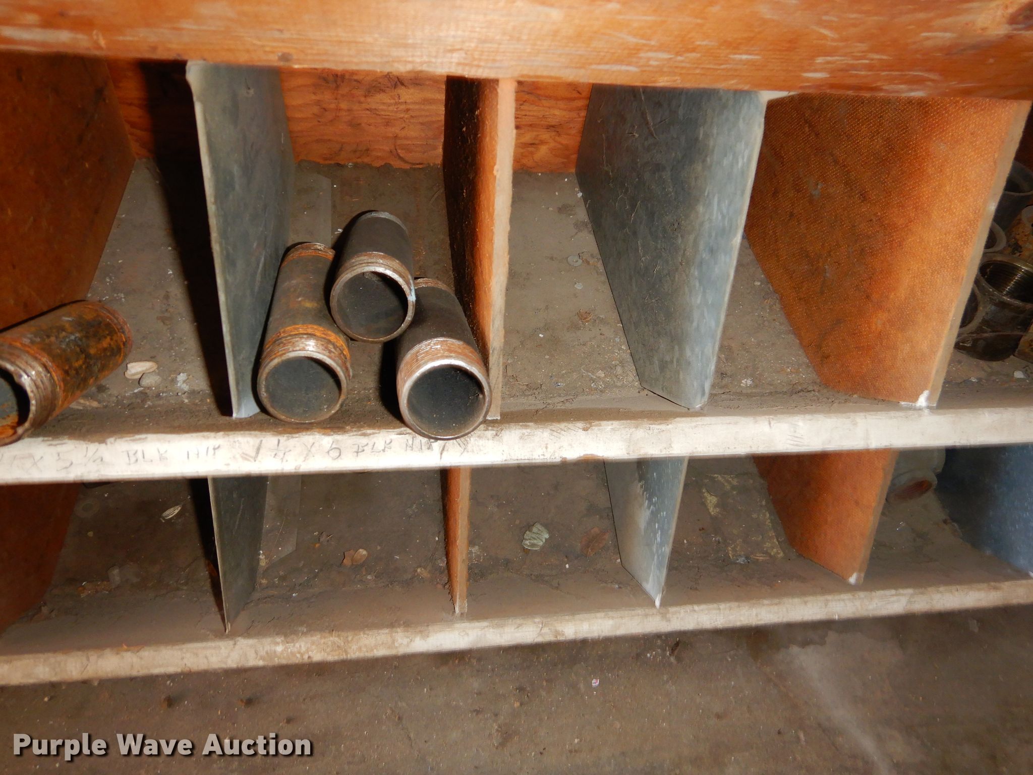 Purple Wave is selling a used Pipe in Kansas. This item is a Fittings with the following: Rubber couplers, Black fittings, Galvanized fittings, Copper/brass fittings, Valves, Wood shelving and more, Item must be removed by December 11