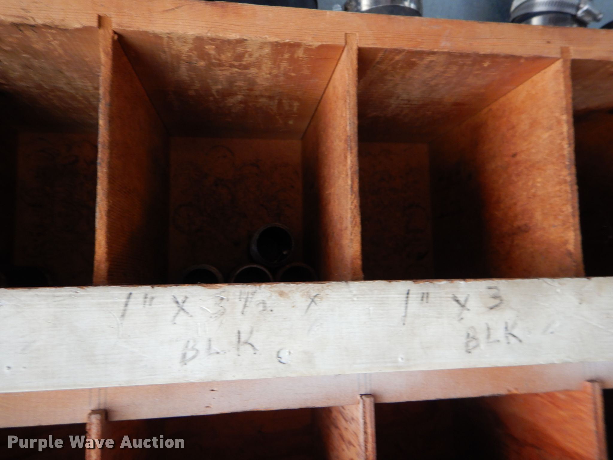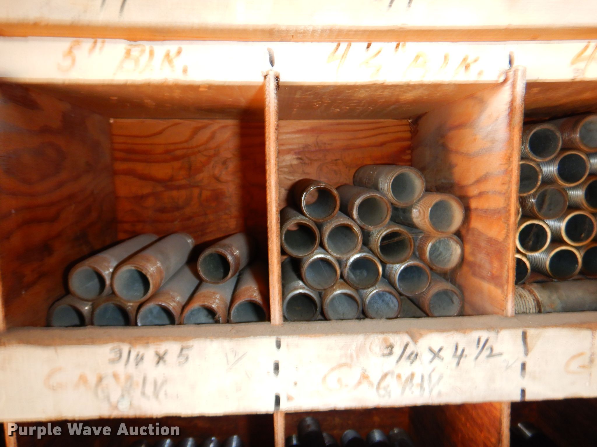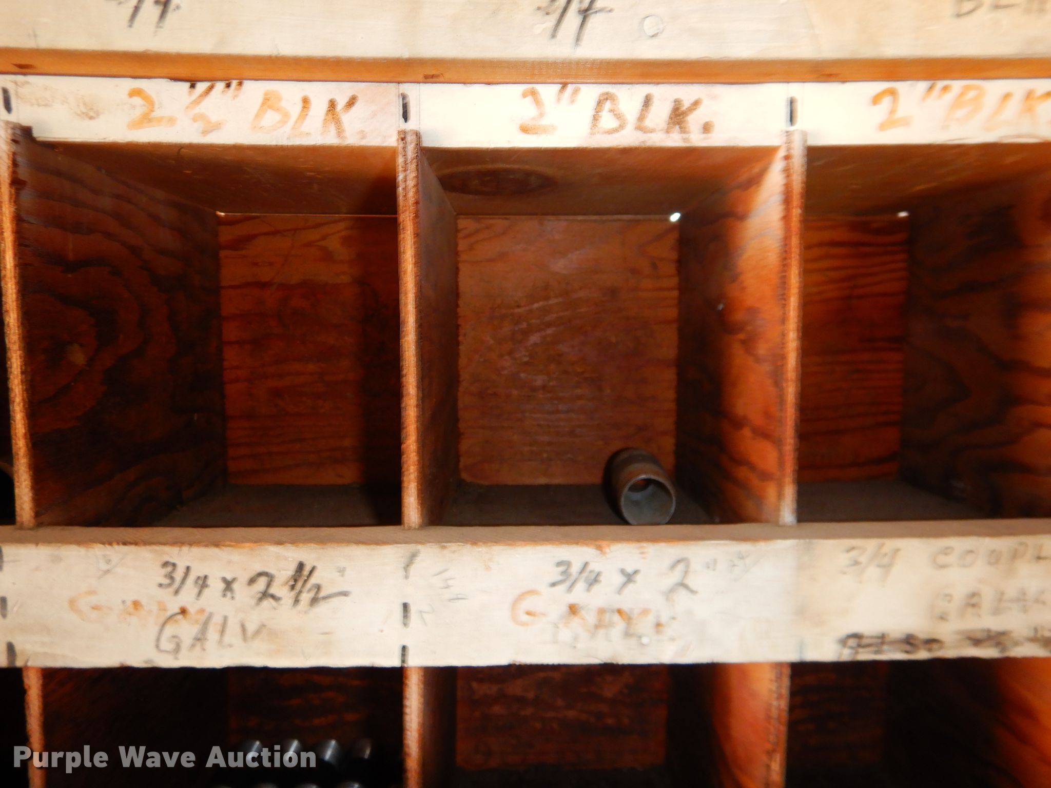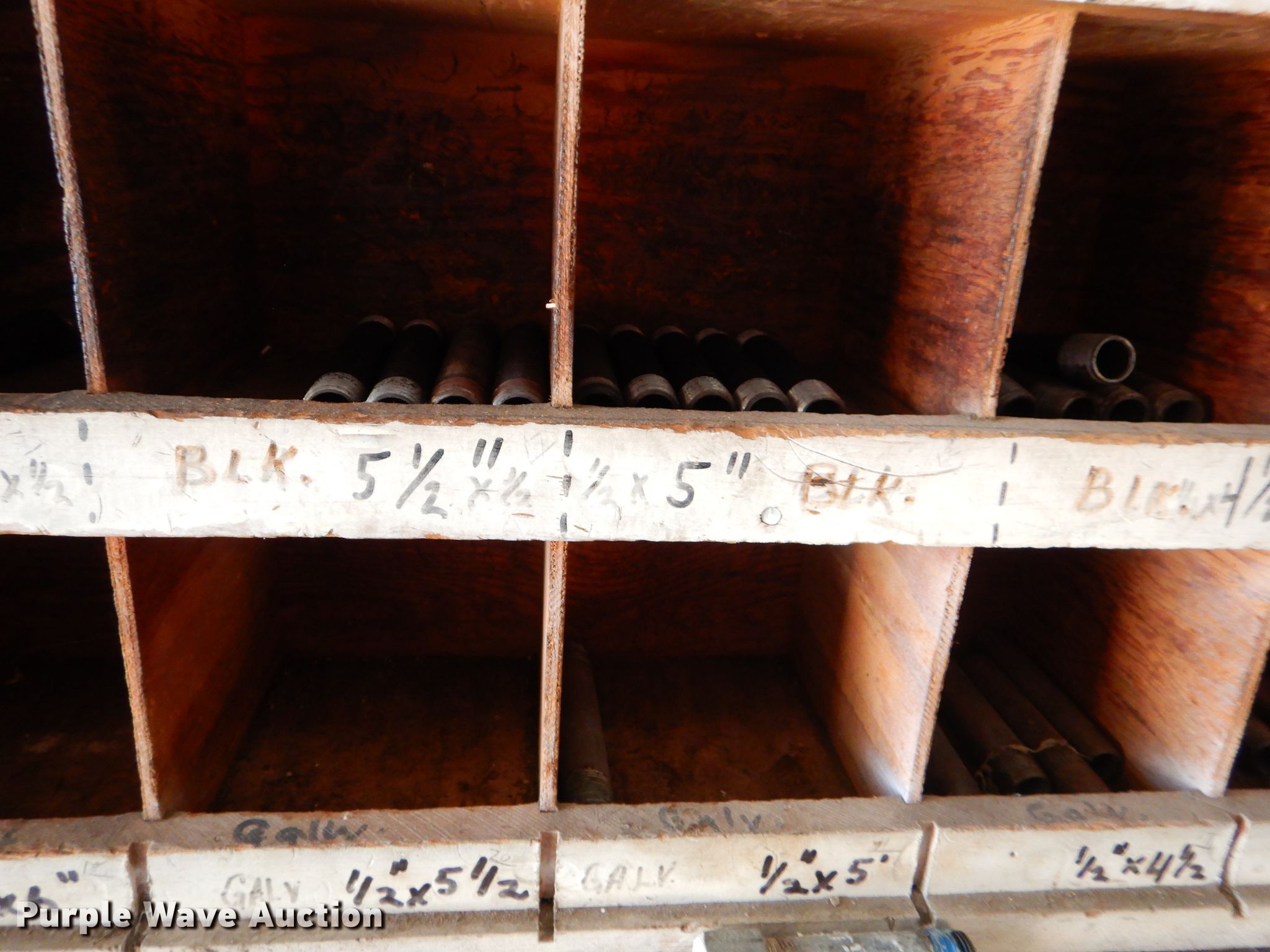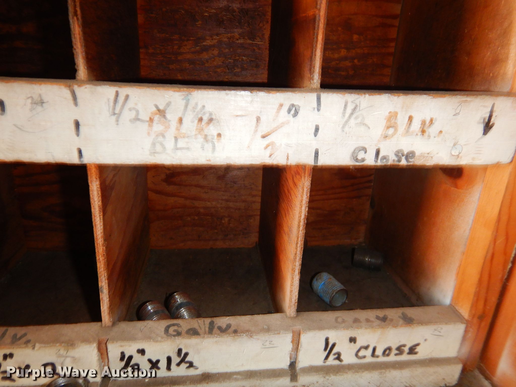 Purple Wave is selling a used Pipe in Kansas. This item is a Fittings with the following: Rubber couplers, Black fittings, Galvanized fittings, Copper/brass fittings, Valves, Wood shelving and more, Item must be removed by December 11