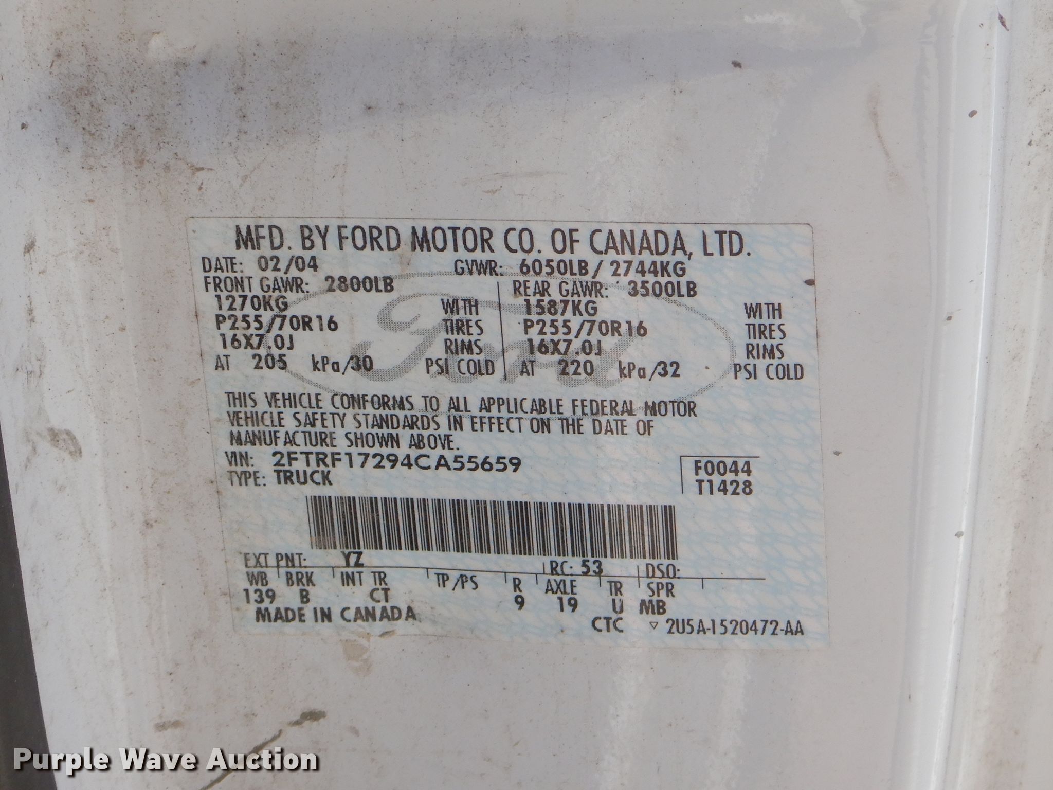 Purple Wave is selling a used 1/2 Ton Pickup or Van in Kansas. This item is a 2004 Ford F150 pickup truck with the following: 161,675 miles on odometer, 4.2L V6 SOHC gas engine, Automatic transmission, AC and heat, Cruise, 245/75R16 tires, Brake issues, Possible adjustment needed, Item must be removed by December 11