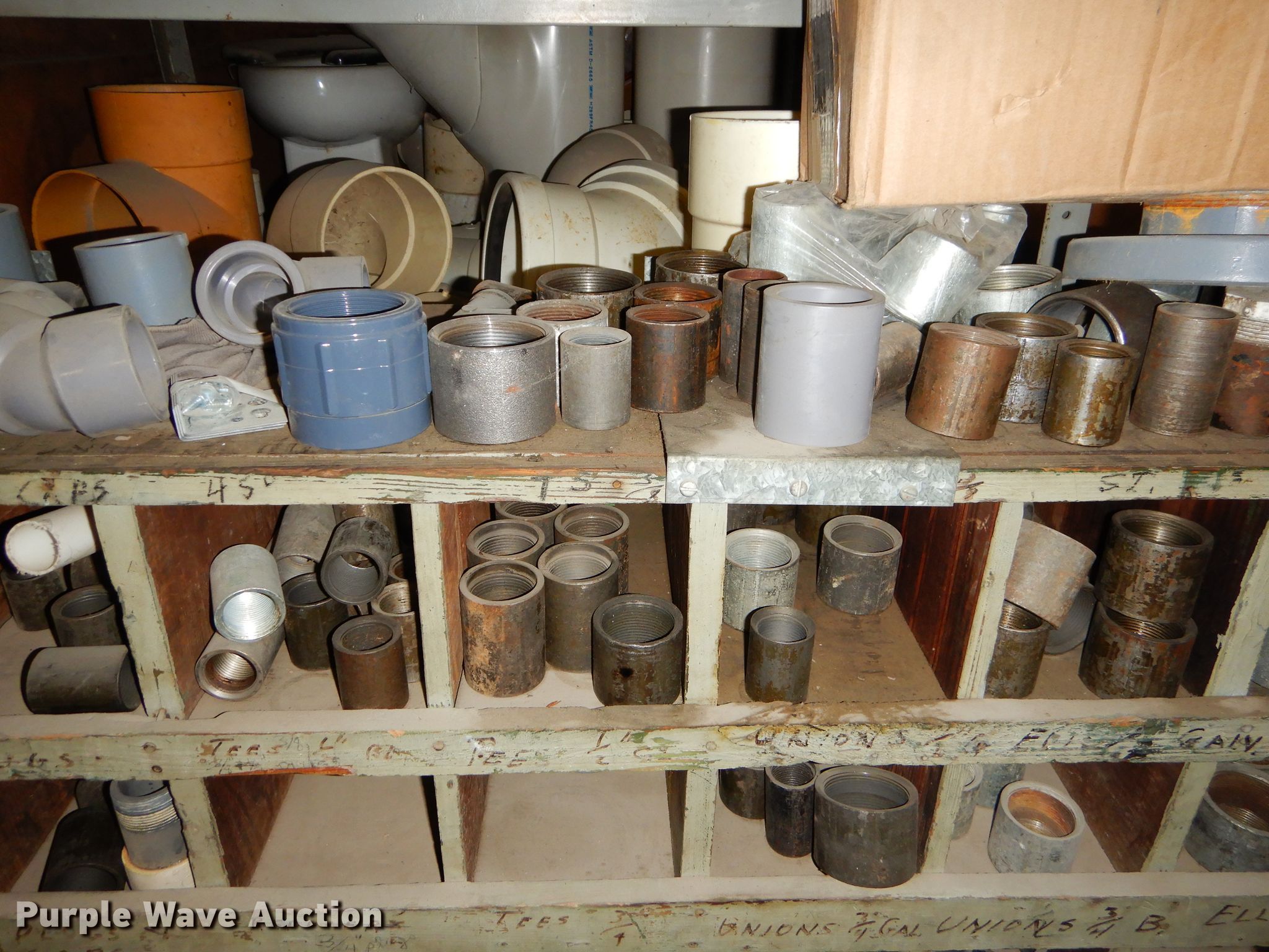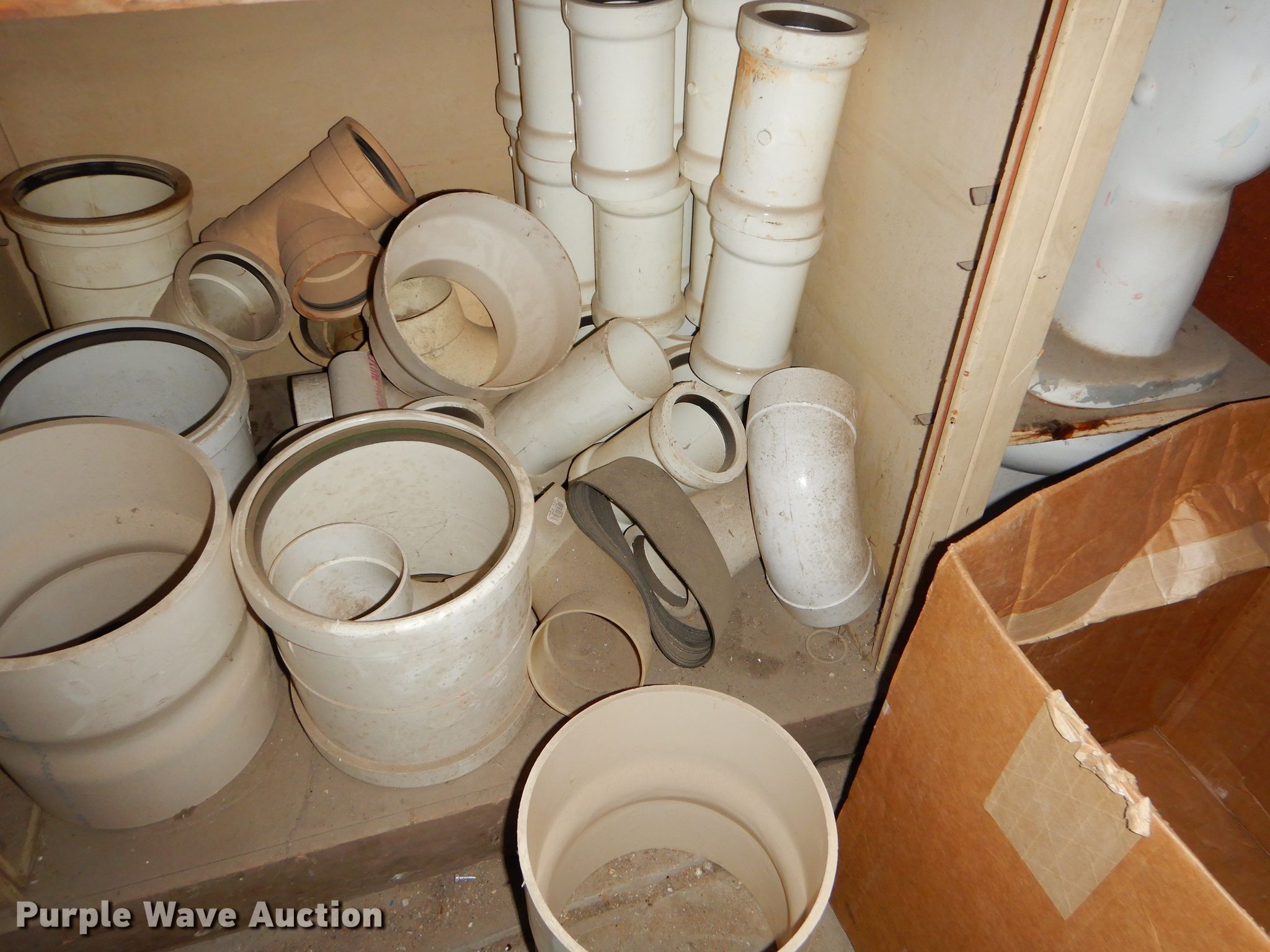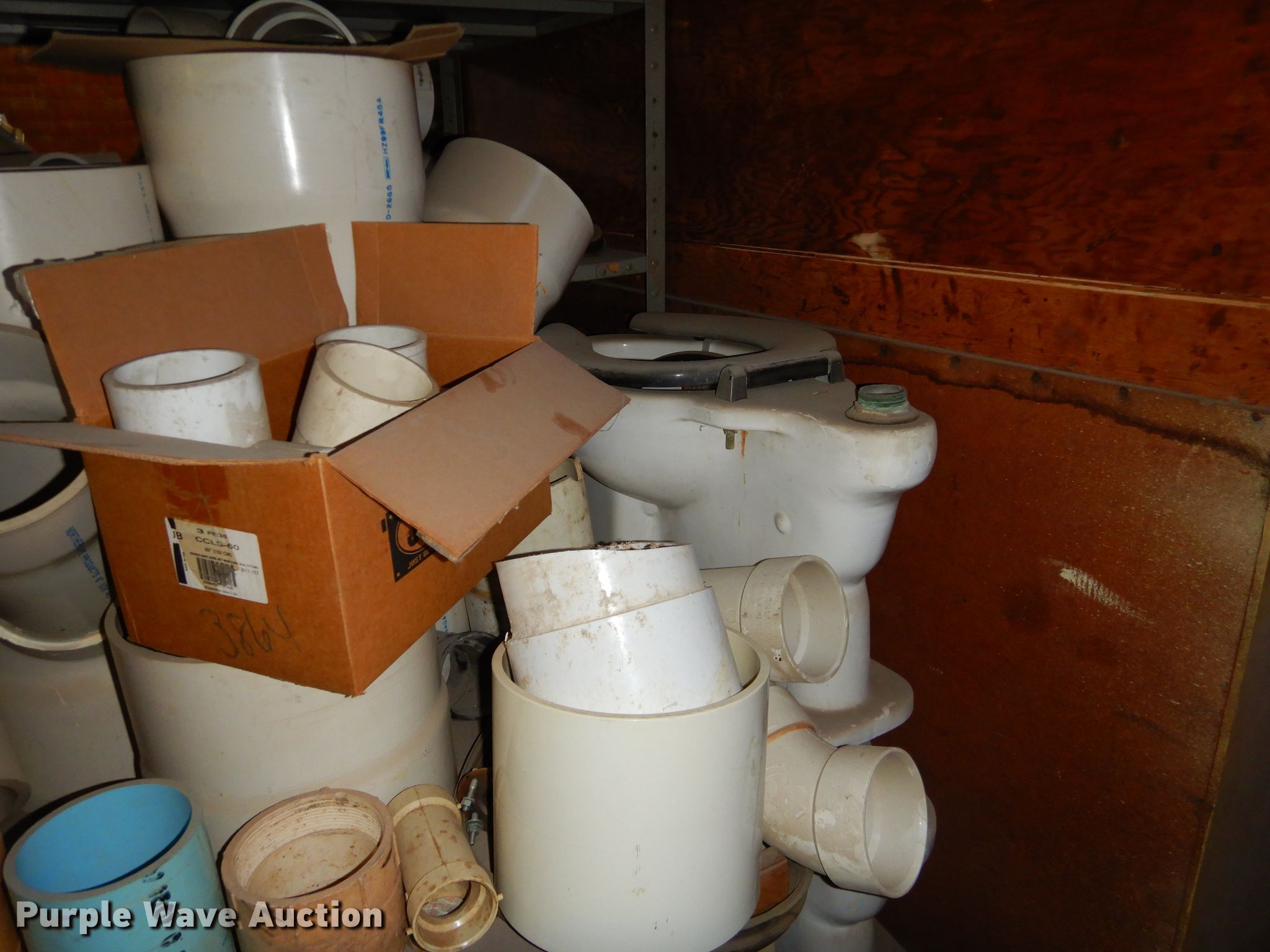 Purple Wave is selling a used Building Materials in Kansas. This item is a Conduit supplies with the following: Connection sweeps, Y splitters, Gaskets, Fittings, Wood shelving, PVC conduit, PVC fittings, Porcelain toilet, Conduit, Metal, copper, PVC, Metal shelving, Coiled tubing and more, Item must be removed by December 11