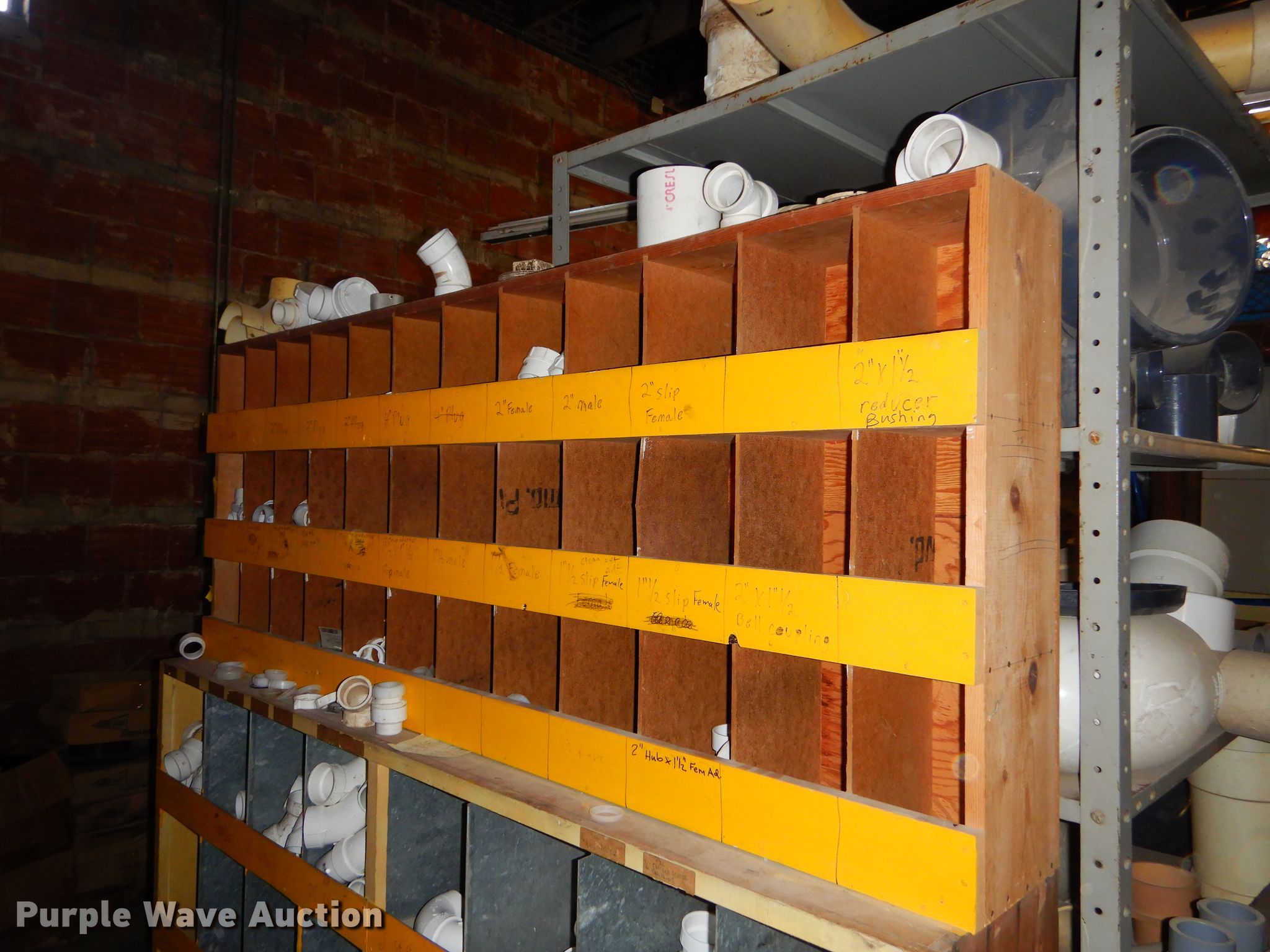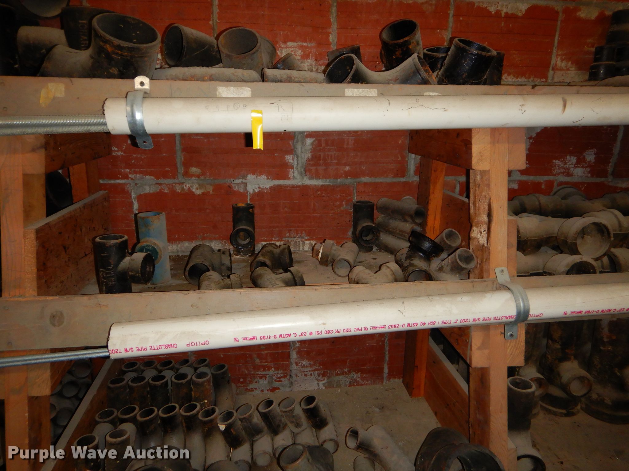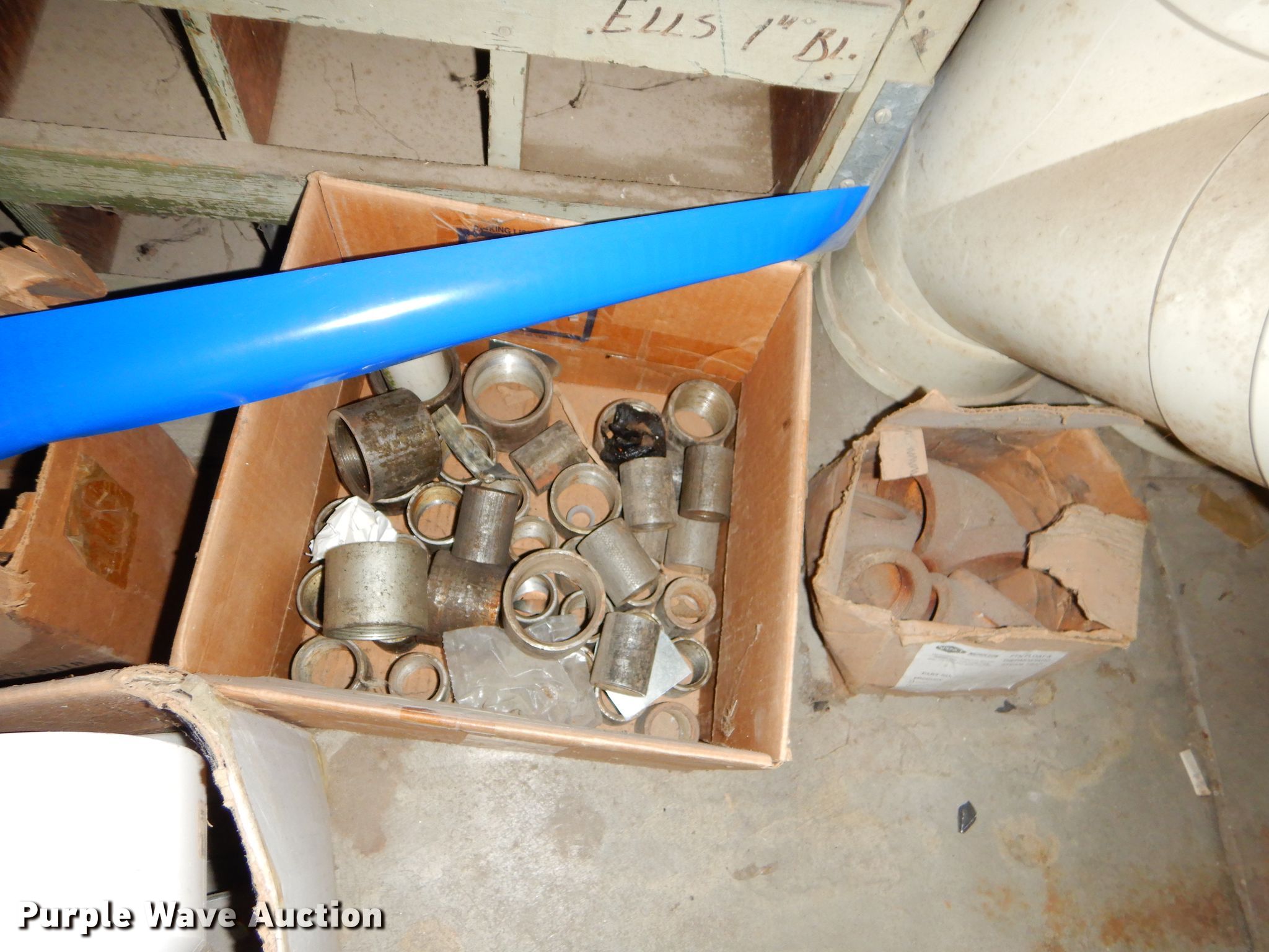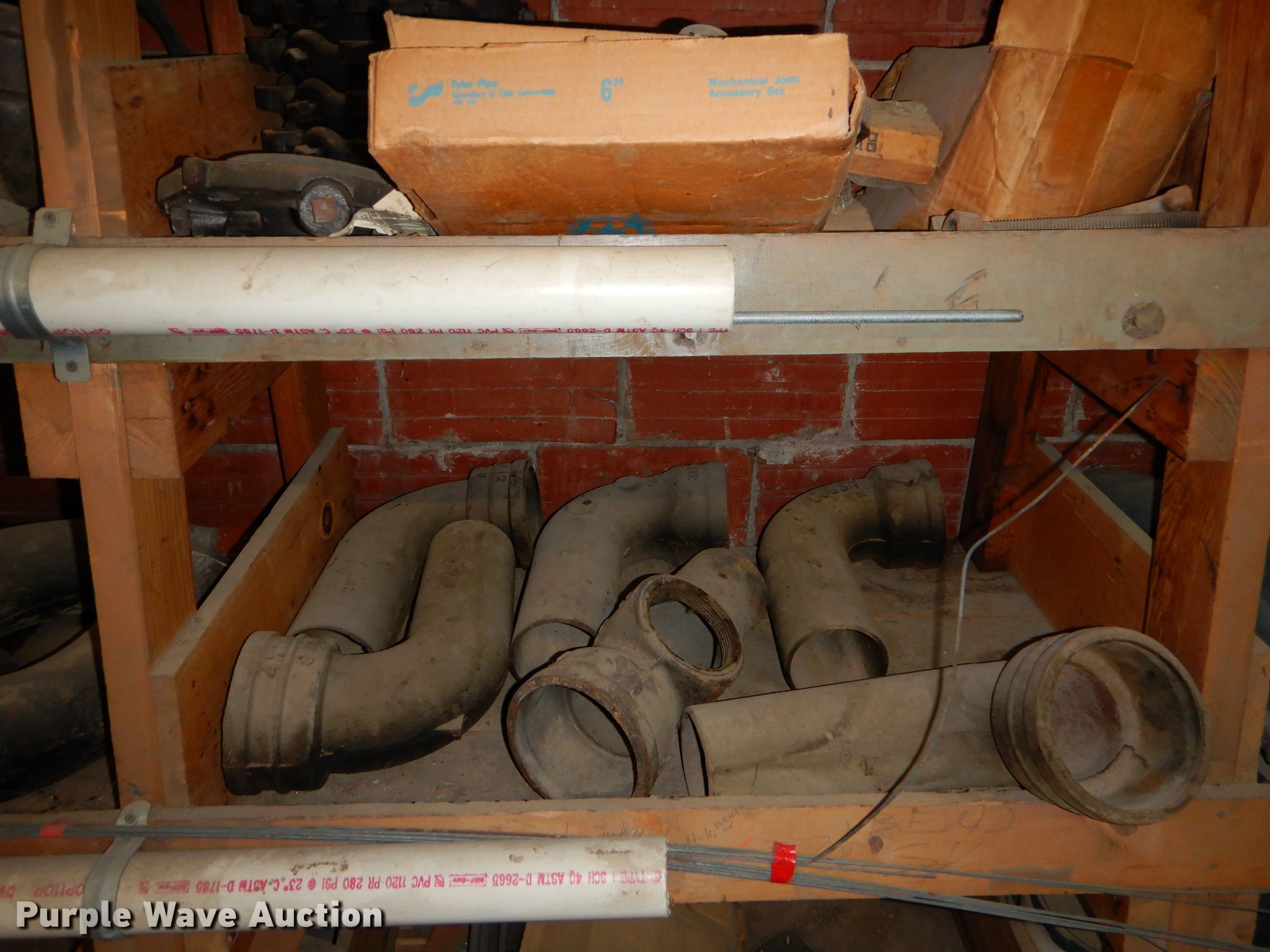 Purple Wave is selling a used Building Materials in Kansas. This item is a Conduit supplies with the following: Connection sweeps, Y splitters, Gaskets, Fittings, Wood shelving, PVC conduit, PVC fittings, Porcelain toilet, Conduit, Metal, copper, PVC, Metal shelving, Coiled tubing and more, Item must be removed by December 11