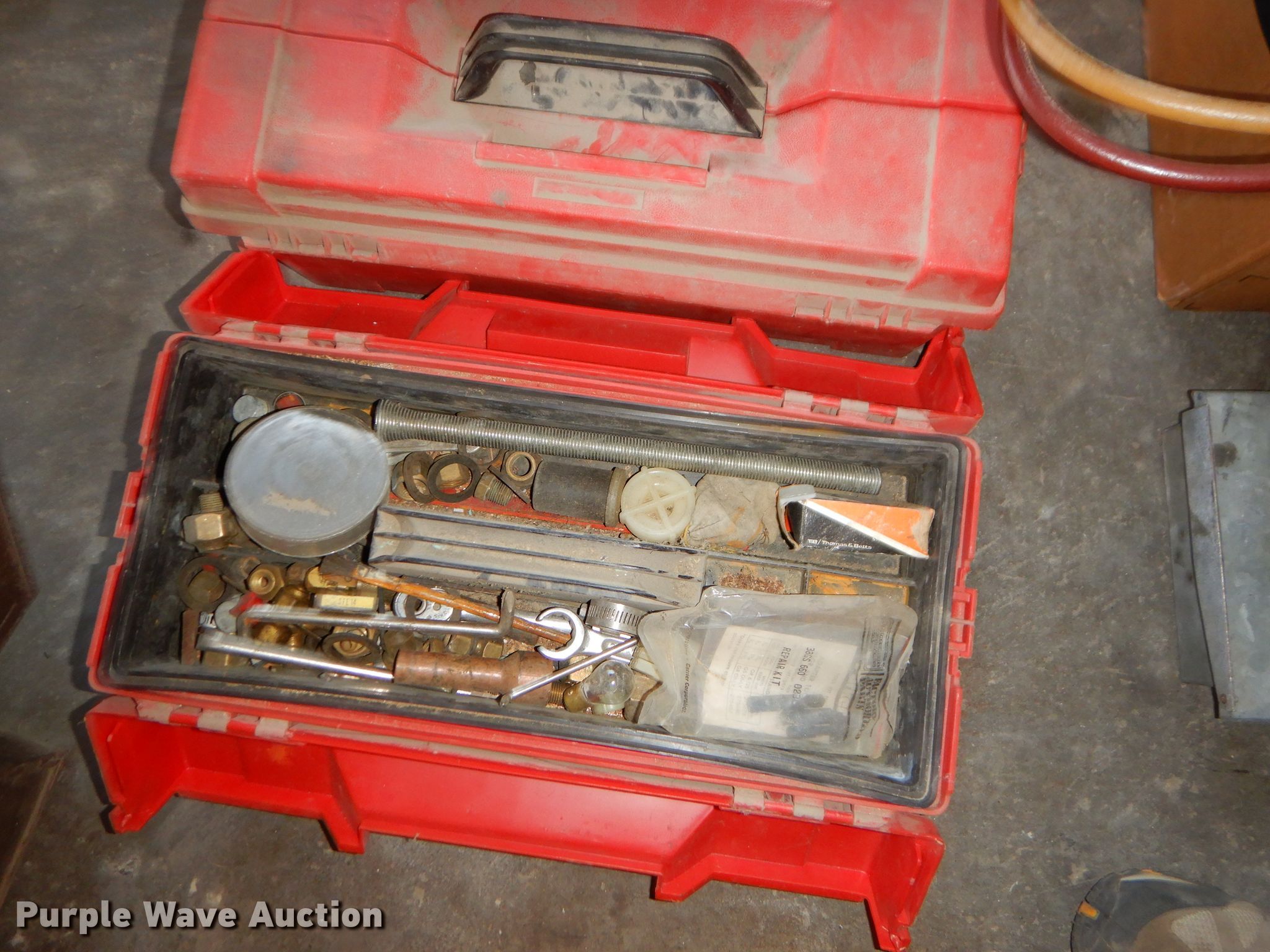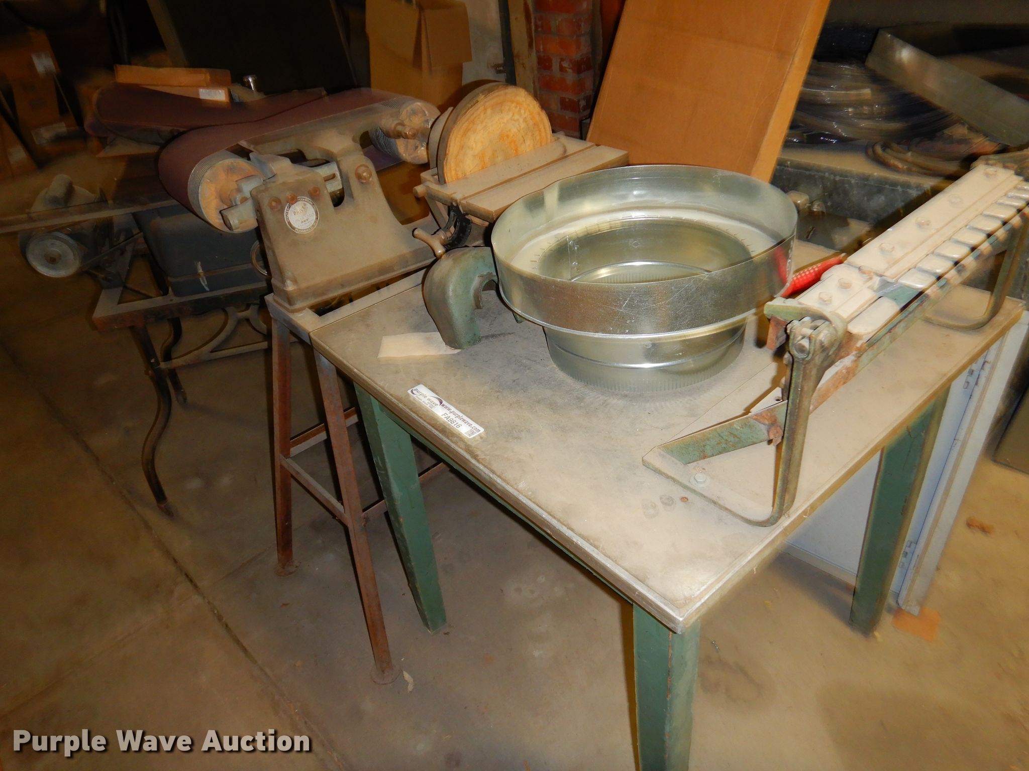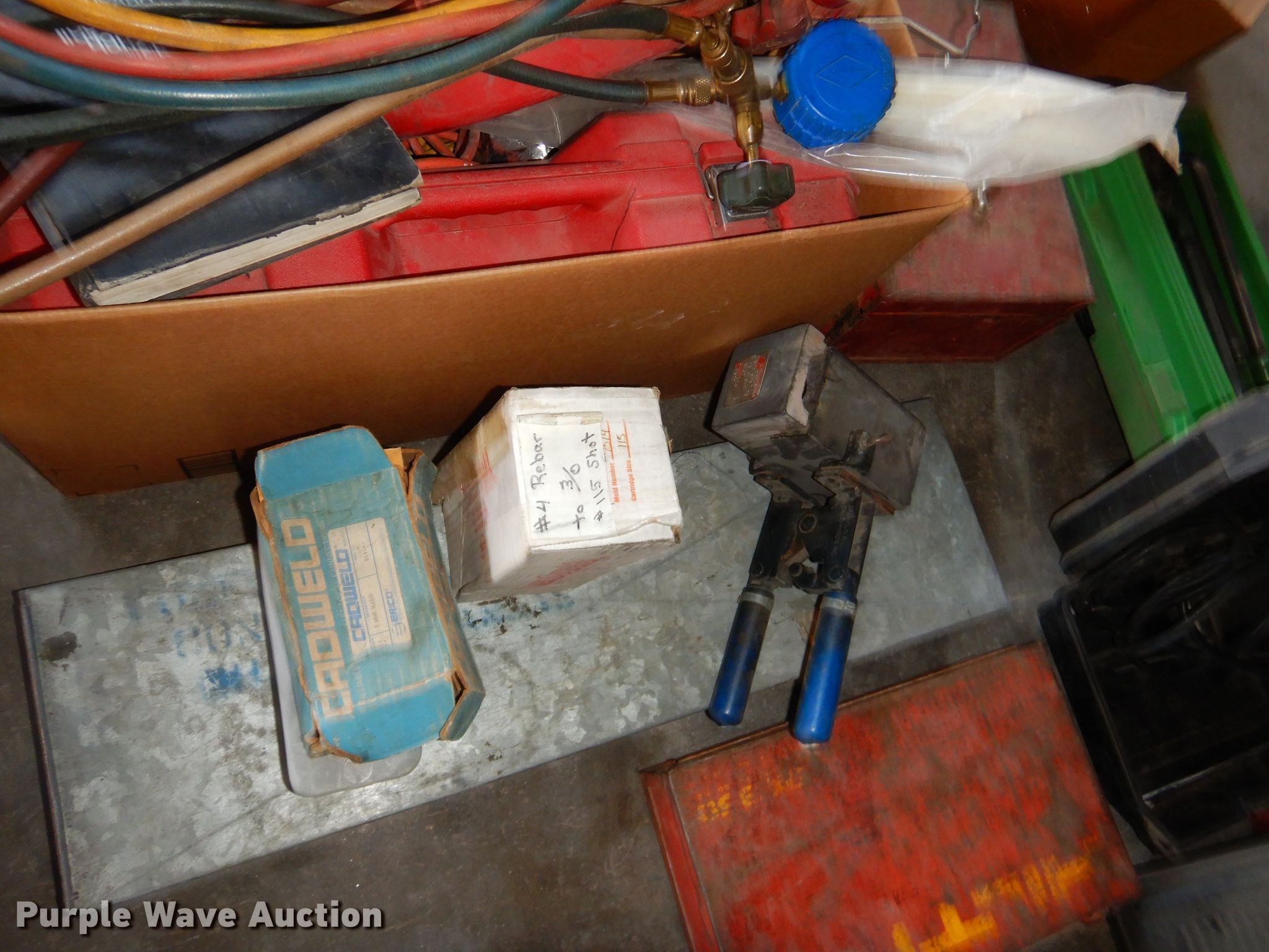 Purple Wave is selling a used Tools in Kansas. This item is a Tools with the following: Sheet metal bender, Craftsman table saw, Jointer, Hammers, Wrenches, Propex expander, Greenlee knockout set, David White ML-450 laser, Fieldpiece combustion check, Auto pump, Greenlee Slug Buster, Temperature humidity digital instrument, Refrigeration reclamation set, No tanks included, Wrenches, Fiber microscope, Amprobe, DeWalt reciprocating saw, TIF refrigerant leak detector, Hammer drill, Makita shear, Milwaukee 90 degree drill, Yellow Jacket full range super evac vacuum gauge, Strippers, Makita drill, Reddy heater, Craftsman drill and light, 14.4V, Featherlite string trimmer, Unknown operating condition, Poulan string trimmer, Unknown operating condition, Propane heater, (3) air tanks, (2) fish tapes, Stinger Bacharach refrigerant reclamation system, No tanks included, (2) mini cutoff torches, Hoses, (6) torch bottles, Dwyer Thermal Anemometer Series 470, Buffalo drill press, Thon grinder, Amprobe DM-II Pro data logger, Powerblade cable cutter, Wet/dry vacuum and more, Item must be removed by December 11
