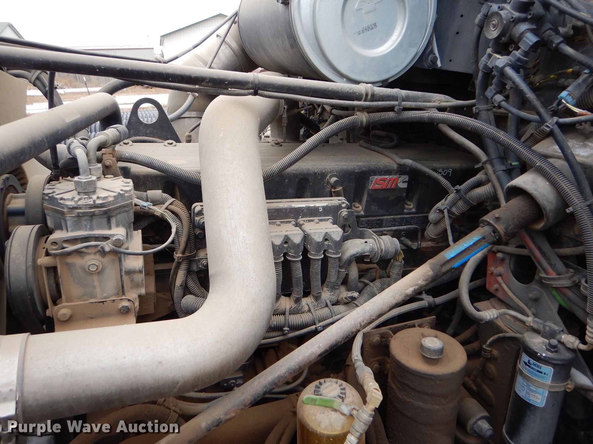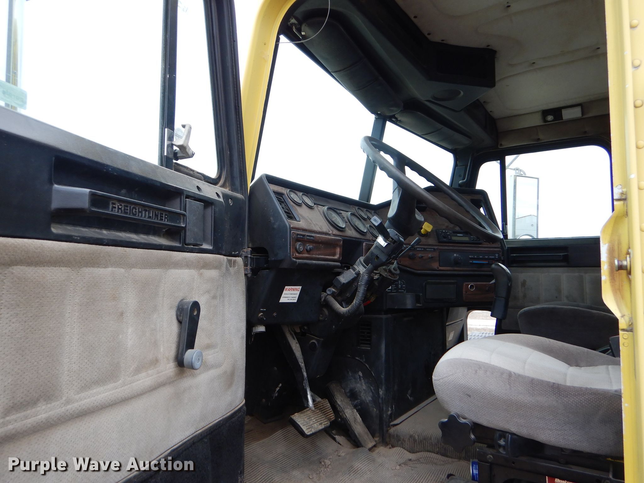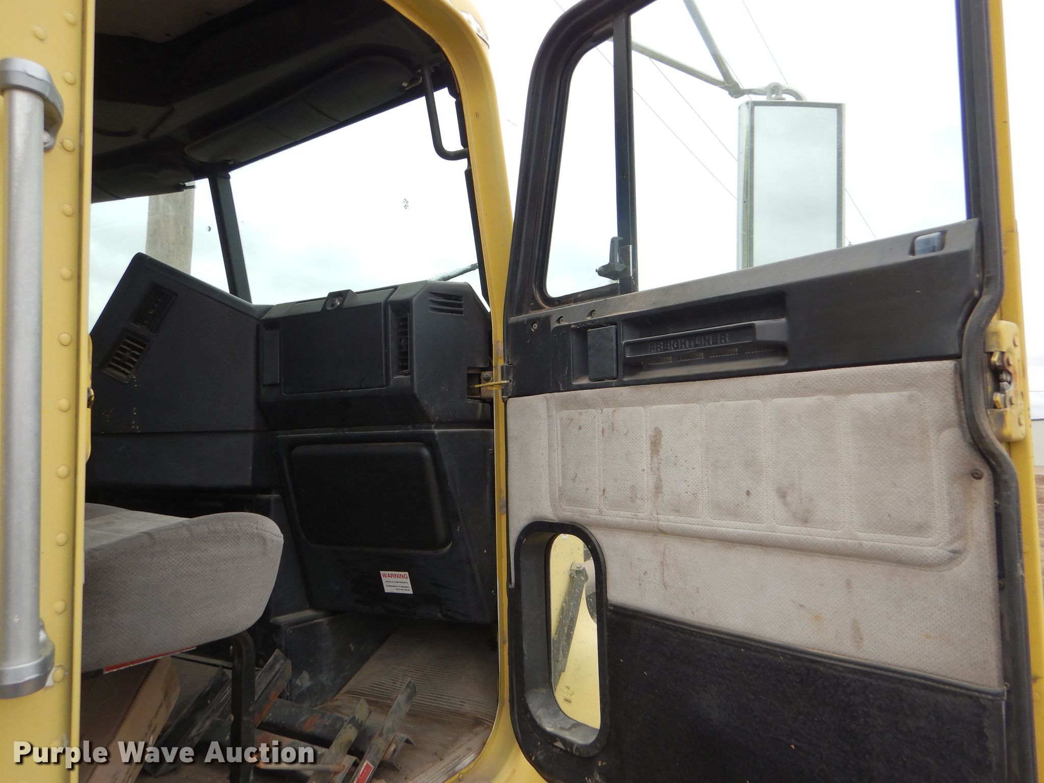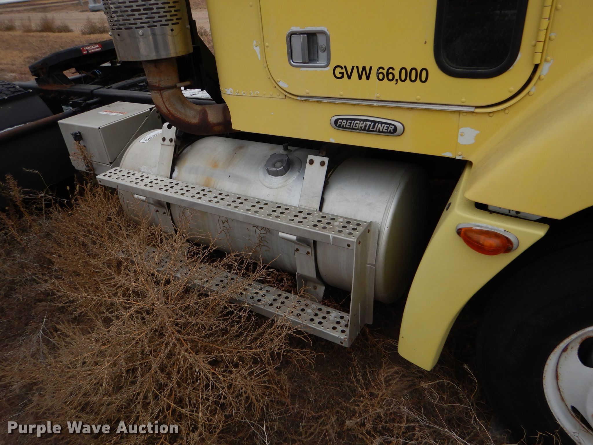 Purple Wave is selling a used Truck Tractor in Kansas. This item is a 2000 Freightliner FLD semi truck with the following: 375,720 miles on odometer, Cummins ISM 10.8L L6 diesel engine, 330 HP, Meritor 10 speed manual transmission, Single axle, AC and heat, Cruise, Power windows, Heated mirrors, Dump valves, Aluminum deck plate, Fixed fifth wheel plate, Dual fuel tanks, Air suspension, Air brakes, 295/75R22.5 tires, GVWR 32,000 lbs, Engine seized up, Non-operational unit