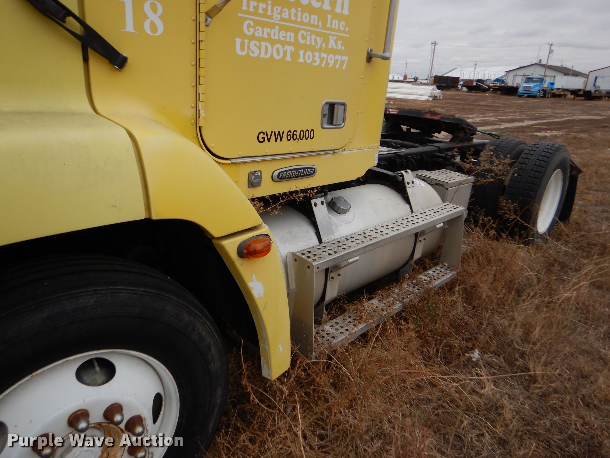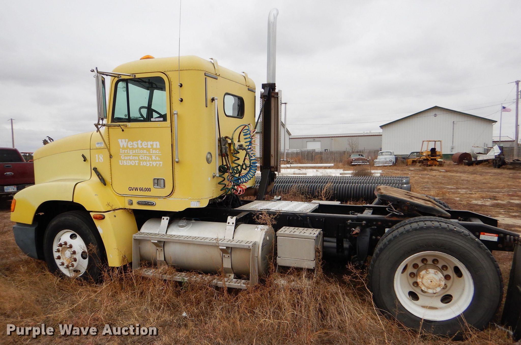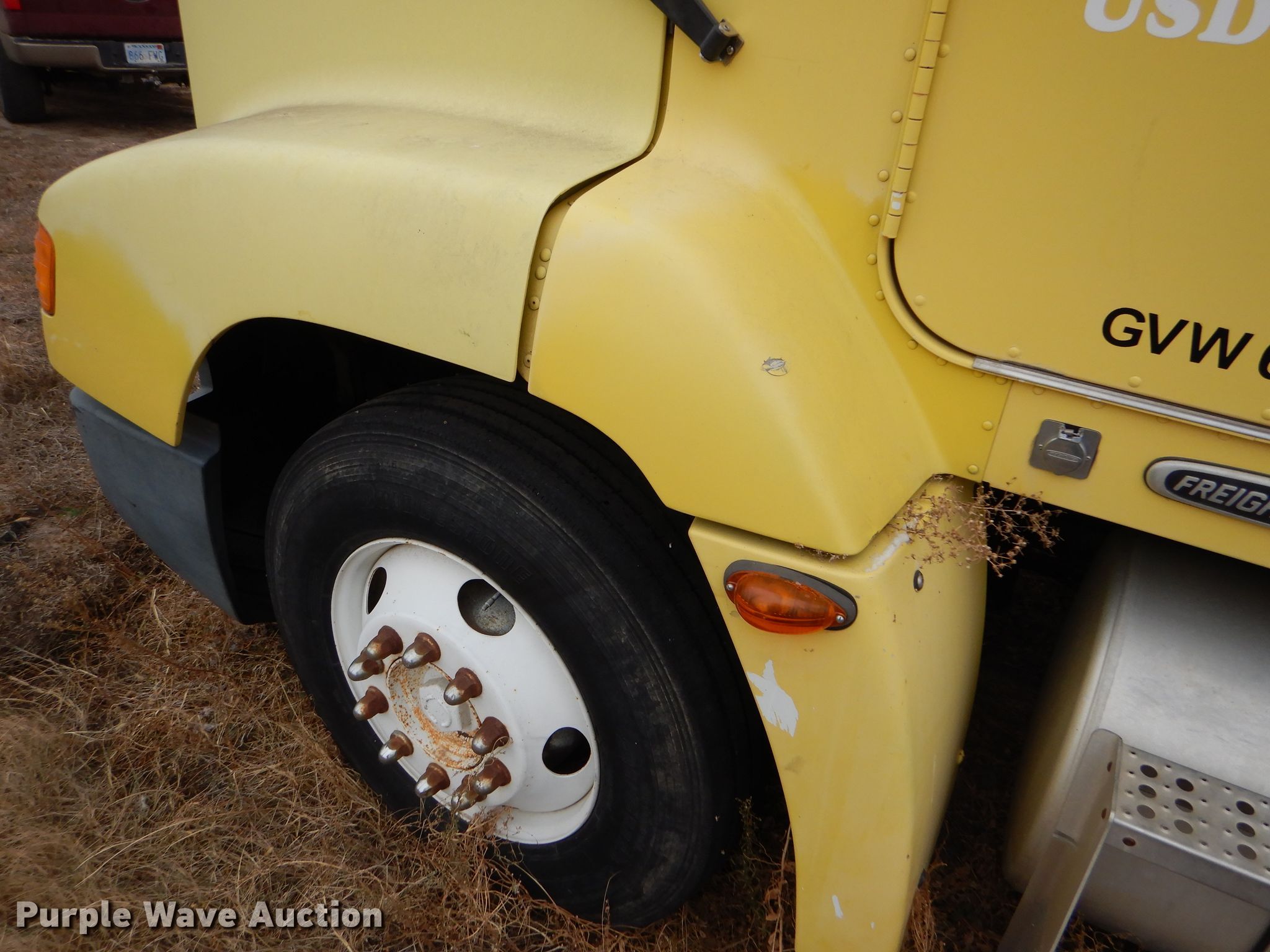Purple Wave is selling a used Truck Tractor in Kansas. This item is a 2000 Freightliner FLD semi truck with the following: 375,720 miles on odometer, Cummins ISM 10.8L L6 diesel engine, 330 HP, Meritor 10 speed manual transmission, Single axle, AC and heat, Cruise, Power windows, Heated mirrors, Dump valves, Aluminum deck plate, Fixed fifth wheel plate, Dual fuel tanks, Air suspension, Air brakes, 295/75R22.5 tires, GVWR 32,000 lbs, Engine seized up, Non-operational unit