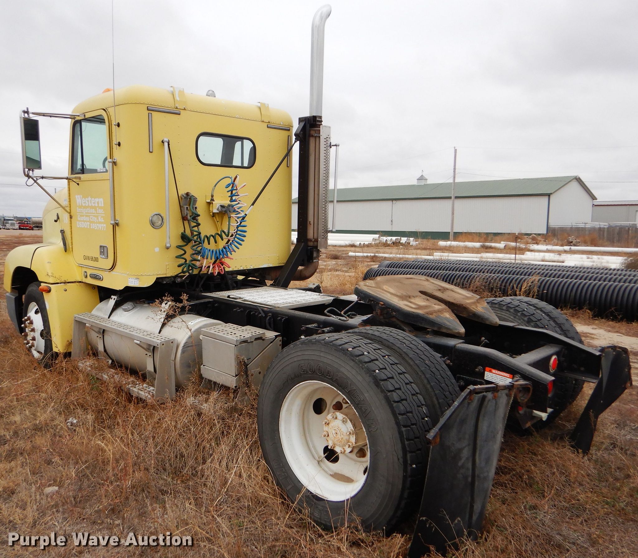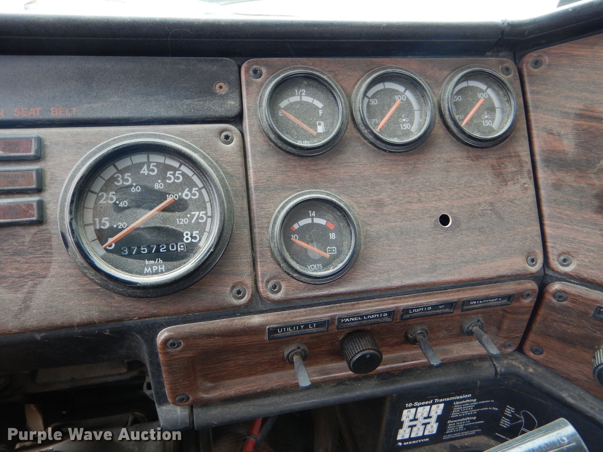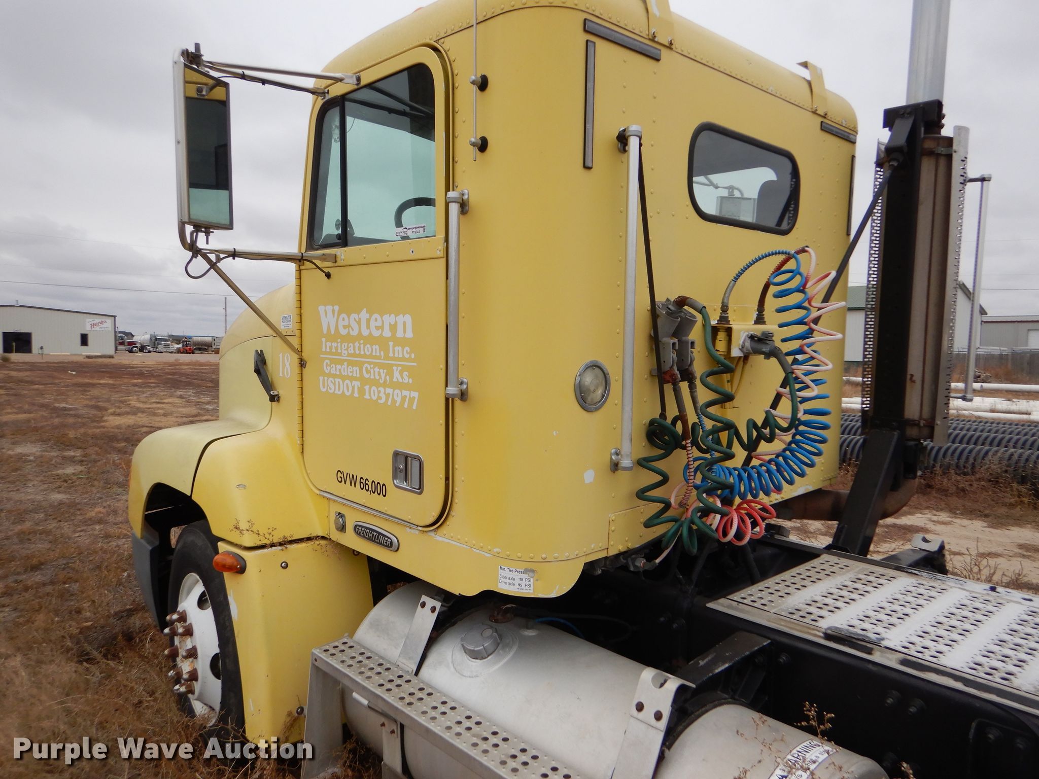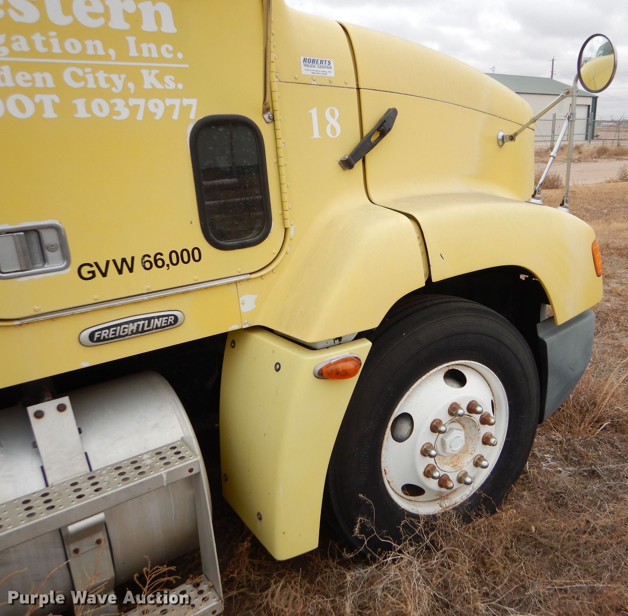 Purple Wave is selling a used Truck Tractor in Kansas. This item is a 2000 Freightliner FLD semi truck with the following: 375,720 miles on odometer, Cummins ISM 10.8L L6 diesel engine, 330 HP, Meritor 10 speed manual transmission, Single axle, AC and heat, Cruise, Power windows, Heated mirrors, Dump valves, Aluminum deck plate, Fixed fifth wheel plate, Dual fuel tanks, Air suspension, Air brakes, 295/75R22.5 tires, GVWR 32,000 lbs, Engine seized up, Non-operational unit