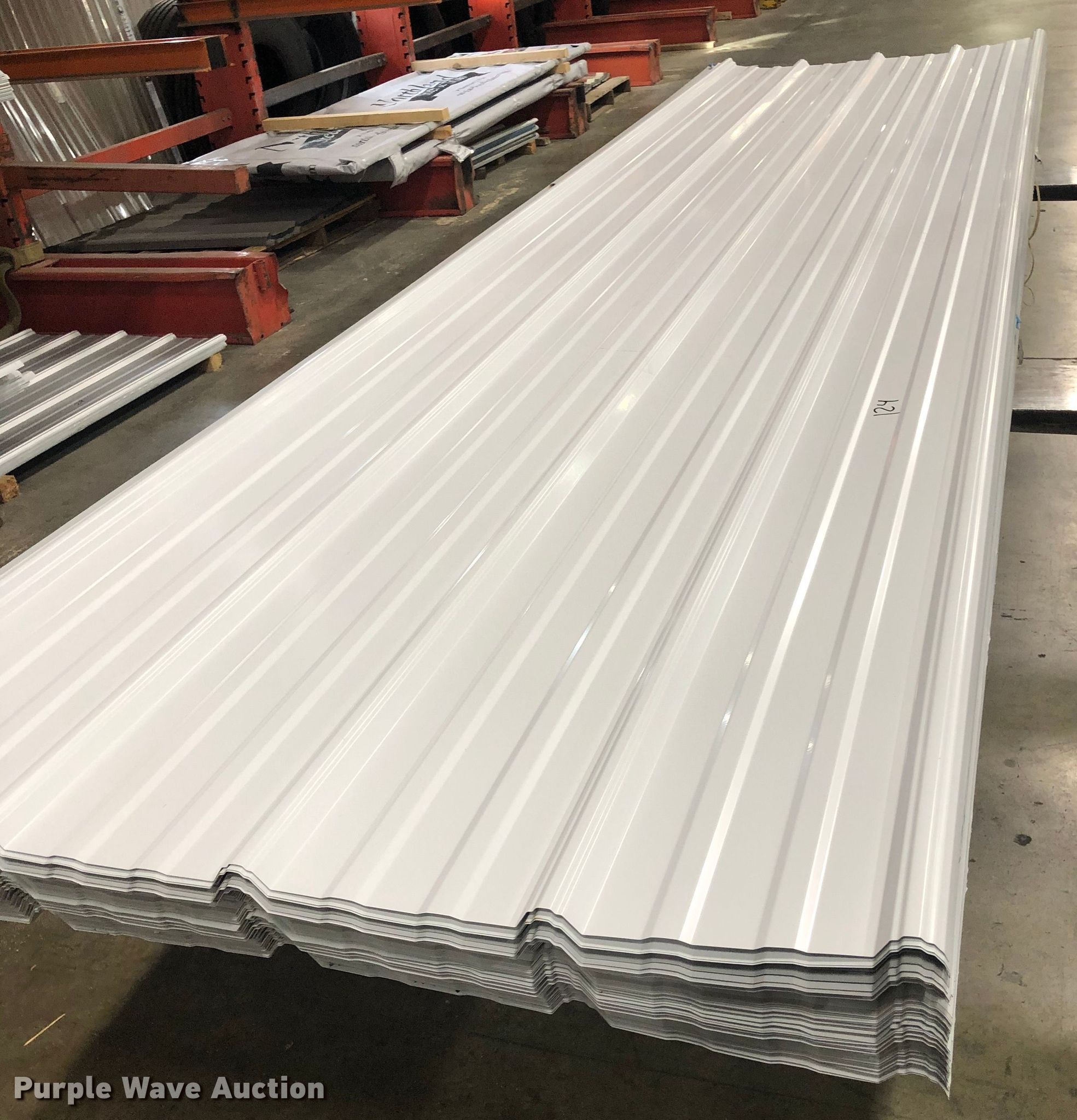 Purple Wave is selling a used Building Materials in North Dakota. This item is a (200) sheets of metal siding/roofing with the following: 12'2"L x 36"W overlap coverage, D-rib profile, 29 gauge, Color: White, May have slight blemishes