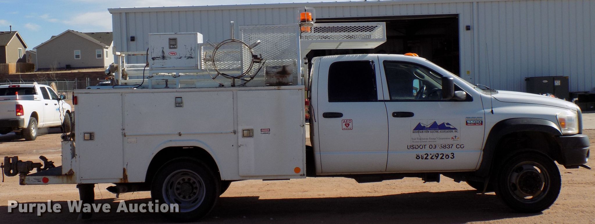 2008 Dodge Ram 5500 utility bed truck. 172,342 miles on odometer, 6.7L L6 OHV 24V diesel engine, Automatic transmission, Four wheel drive, Single axle, AC and heat, RKI utility bed 11'L, Spring suspension, Hydraulic brakes, 165" wheelbase, 225/70R19.5 tires, Contents not included, Check engine light on, Decals will be removed prior to auction. Colorado title. Title distribution may be delayed up to 14 days from verification of funds. 3D6WD78A58G229263. Mountain View Electric Association Inc.. 11140 E Woodmen Rd. Peyton, CO 80831