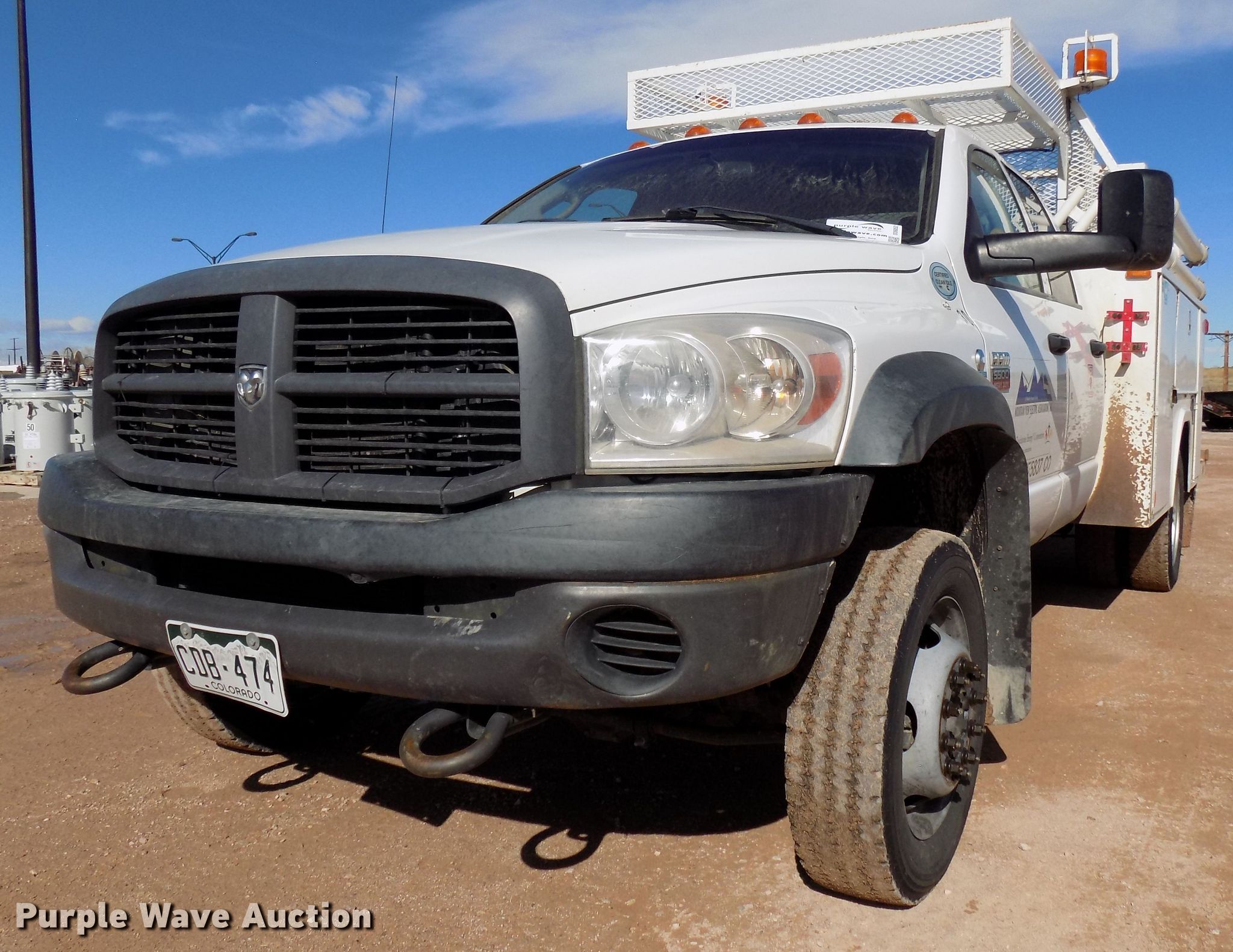 Purple Wave is selling a used Service Truck in Colorado. This item is a 2008 Dodge Ram 5500 utility bed truck with the following: 172,342 miles on odometer, 6.7L L6 OHV 24V diesel engine, Automatic transmission, Four wheel drive, Single axle, AC and heat, RKI utility bed, 11'L, Spring suspension, Hydraulic brakes, 165" wheelbase, 225/70R19.5 tires, Contents not included, Check engine light on, Decals will be removed prior to auction