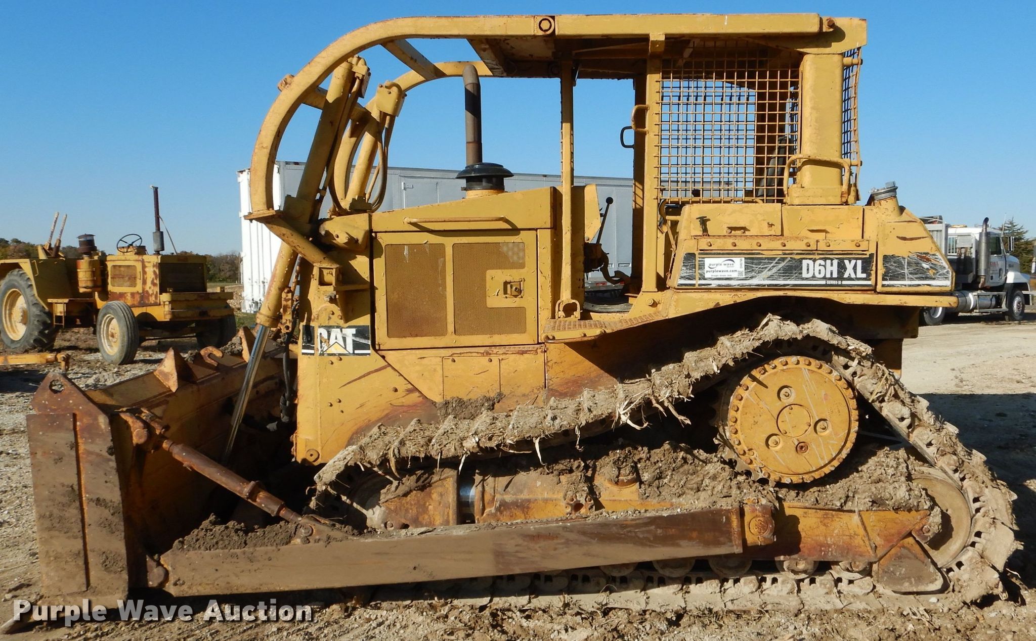 Purple Wave is selling a used Crawler Dozer in Illinois. This item is a Caterpillar D6H XL Series II dozer with the following: 12,067 hours on meter, Six cylinder diesel engine, Powershift transmission, 3F-3R gears, Canopy, Clutch brake steering, Screen guards, Sweeps, 129"W single tilt dozer blade, Rear drawbar, Seven bottom rollers, Track guards, 24"W single grouser track pads