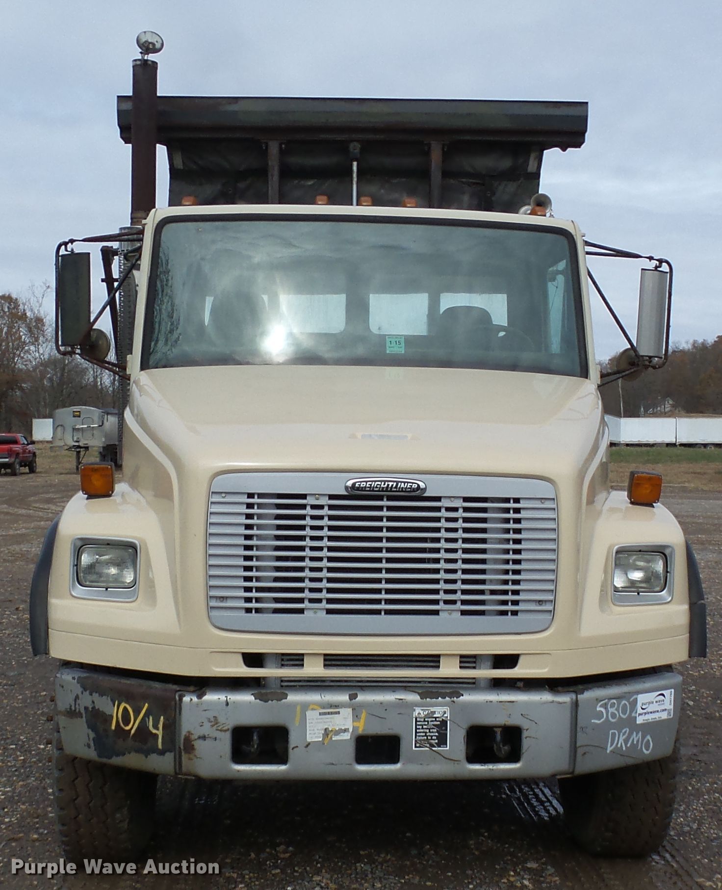 Purple Wave is selling a used Rollback or Tow Truck in Missouri. This item is a 2003 Freightliner FL106 roll-off container truck with the following: 151,415 miles on odometer, Detroit Diesel 8.5L L4 diesel engine, Allison automatic transmission, Tandem axle, AC and heat, PTO, Wet kit, Dempster DSU50 roll-off container bed, Pioneer Cover ALL HR4500R roll tarp, Spring suspension, Air brakes, 268" wheelbases, 315/80R22.5 front tires, 11R22.5 rear tires, GVWR 64,000 lbs