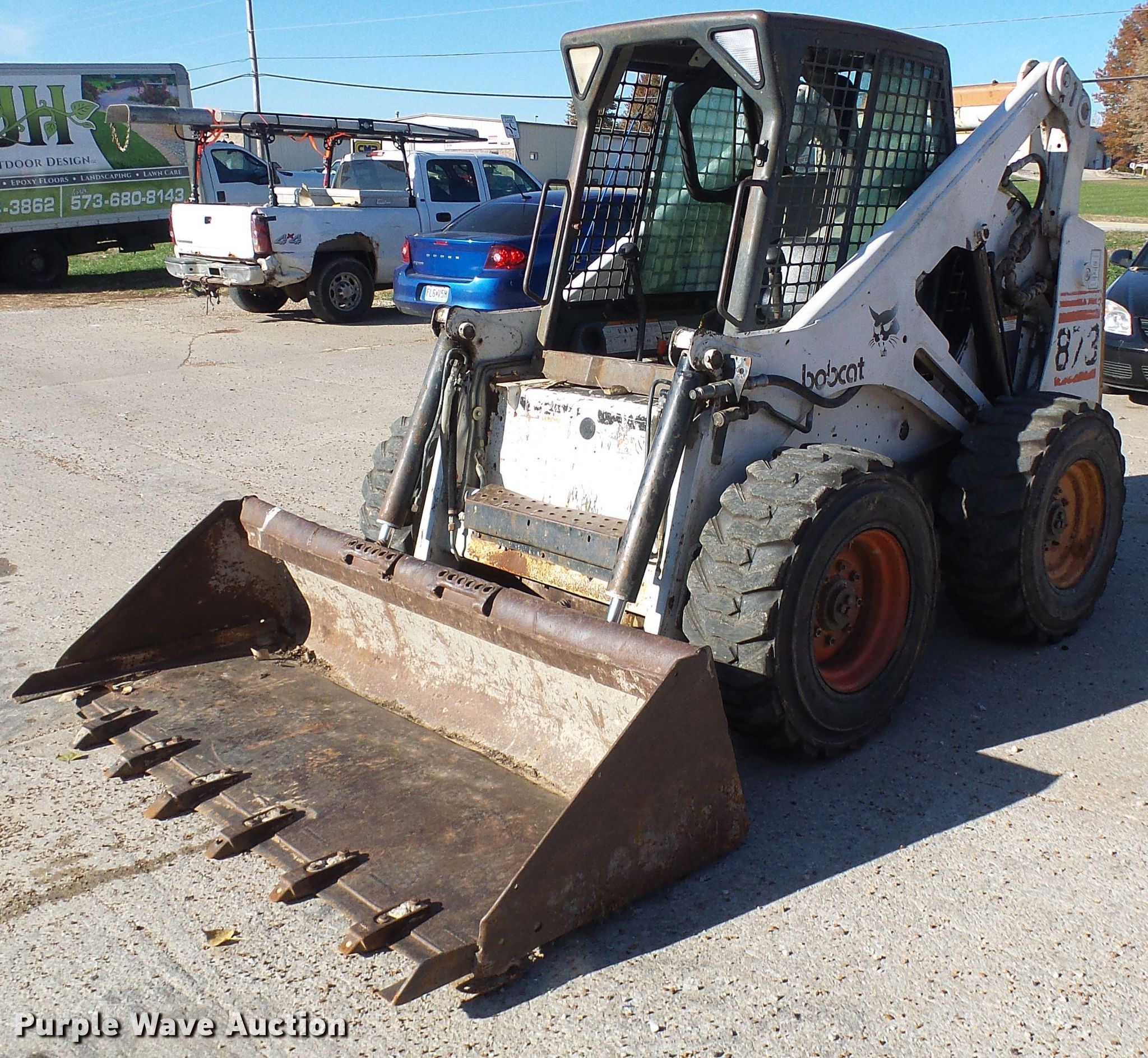 Purple Wave is selling a used Skid Steer Loader in Missouri. This item is a 2000 Bobcat 873 skid steer with the following: 3,177 hours on meter, Deutz four cylinder diesel engine, Hydrostatic transmission, Open station/canopy, Foot bucket controls, 72"W bucket, Weld-on cutting edge, Auxiliary hydraulics, 12 x 16.5 tires, Serial 514144338